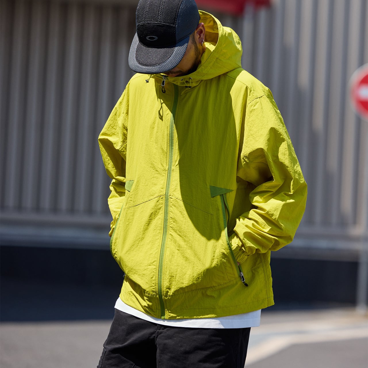 #gate #cityboyootd #テックウェア #アウトドアスタイル #シェルジャケット #蛍光アウター #カーゴパンツコーデ #ライトアウター #ユニセックスジャケット #campfit