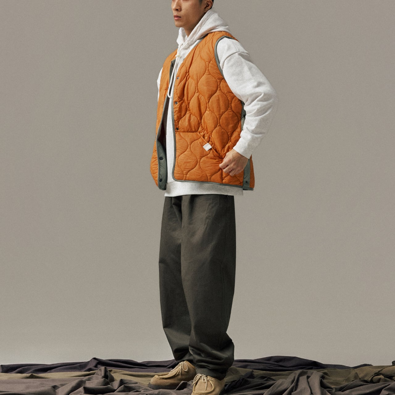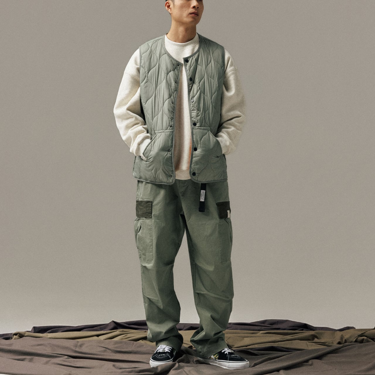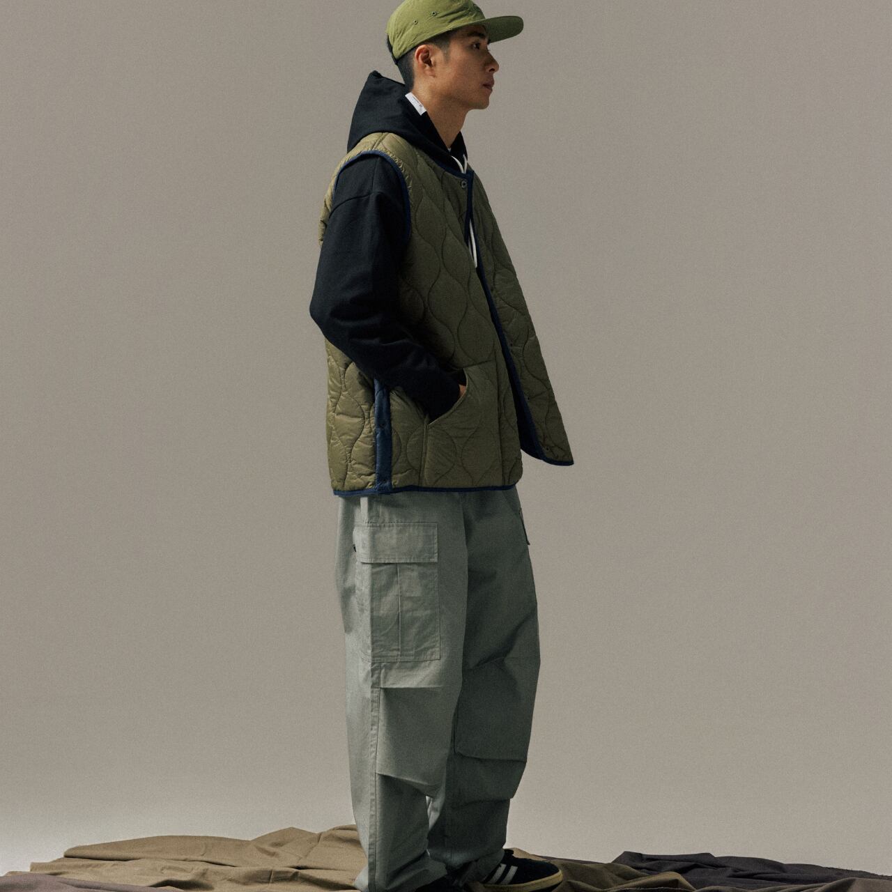 #gate #cityboyootd #リバーシブルベスト #ミリタリーライク #キルティングベスト #中綿ベスト #レイヤードコーデ #campfit #軽アウター #outdoorsman