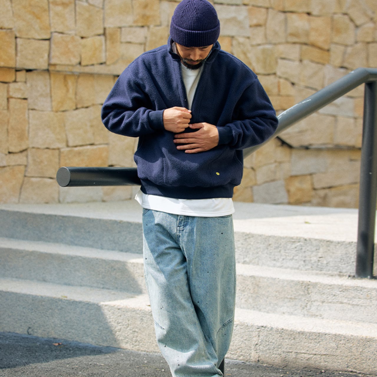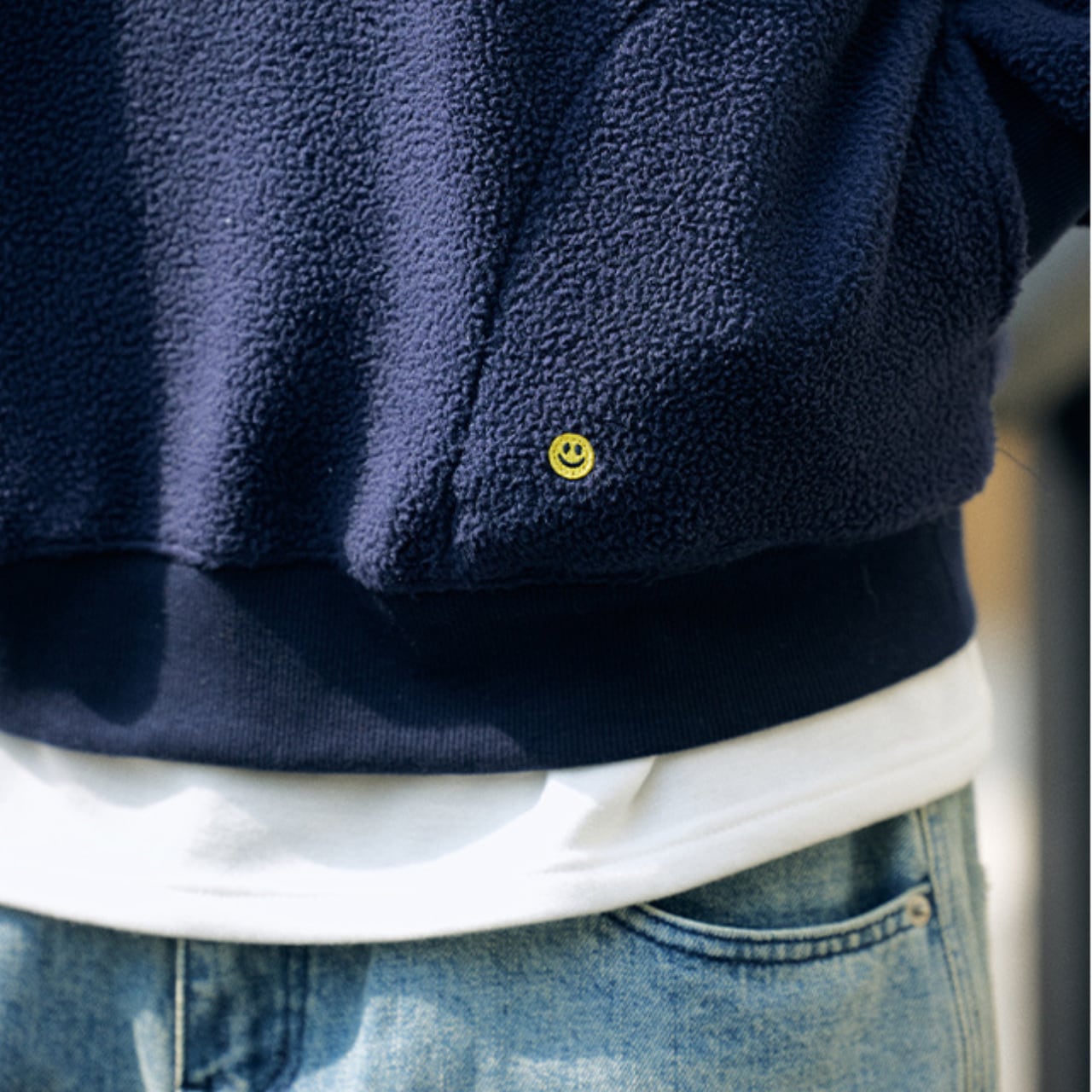 #gate #cityboyootd #フリースコーデ #ハーフジップ #ワンポイントスマイル #冬コーデ #ユニセックスウェア #ルーズフィット #アウトドアMIX #minimalstreet