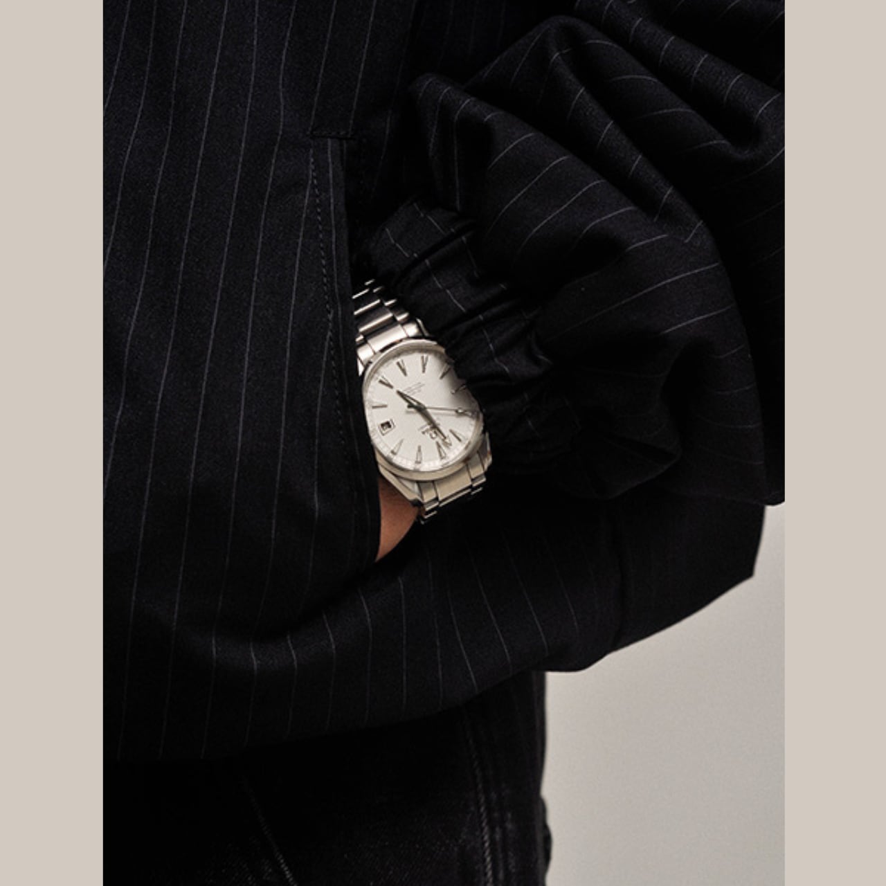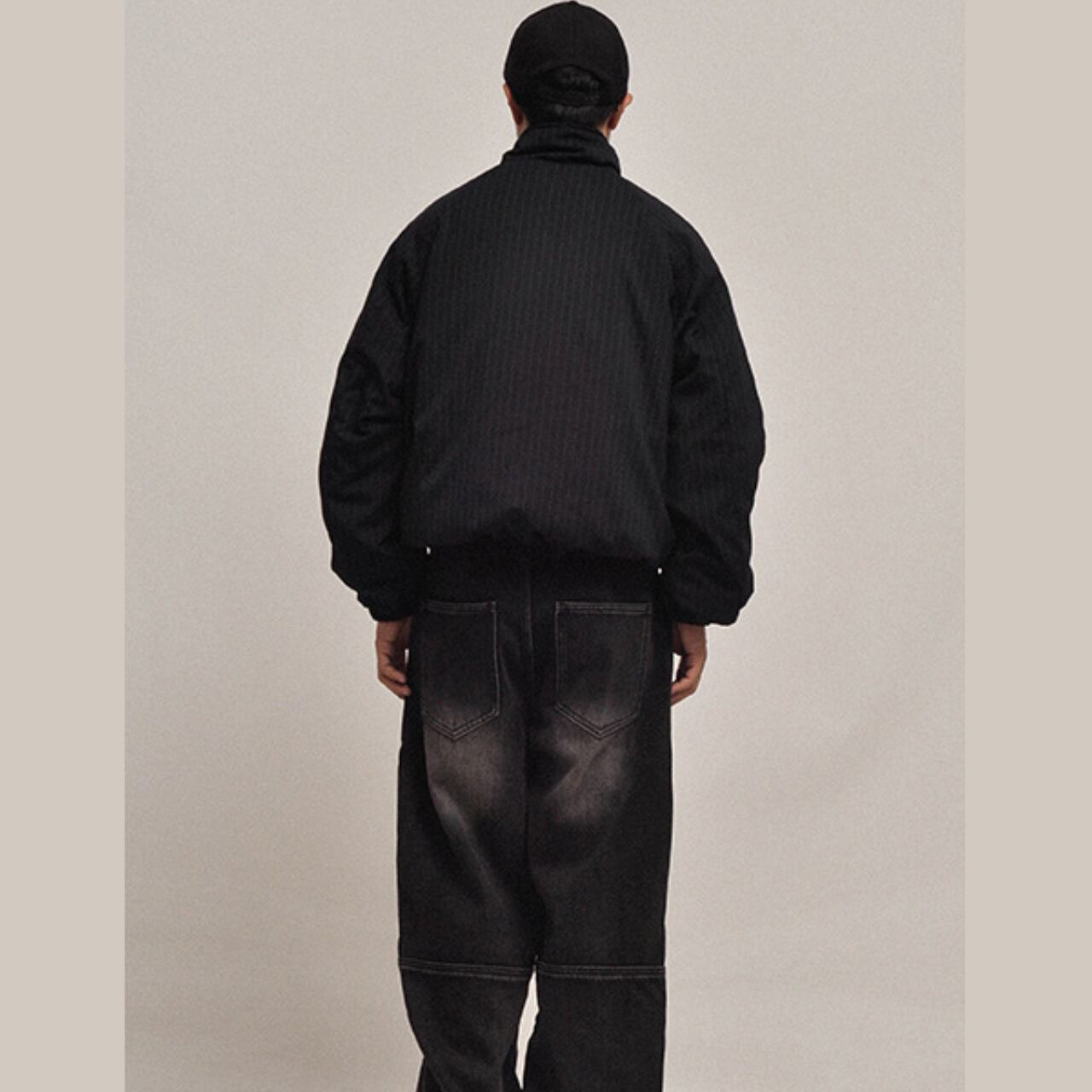 ほんのり光沢感のあるストライプ地が、無地には出せない奥行きを演出。立ち襟仕様で風を防ぎつつ、丸みのあるシルエットが今っぽい。ゆったりとした身幅と短丈の絶妙バランスで、どんなボトムスとも相性抜群。インナーに厚手のニットやスウェットを仕込んでも窮屈さなし。1枚でスタイルが完成する、頼れる主役アウターです。