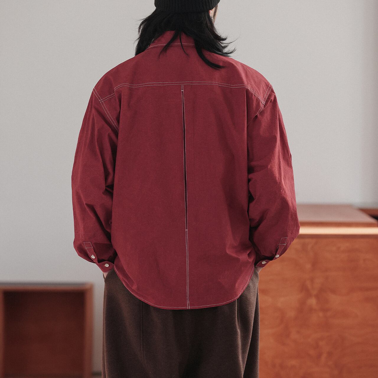 無骨さの中に漂う、クラフト感のある温もり。フロントに施されたタテのダブルステッチと無骨なパッチポケットが印象的なワークシャツ。程よい厚みとハリのあるコットン100%素材で、1枚でも主役になれる存在感。シルエットは身幅に余裕をもたせたゆったり設計で、インナーとのレイヤードも容易。あえてカジュアルなパンツと合わせて、洗練された「抜け」を演出する。