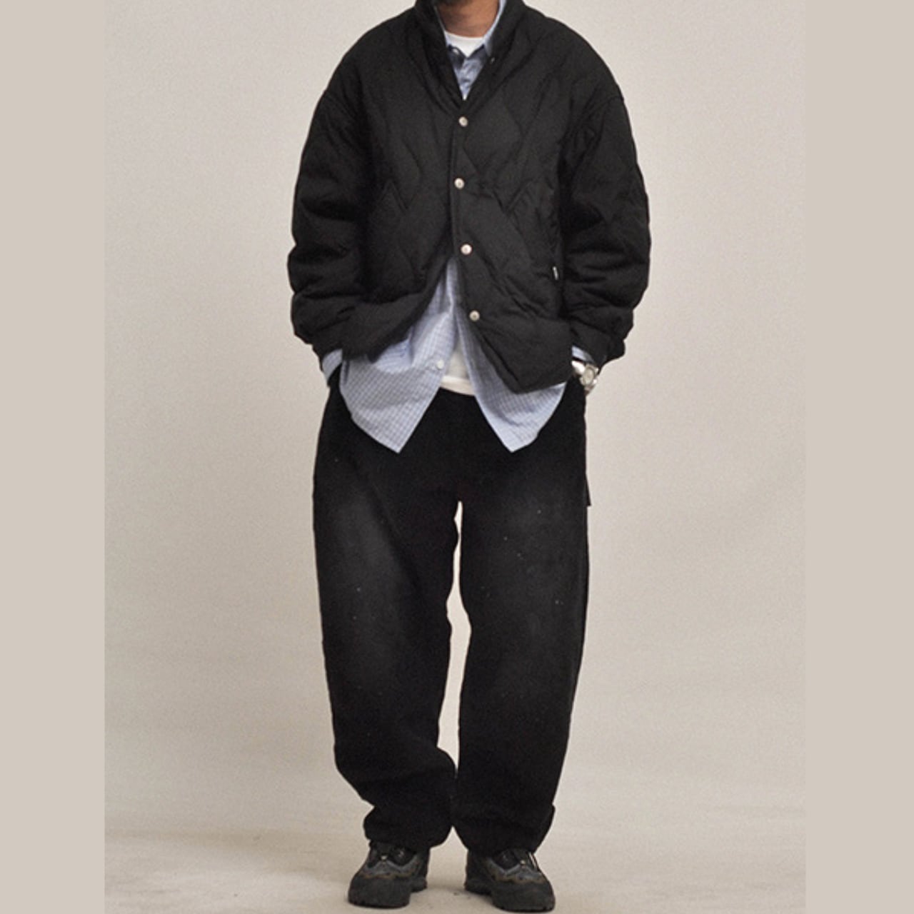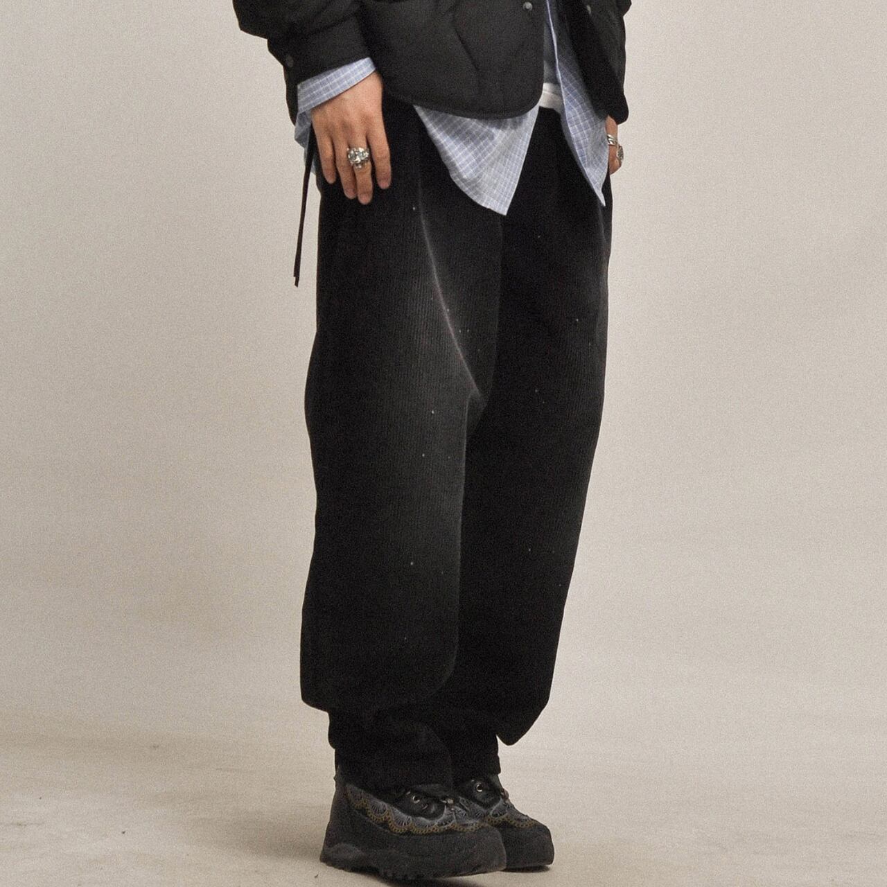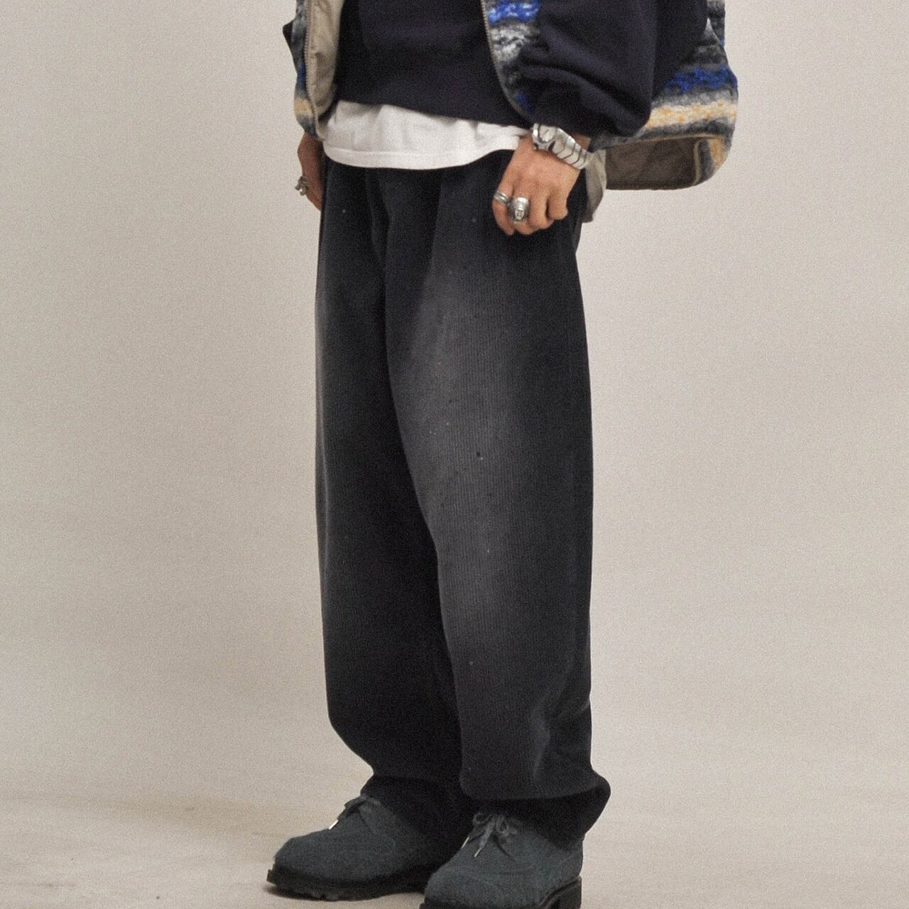 奥行きのある墨黒カラーとゆるやかなワイドシルエットが印象的な一本。ピグメント加工のニュアンス感が、履き込むほどに味わい深く変化していきます。ストリートやシティボーイスタイルの土台として存在感抜群。ヴィンテージライクなムードをまといながらも、動きやすさを兼ね備えたゆったりシルエットで快適な穿き心地。カジュアルなトップスとも、柄ニットやミリタリーアイテムとも相性抜群。