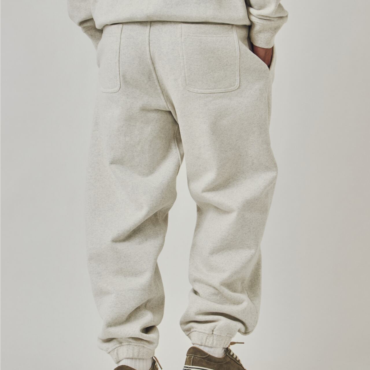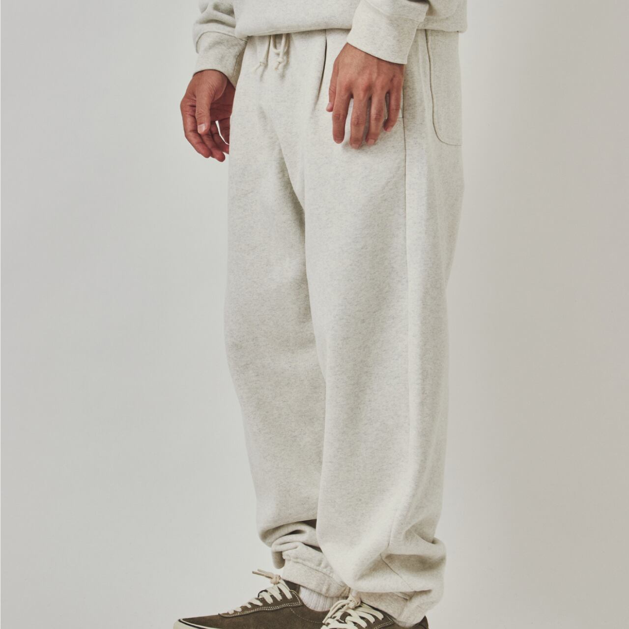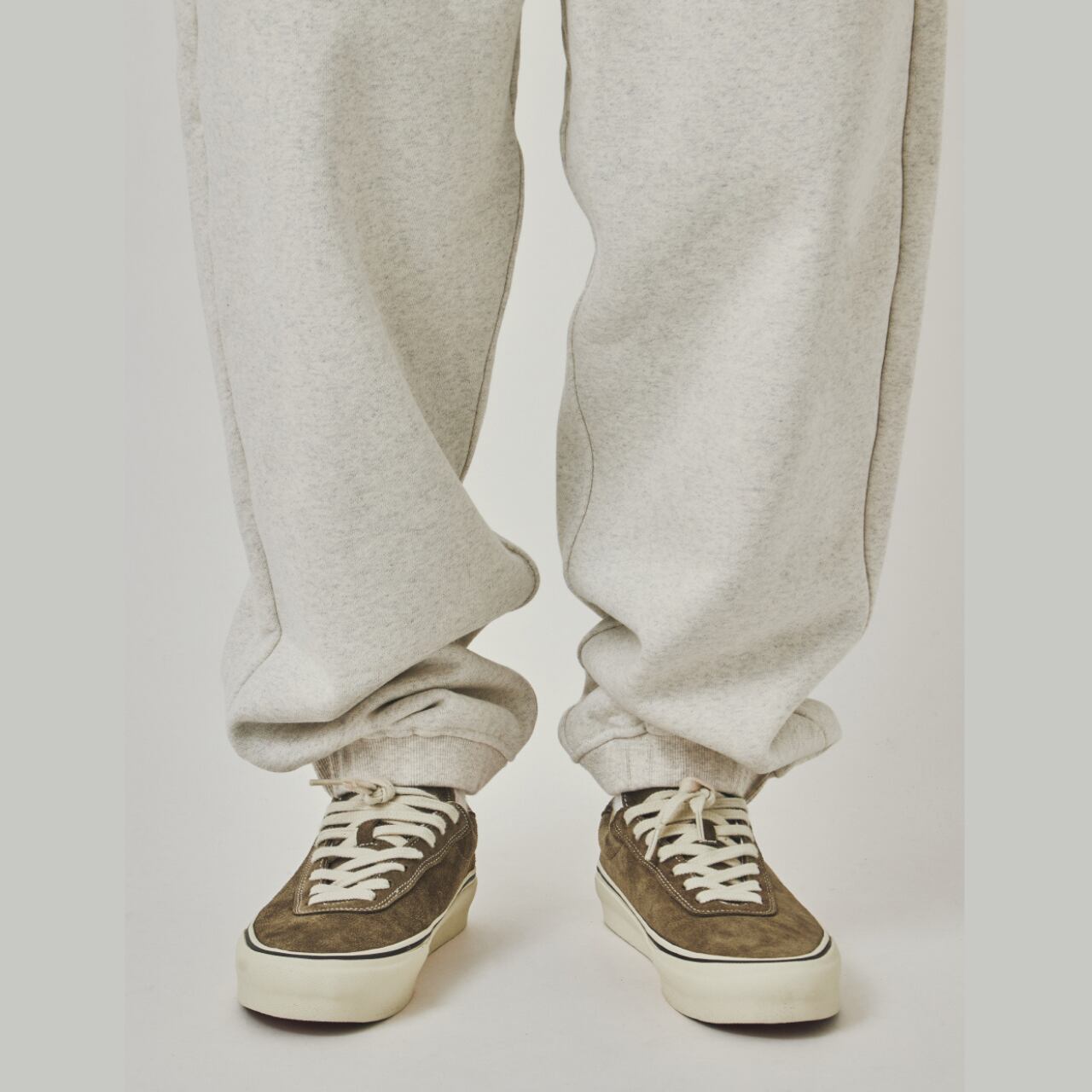 柔らかな綿混素材と、ゆったりとしたテーパードシルエットが魅力のスウェットパンツ。表面にうっすらと起毛感があり、見た目にも暖かく、秋冬の街着にぴったり。足元はリブ仕様で、スニーカーやブーツとも好相性。ジャケットやミリタリーアウターと合わせて、大人のリラックスカジュアルに仕上がります。ゆるめのサイジングで、レイヤードスタイルにも◎。