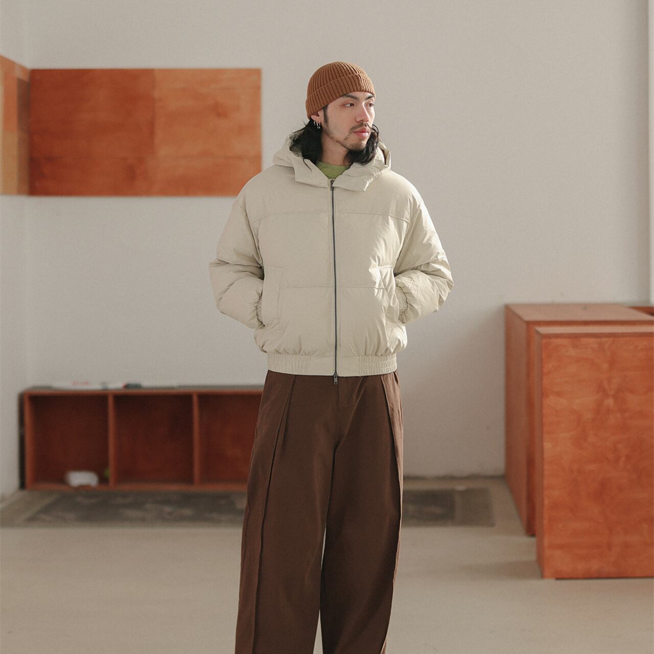 #gate #cityboyootd #ショートダウン #ハイネックアウター #軽量ダウン #ミニマルコーデ #冬のワントーン #アイボリーダウン #ワイドパンツ男子 #2025winter #noears