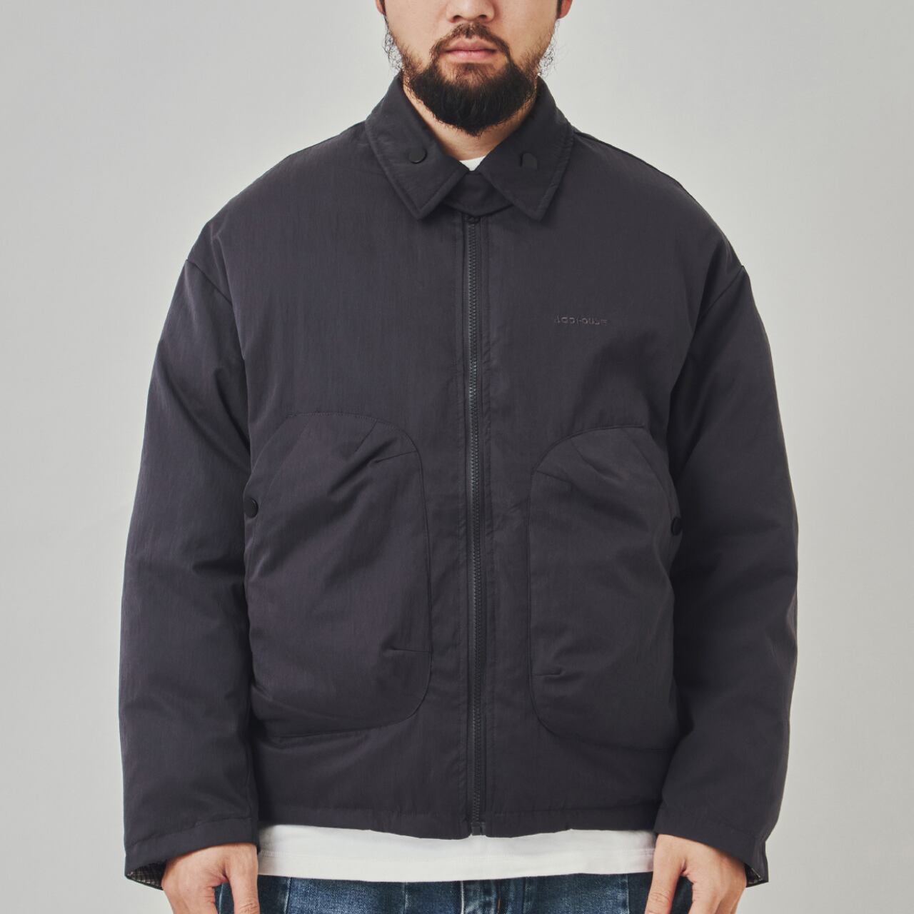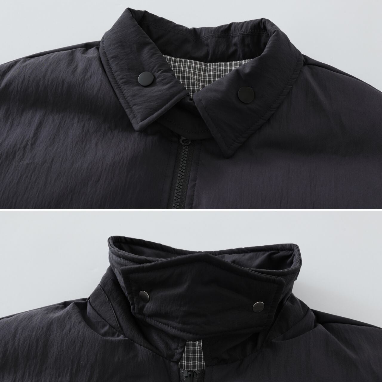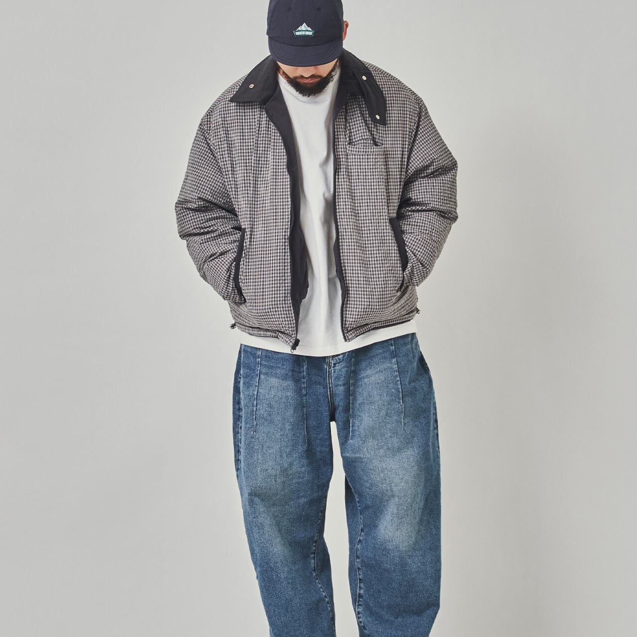 シンプルで機能的な表面と、クラシカルなチェック柄の裏面。2WAY仕様で気分やコーデに合わせて楽しめるリバーシブル中綿ジャケット。丸みを帯びたショート丈シルエットが今季らしく、ボリューム感のある袖や身幅が抜け感を演出。大容量のフロントポケットやスタンドネック仕様で、アウトドアからタウンユースまで幅広く活躍します。厚手インナーの上からでももたつかず着用可能なゆったりフィットです。