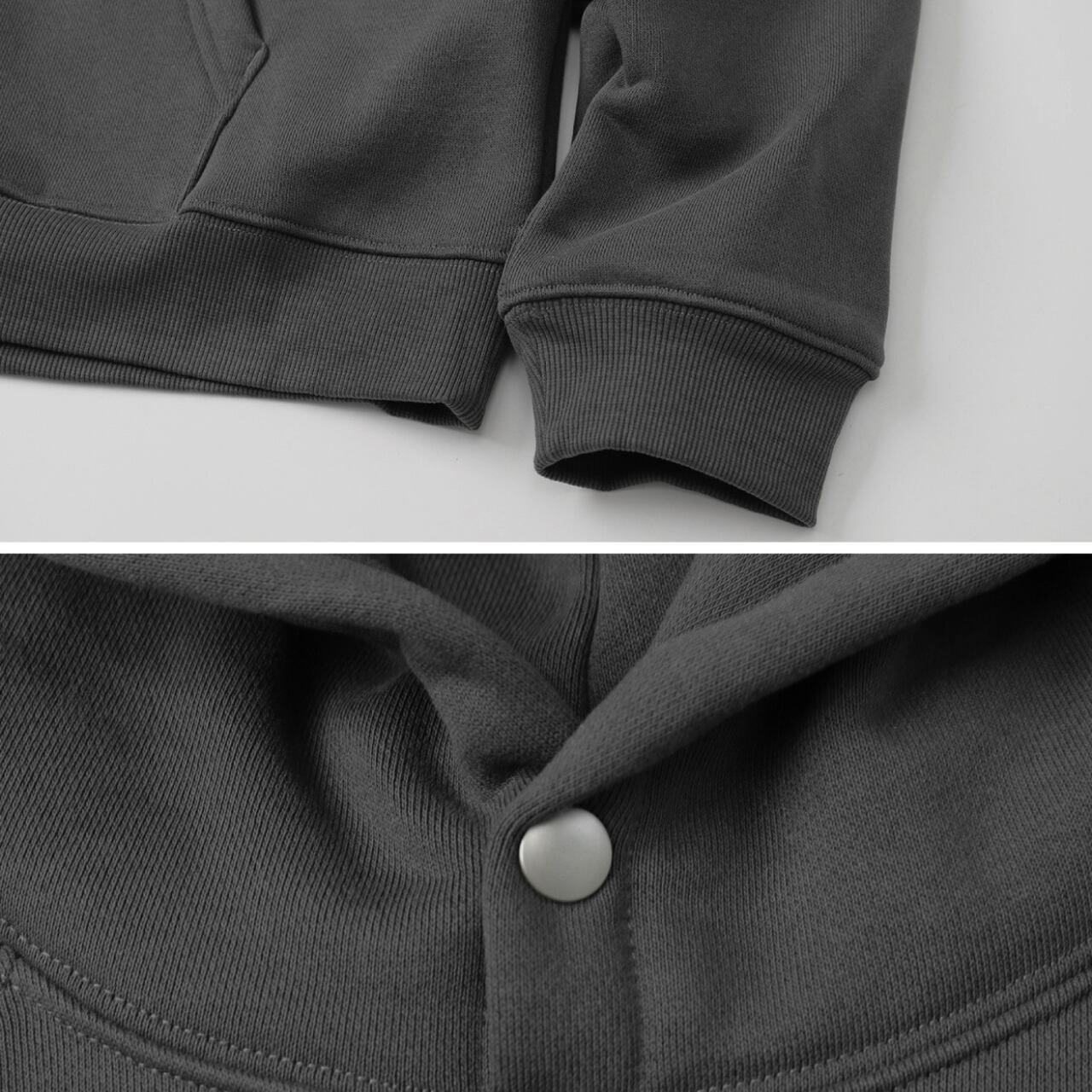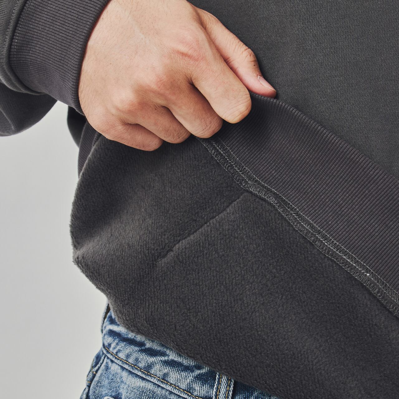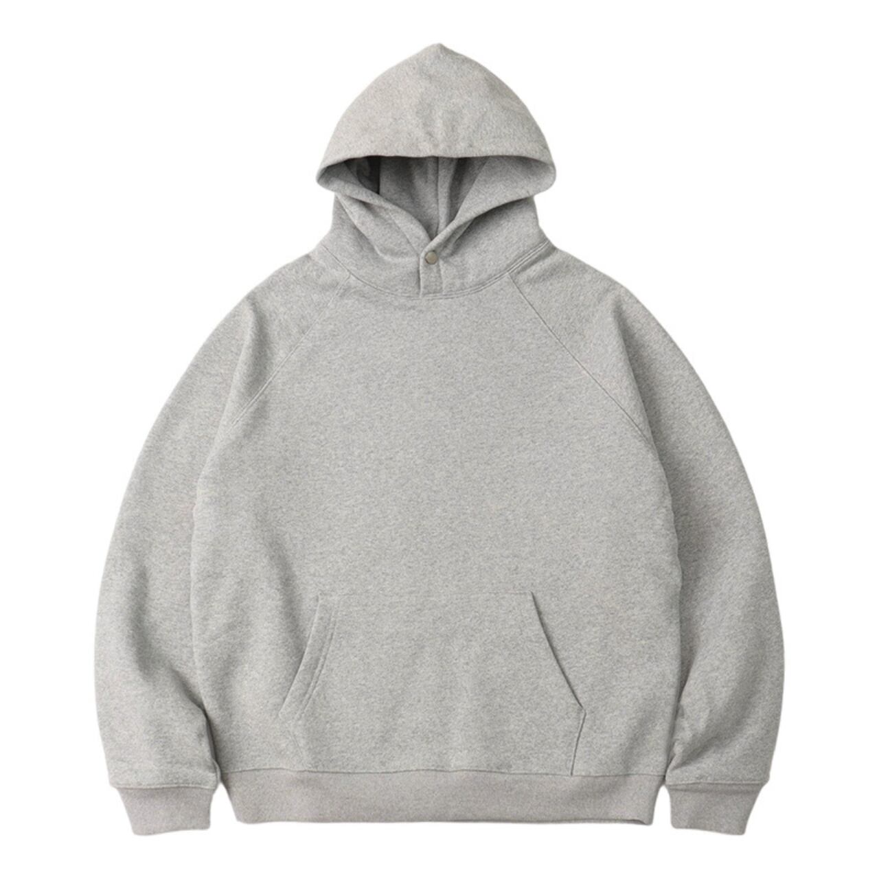 内側にしっかりとした起毛裏地を施した、冬でも暖かく着られるヘビースウェットパーカー。肩まわりが動きやすいラグランスリーブ仕様で、リラックス感のあるワイドシルエット。洗いのかかったようなスモーキーなトーンが、ストリートにもナチュラルにも馴染む絶妙カラー。アウターの中でもかさばらず、インナーとしても一枚着としても使える万能アイテム。着込むほどに味が出る、デイリーに使える1枚です。