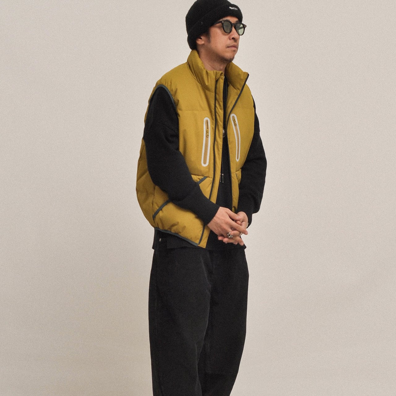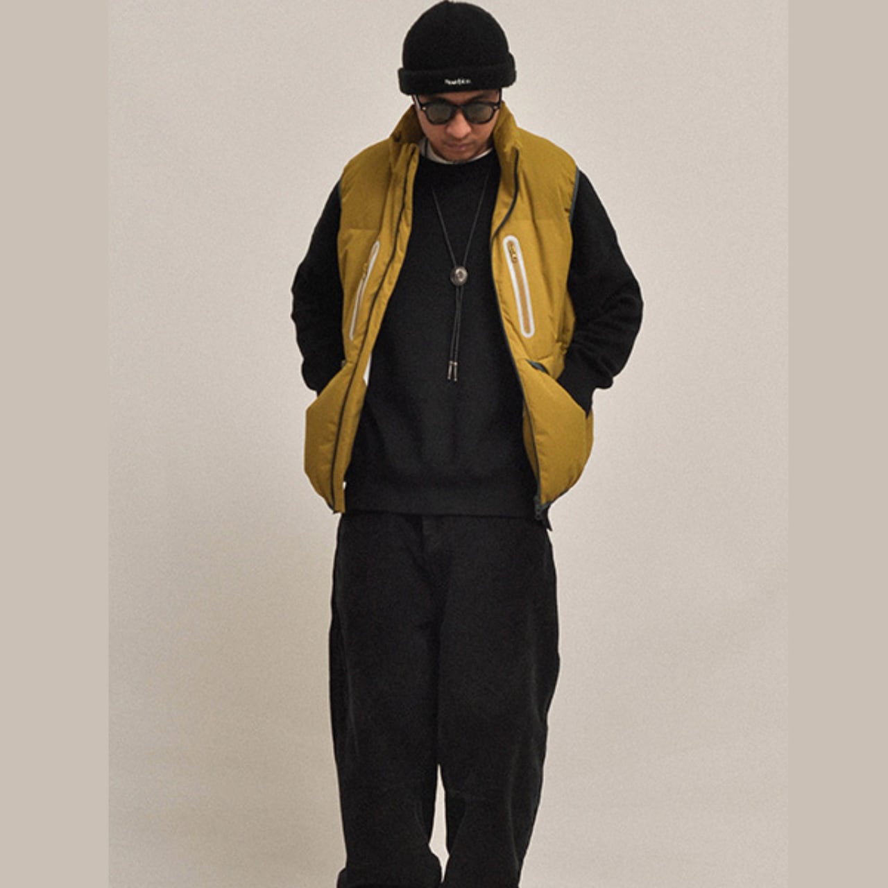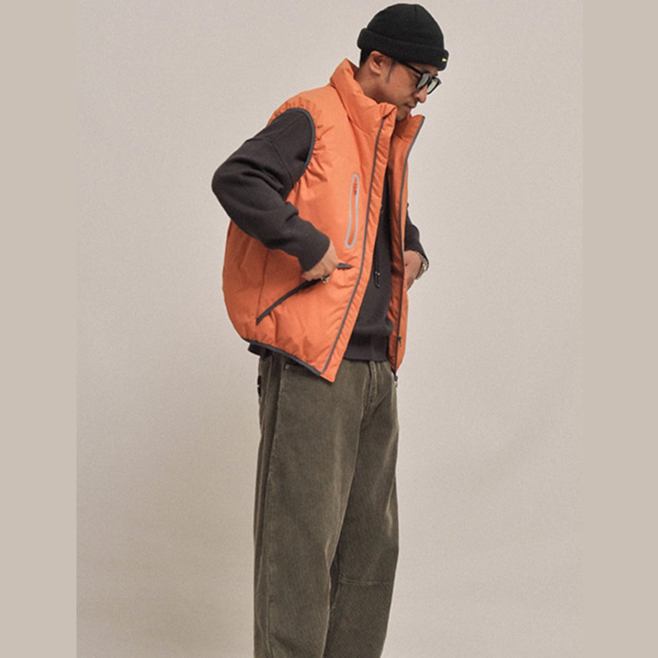 #gate #cityboyootd #downvest #静かなアウトドア #minimaltechwear #ダウンベスト #ミリタリーカラー #レイヤードスタイル #2025fw #ネオンジップ