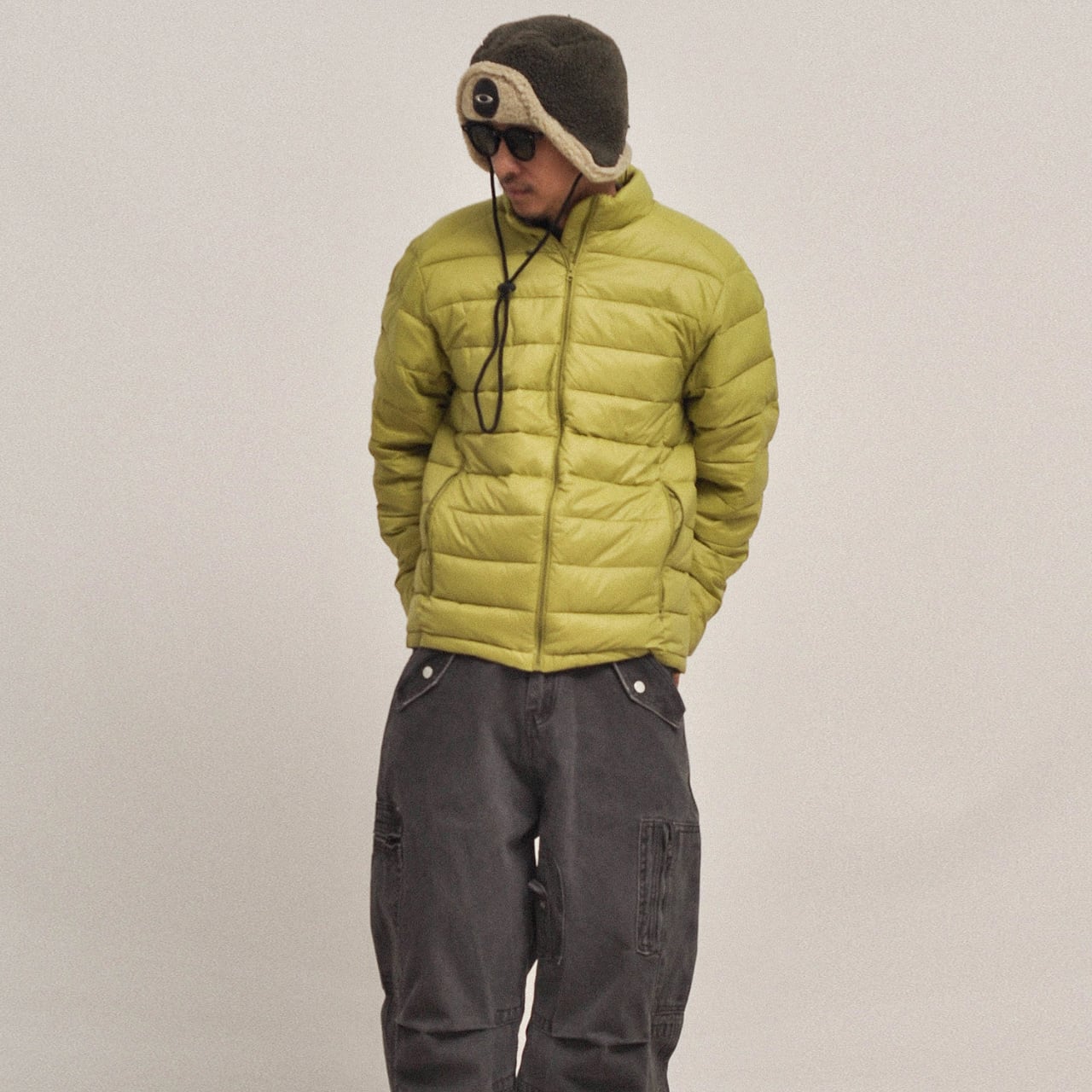 ミニマルで都会的なデザインに、確かな防寒性を備えたスタンドカラーダウン。高密度コットンシェルに90%ホワイトダックダウンを充填し、軽量ながらも暖かさ抜群。直線的なパネル構造でボリューム感を抑え、野暮ったさを感じさせないスマートなシルエット。ワイドパンツやカーゴパンツと合わせて、冬のレイヤードスタイルを格上げしてくれる一着です。