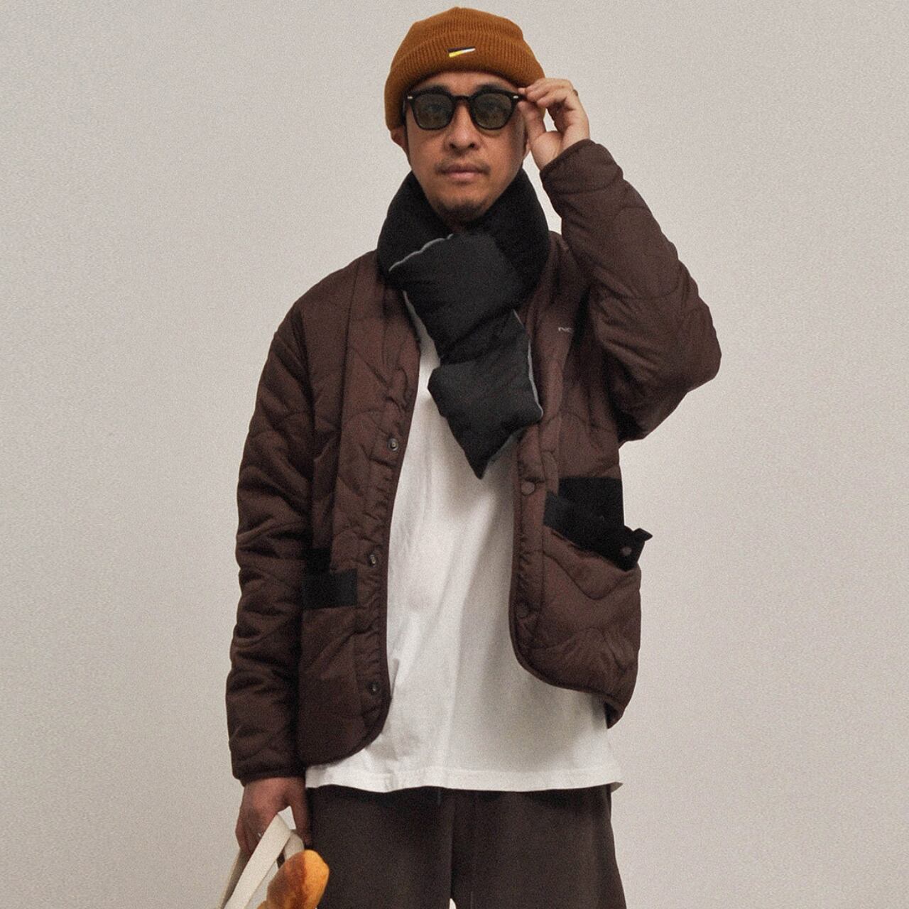 #gate #cityboyootd #ノーカラージャケット #キルティングジャケット #中綿アウター #冬コーデ #urbanoutdoor #ゆるだぼ男子 #ブラウンコーデ #blackstyle #campスタイル