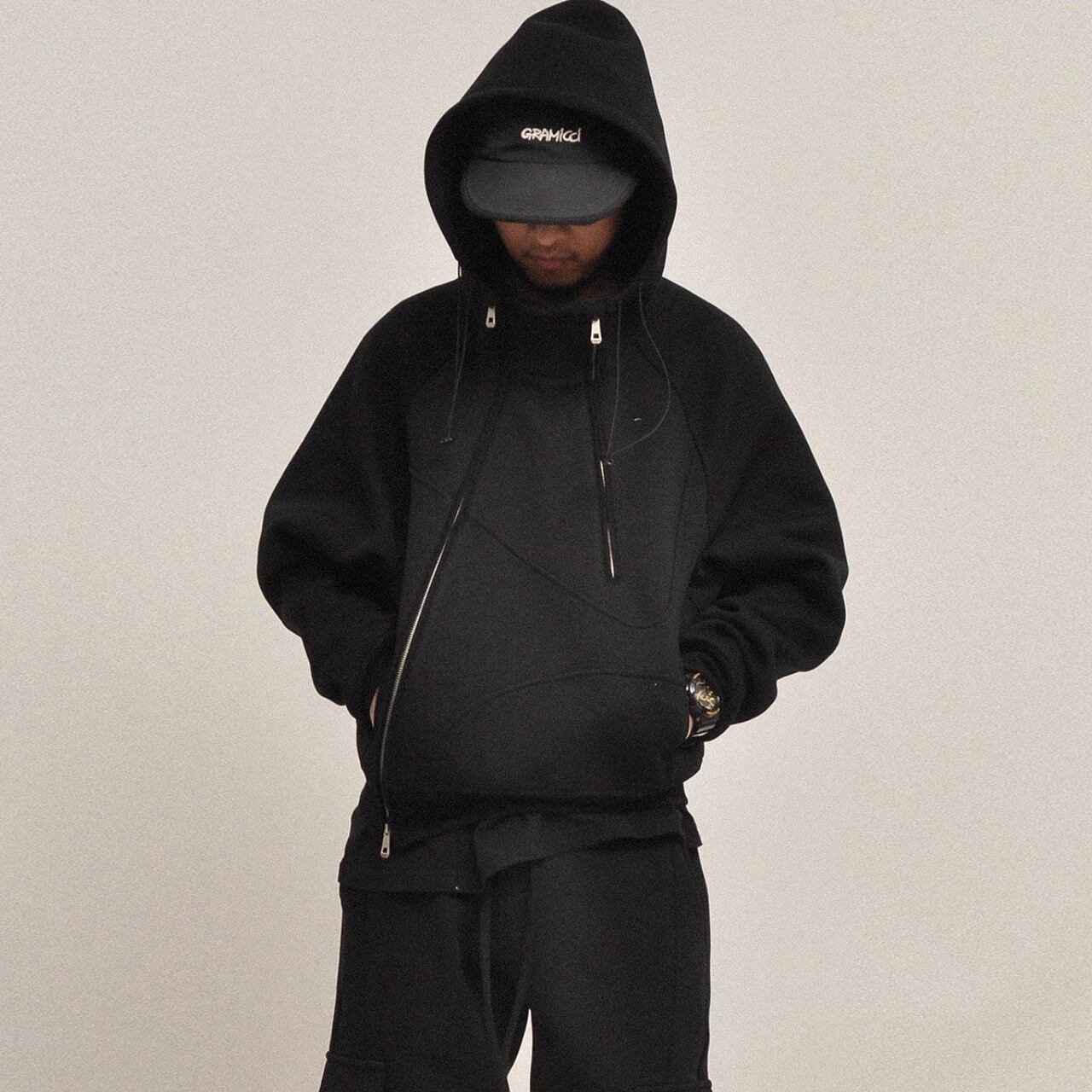 #gate #asymmetryzip #techwearstyle #裏起毛 #cityboyootd #モードストリート #セットアップ対応 #relaxfit #テックパーカー #minimaldesign #ユニセックスフーディー