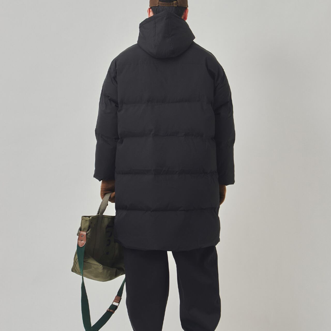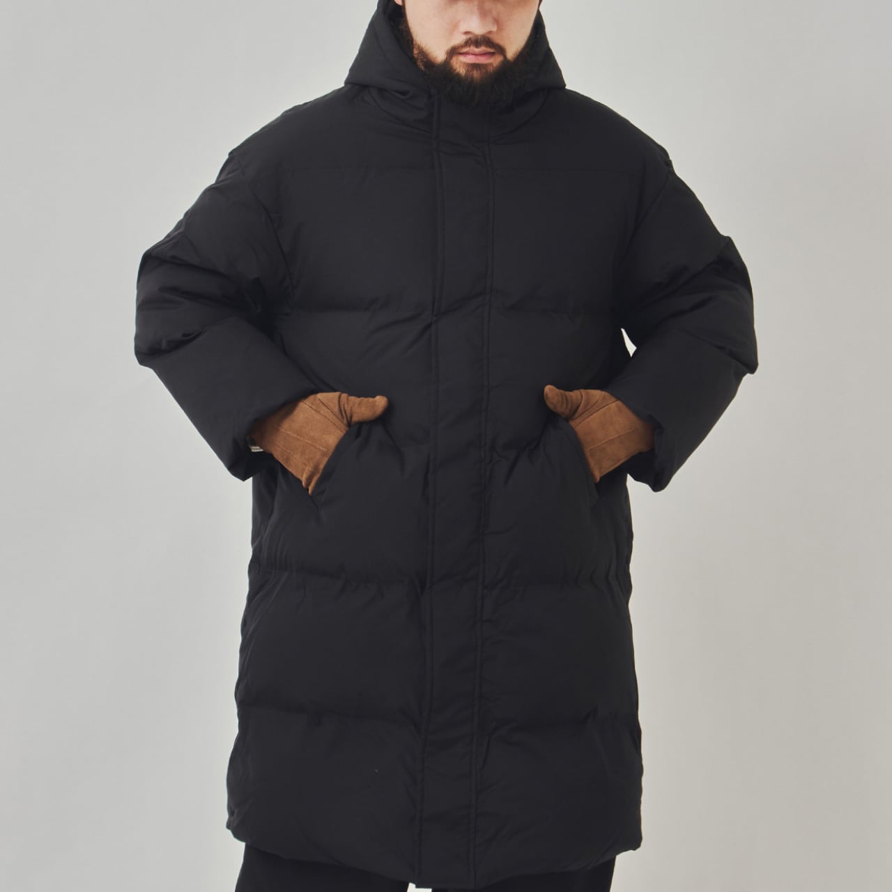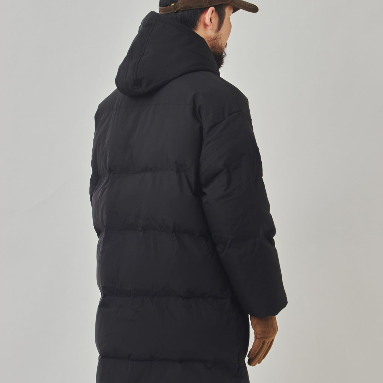 極寒にも耐えうるボリューム感が魅力の、ロング丈ダウンパーカー。中綿たっぷりのボックスシルエットは保温性抜群。マットなブラックの表地により無骨ながらも洗練された印象に仕上がっています。比翼仕立てのフロントと、ドロップショルダーによる丸みのあるシルエットがこなれ感を演出。アーバンアウトドアにも対応する、防風性とスタイル性を両立した一着。