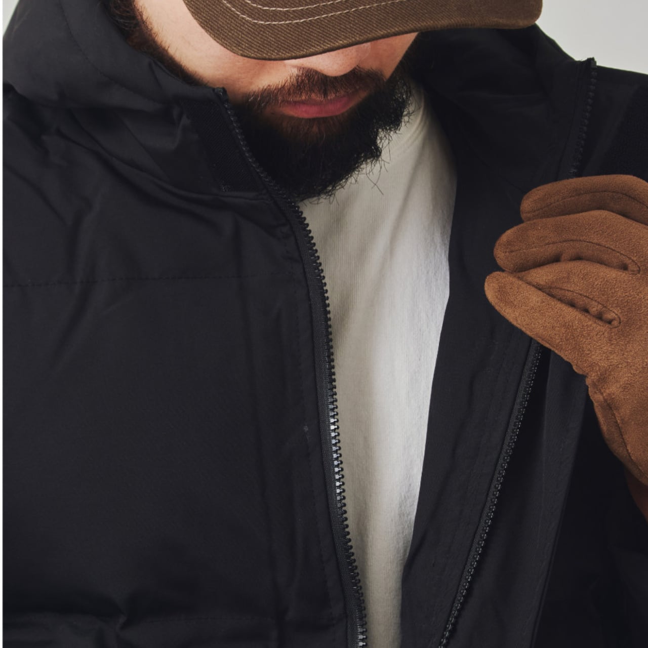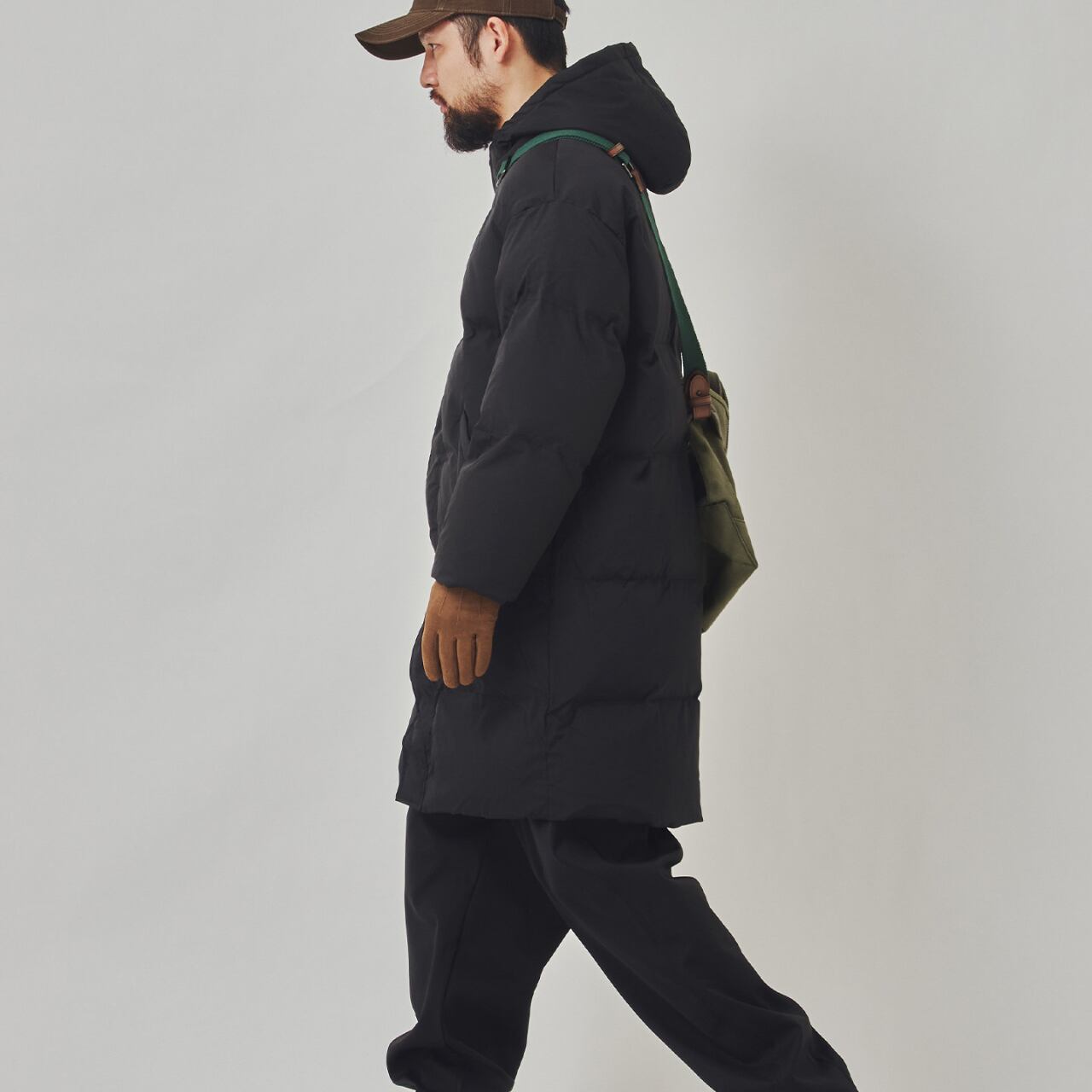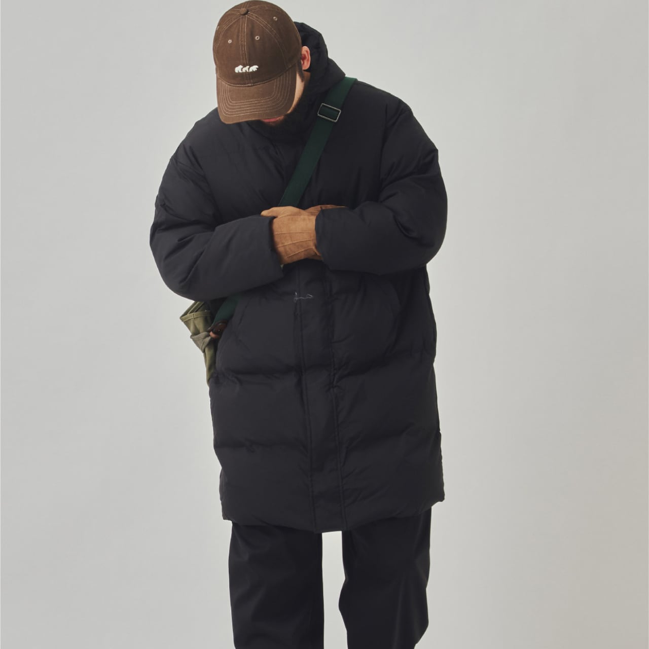 極寒にも耐えうるボリューム感が魅力の、ロング丈ダウンパーカー。中綿たっぷりのボックスシルエットは保温性抜群。マットなブラックの表地により無骨ながらも洗練された印象に仕上がっています。比翼仕立てのフロントと、ドロップショルダーによる丸みのあるシルエットがこなれ感を演出。アーバンアウトドアにも対応する、防風性とスタイル性を両立した一着。