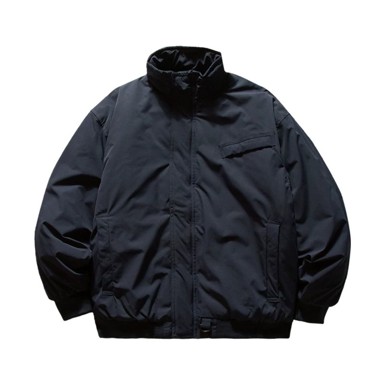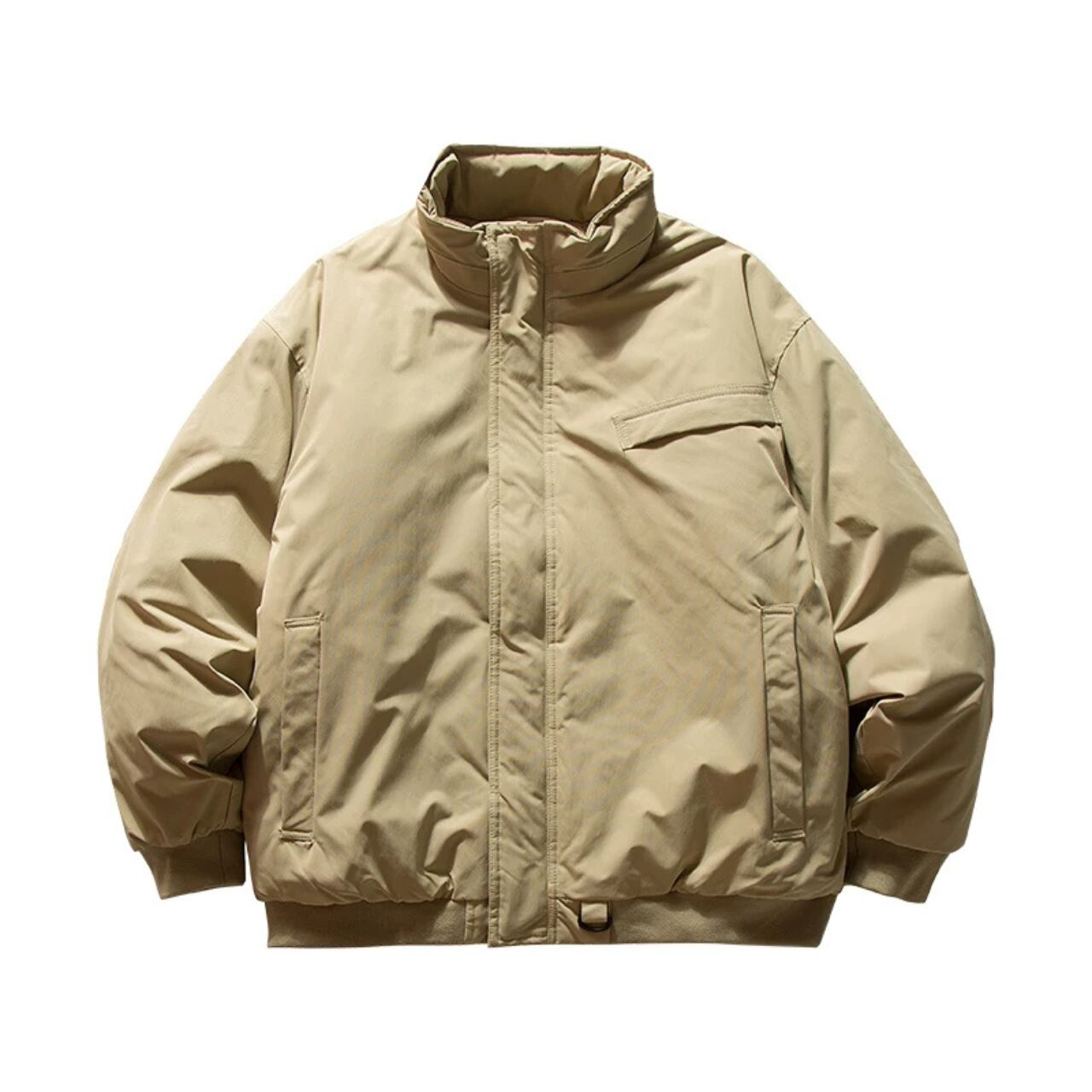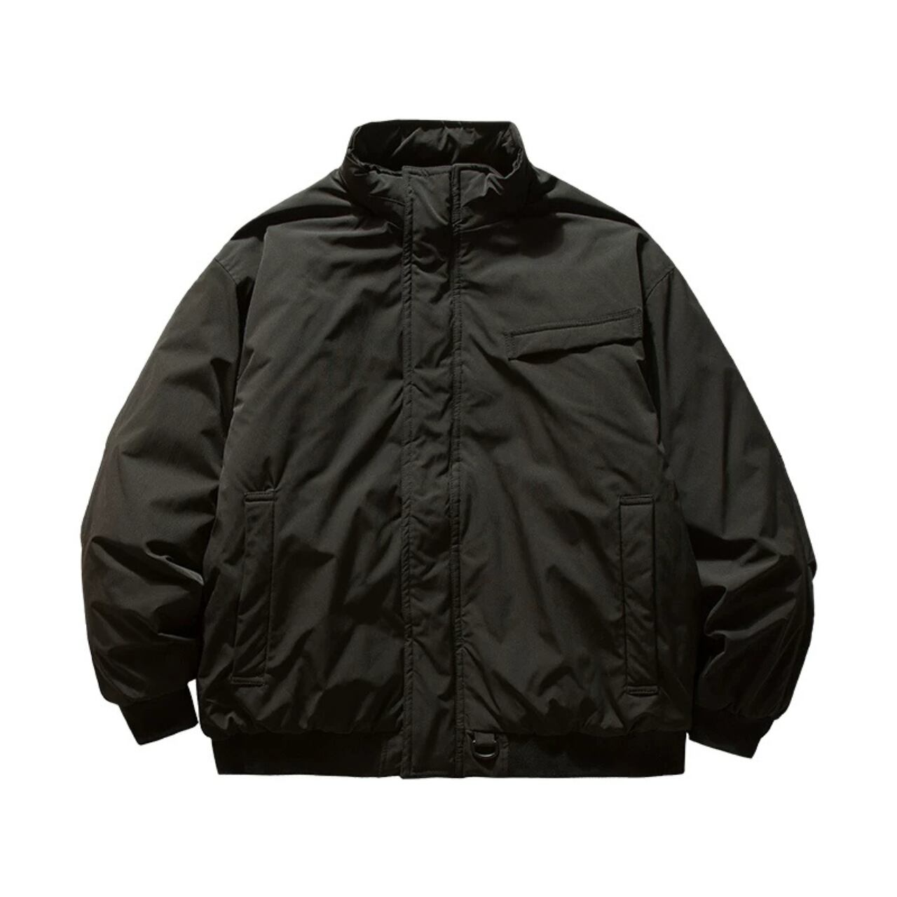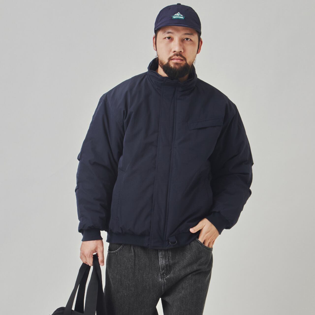 ボリュームあるシルエットとミニマルなデザインが特徴のパファージャケット。高めのスタンドカラーが首元をすっきり見せ、暖かさと機能性を両立。表面はマットなポリエステル素材で、カジュアルなデニムやスウェットパンツとの相性も抜群です。ショート丈のバランスがスタイルを選ばず、ストリートからタウンまで幅広いコーデにフィットします。