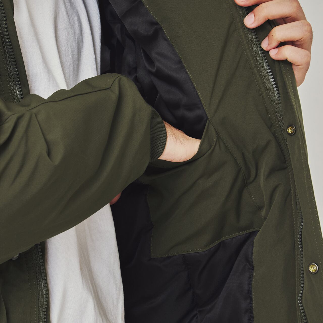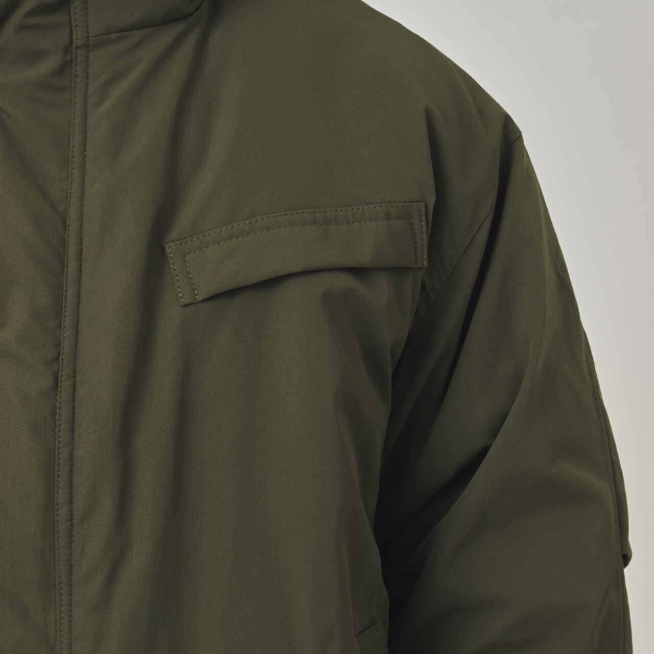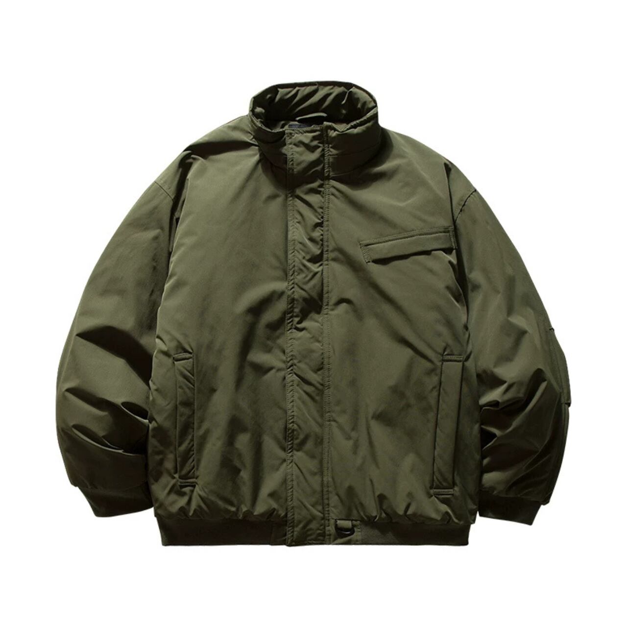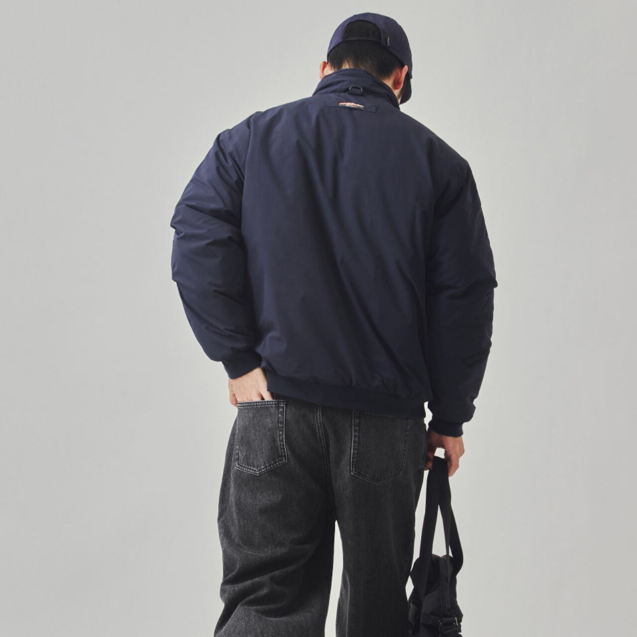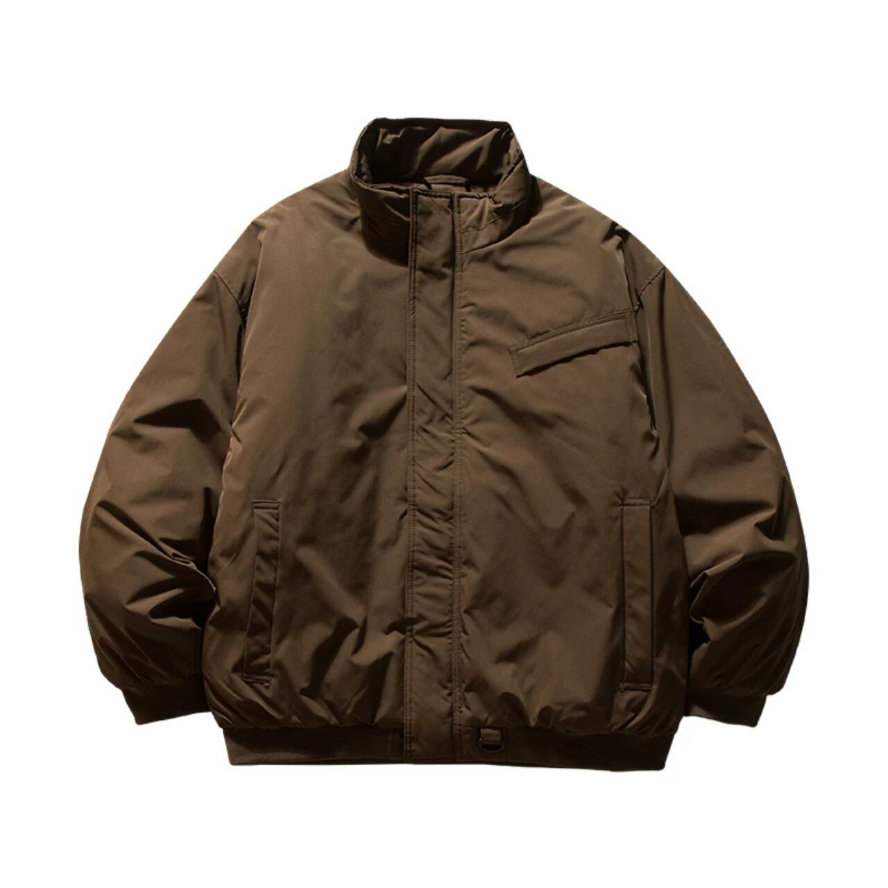 ボリュームあるシルエットとミニマルなデザインが特徴のパファージャケット。高めのスタンドカラーが首元をすっきり見せ、暖かさと機能性を両立。表面はマットなポリエステル素材で、カジュアルなデニムやスウェットパンツとの相性も抜群です。ショート丈のバランスがスタイルを選ばず、ストリートからタウンまで幅広いコーデにフィットします。