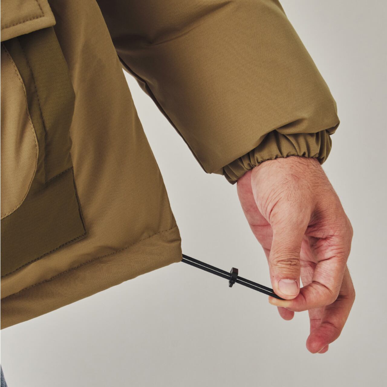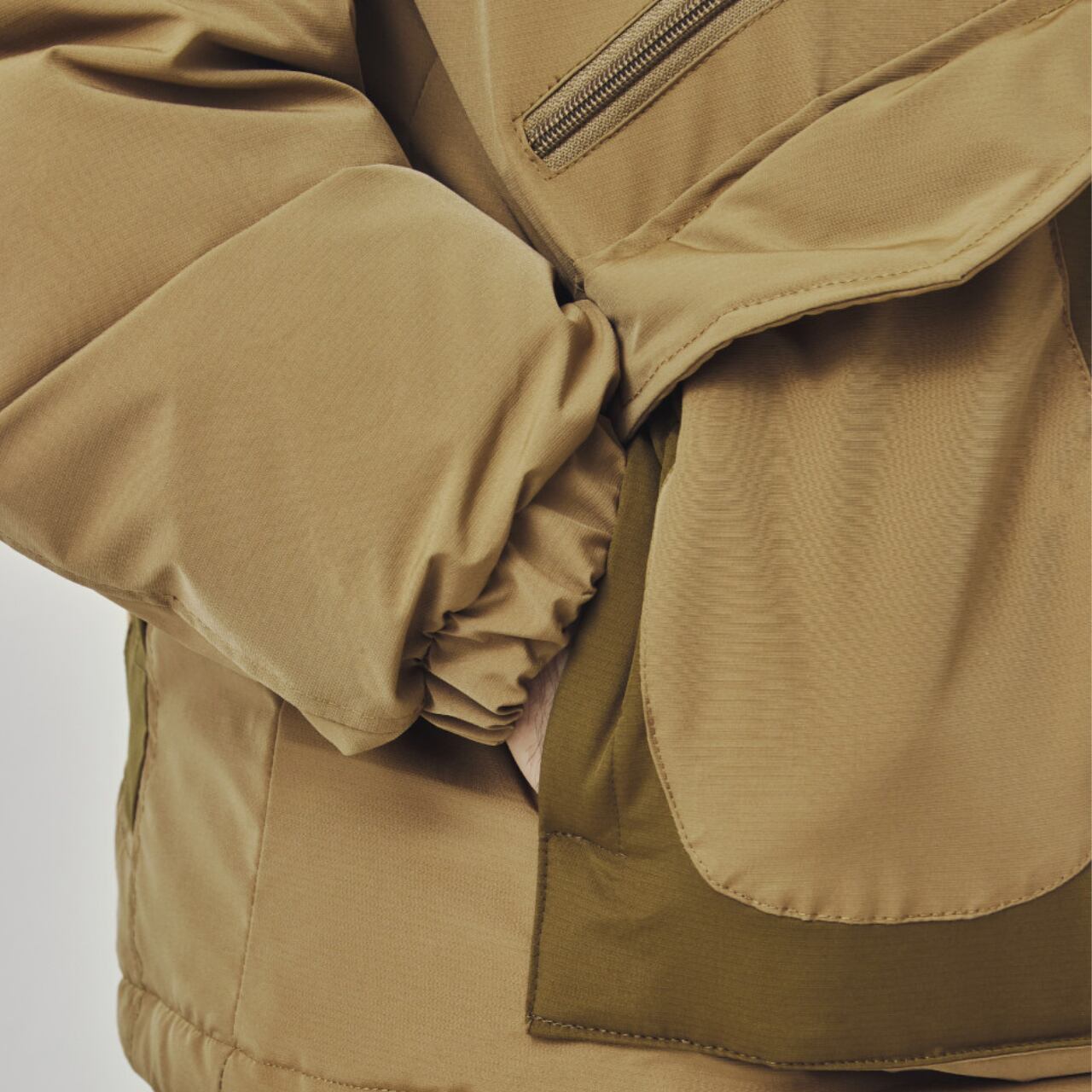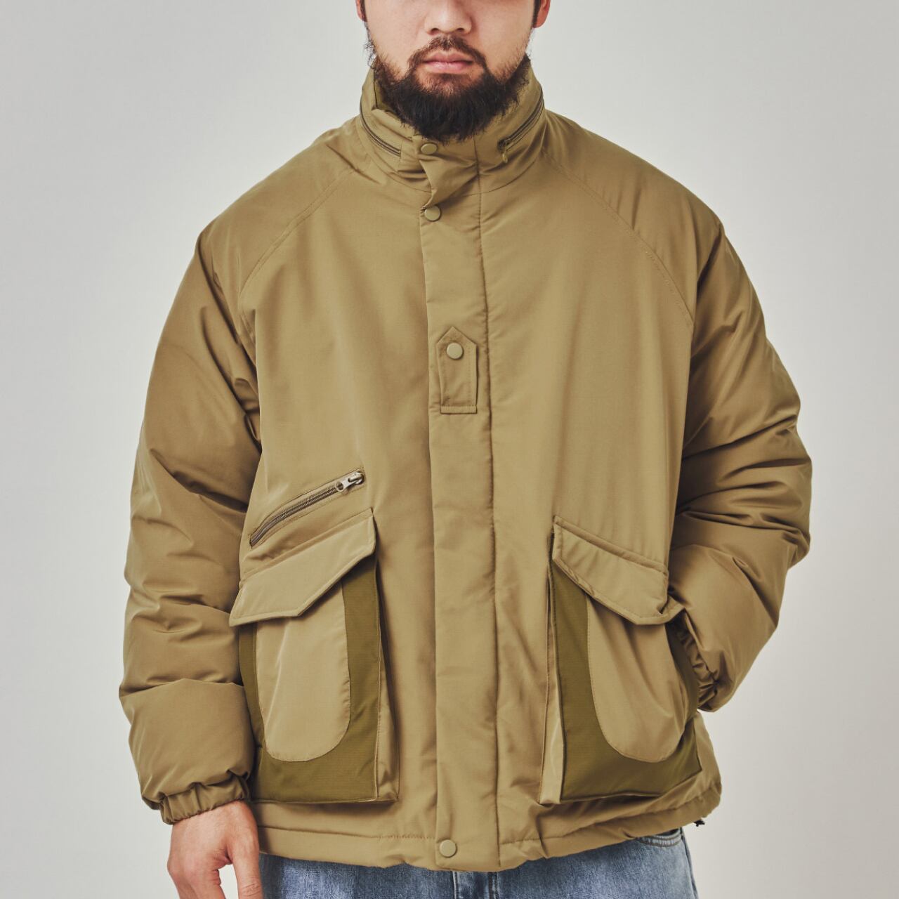 マットな質感の中綿アウターに、ミリタリー由来の大容量ポケットを掛け合わせたユーティリティジャケット。