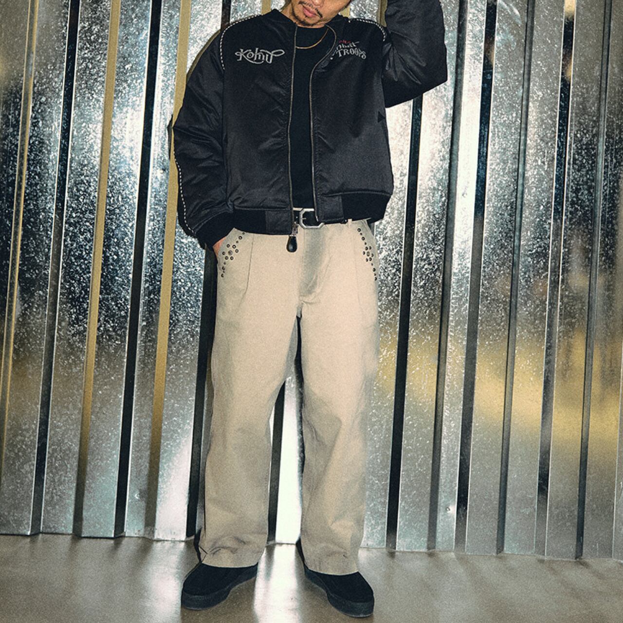 スタイルはベーシックでも、どこか違和感のある“外し”が効いたデザインで、ルードにもストリートにも振れる自由な表情が魅力。