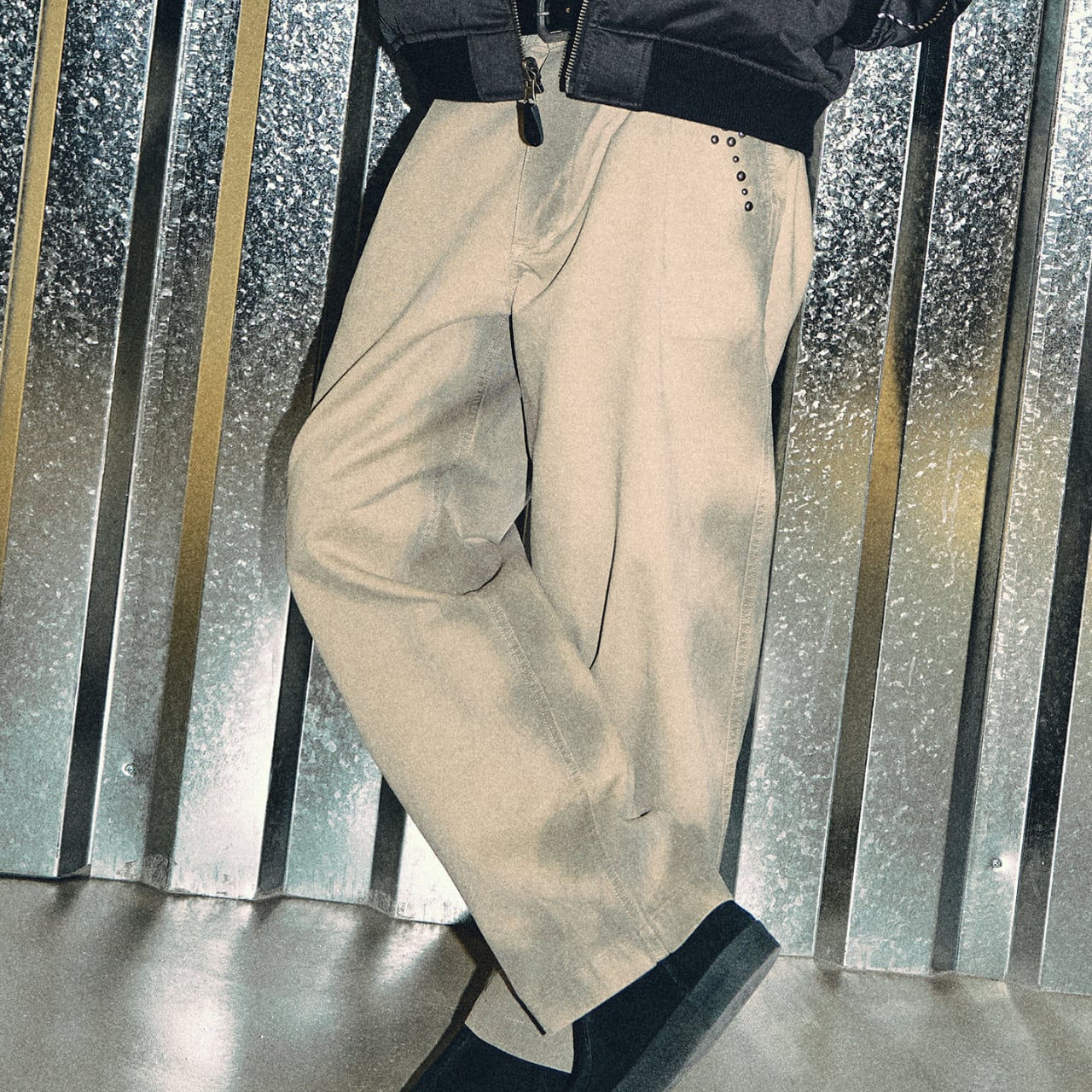 エッジの効いたディテールで、王道のチノパンに遊び心を。