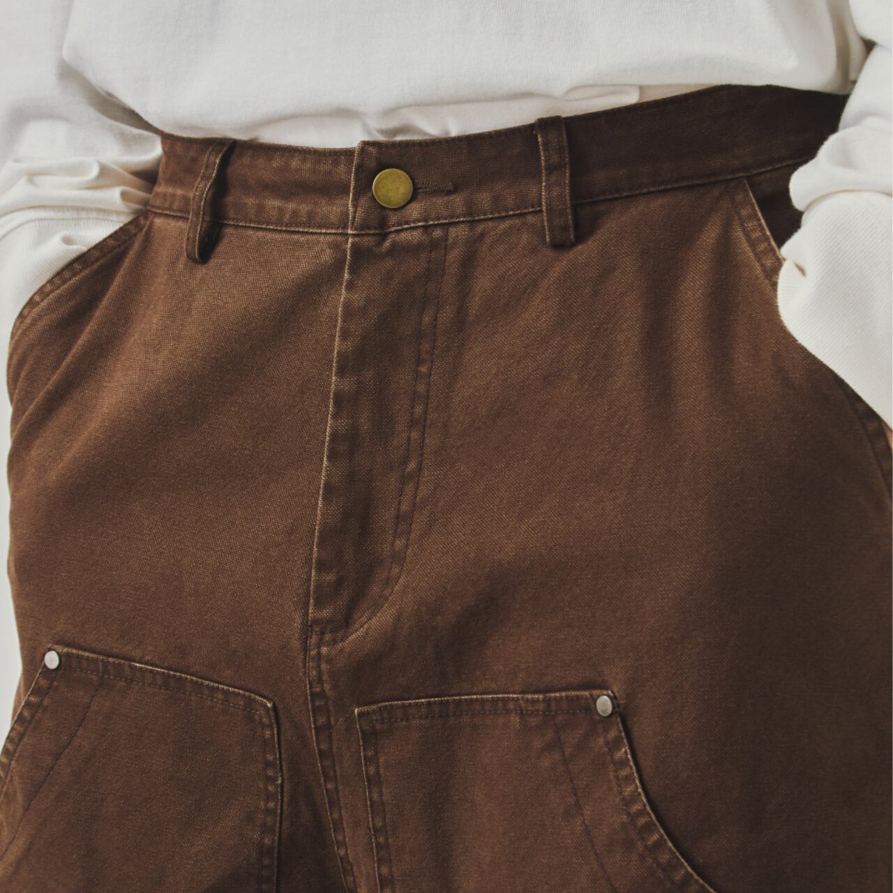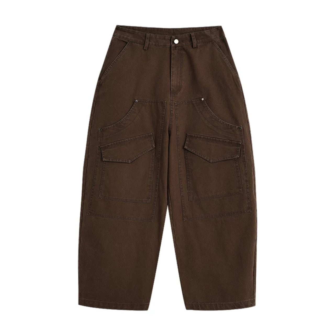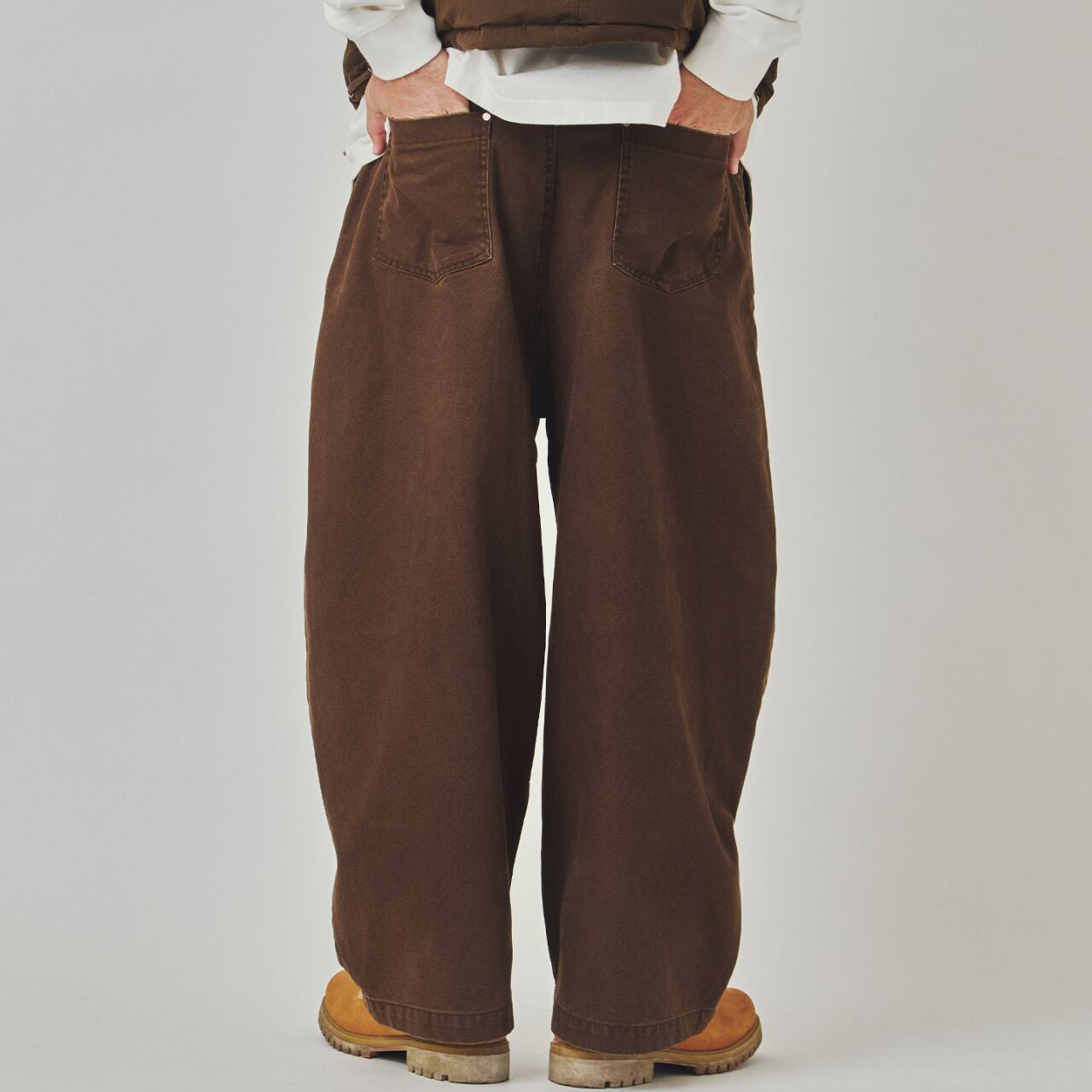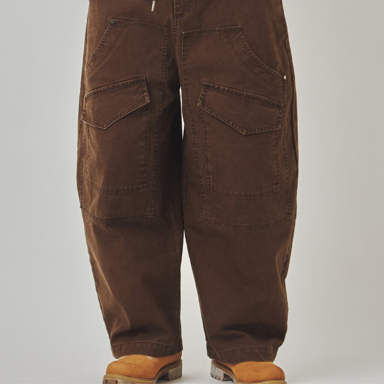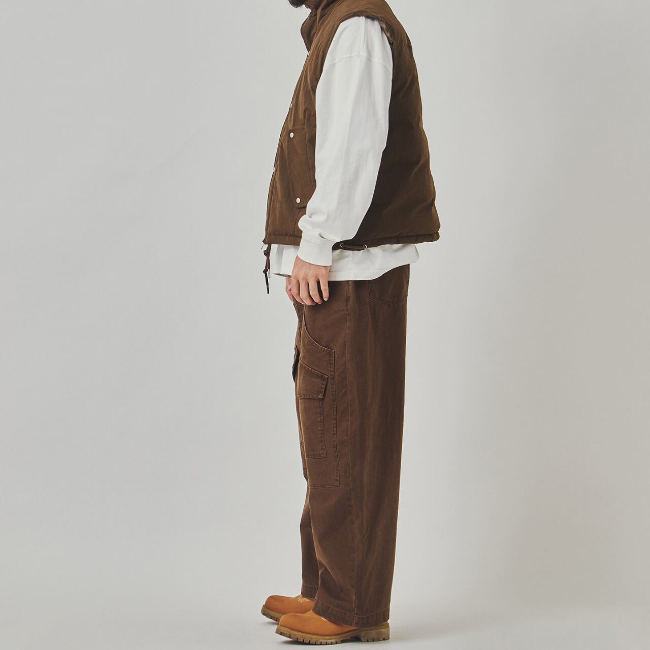 程よいヴィンテージ感のあるコットン素材を使用したワイドカーゴパンツ。大ぶりのポケットがアクセントとなり、機能的でありながら存在感のあるルックスに仕上がっています。太めのシルエットと深めの股上で、ストリート〜アウトドアまで自在にハマる一着。シンプルなトップスと合わせるだけで、今っぽいゆるめのバランスコーデが完成します。