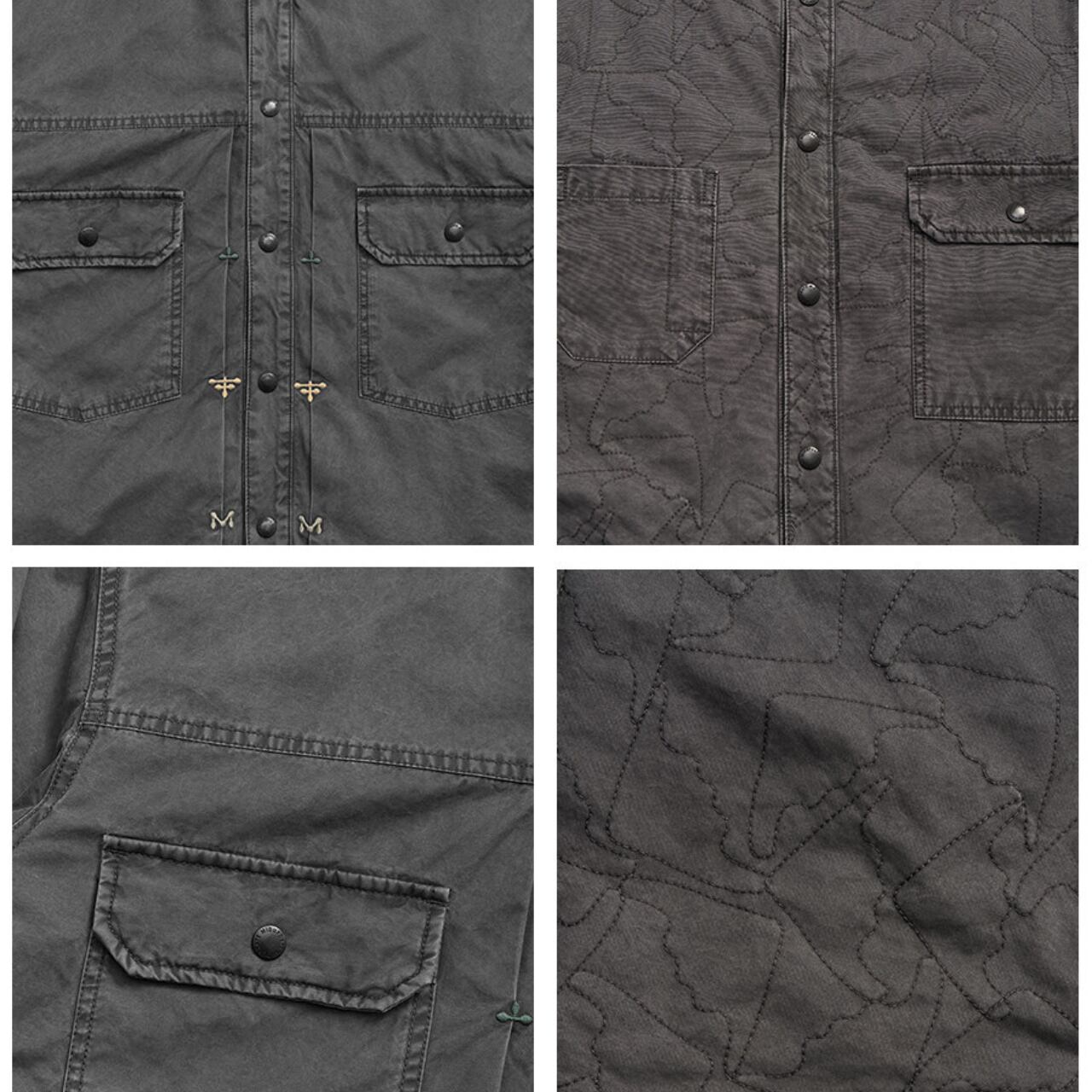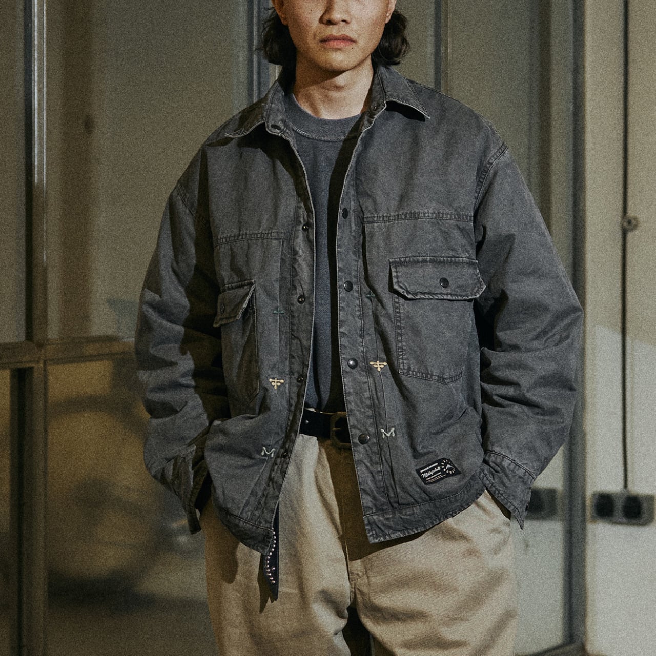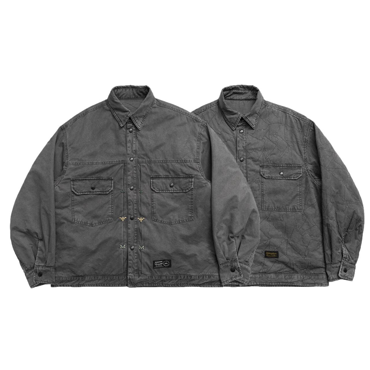 ベーシックなワークシャツをベースに、再構築したリバーシブル仕様のシャツジャケット。A面は高密度な刺繍ディテールで立体感のある表情、B面はキルティング調の落ち着いた風合いで、気分やスタイリングに合わせて使い分けが可能です。洗い加工によるフェード感が程よく、シャツとしてもライトアウターとしても活躍。チノパンやデニムと合わせたシティユースから、ワーク・アウトドアミックスまで幅広く対応します。