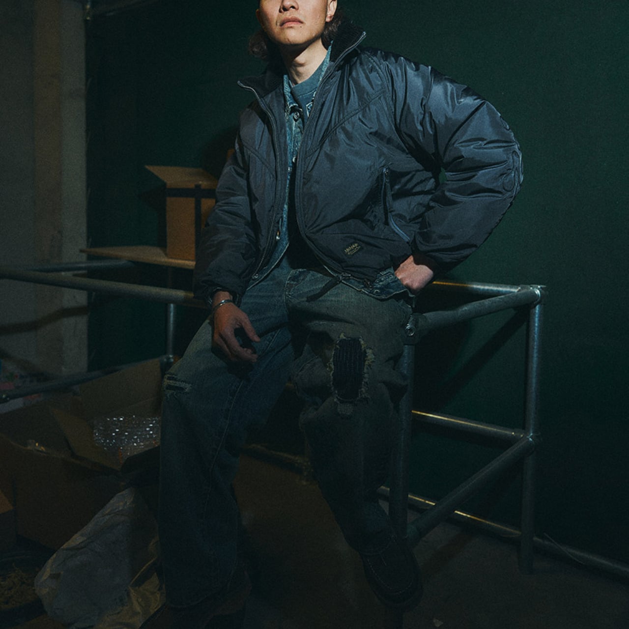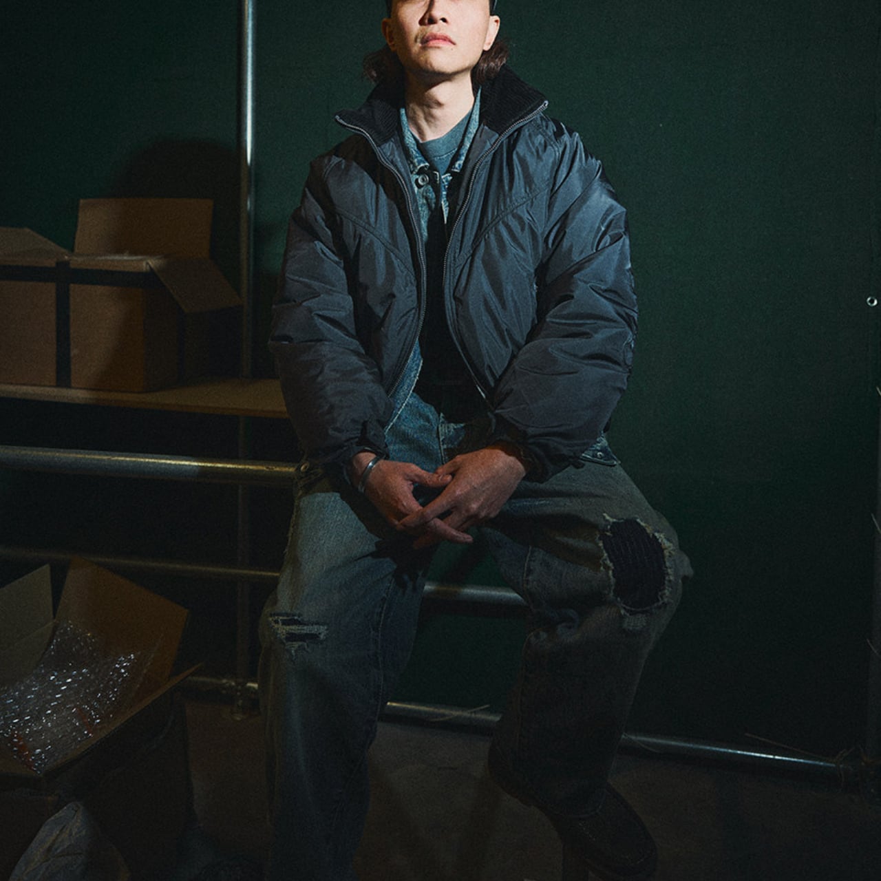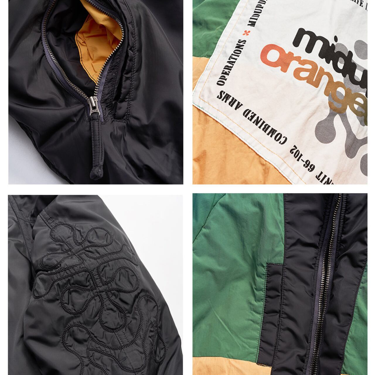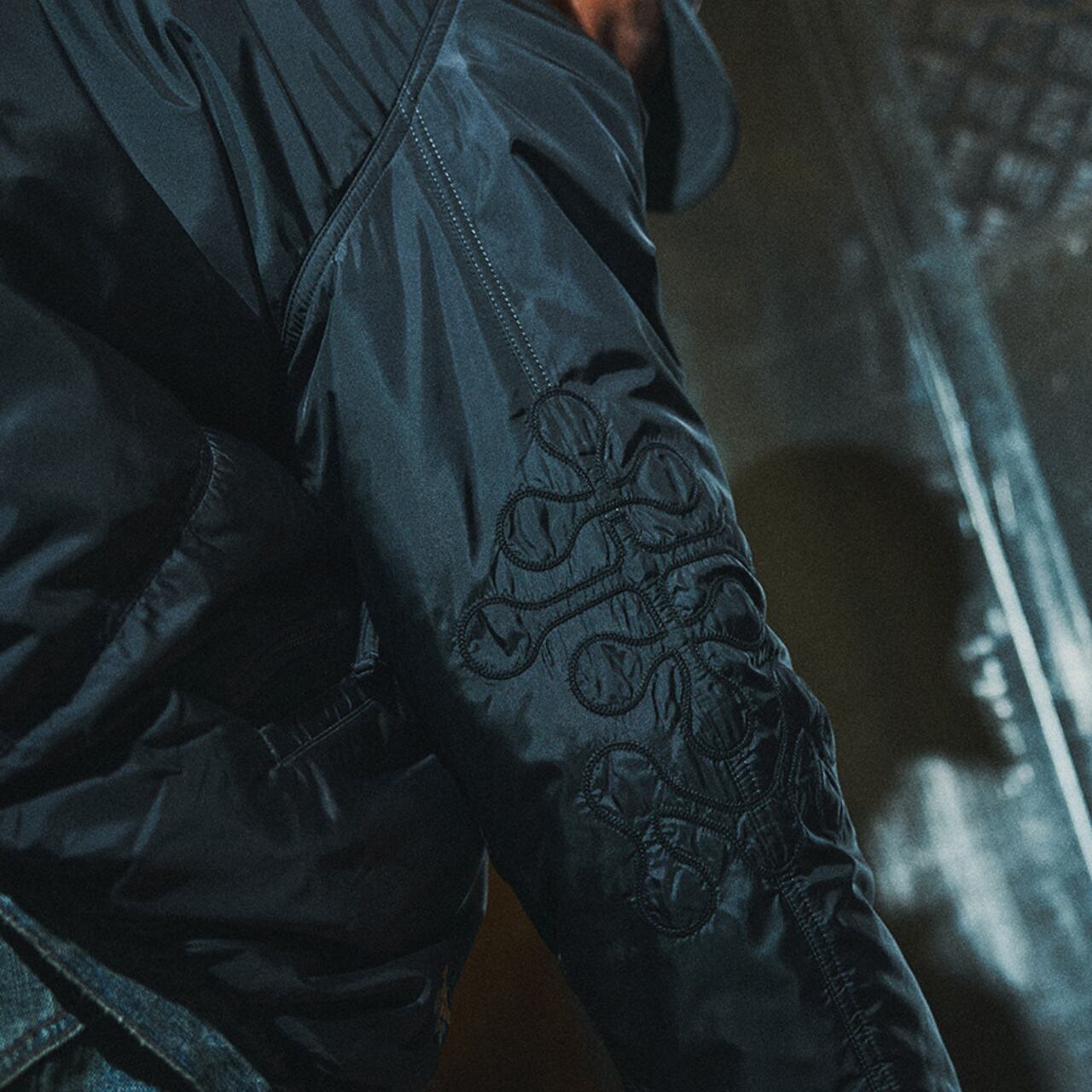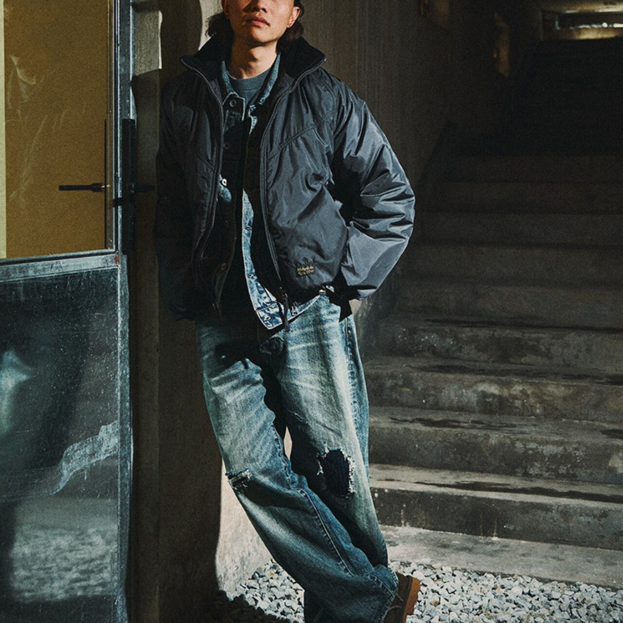 丸みのあるショート丈シルエットとワイドな身幅が特徴の、都会派ファンクショナルジャケット。立体的なスタンドカラーと中綿入りのボリューム感が、防寒性と存在感を両立します。袖部分には精密な刺繍ディテールを施し、ミリタリーやアウトドアの要素をさりげなくプラス。デニムやワークパンツはもちろん、シティスタイルにも自然に溶け込む一着です。