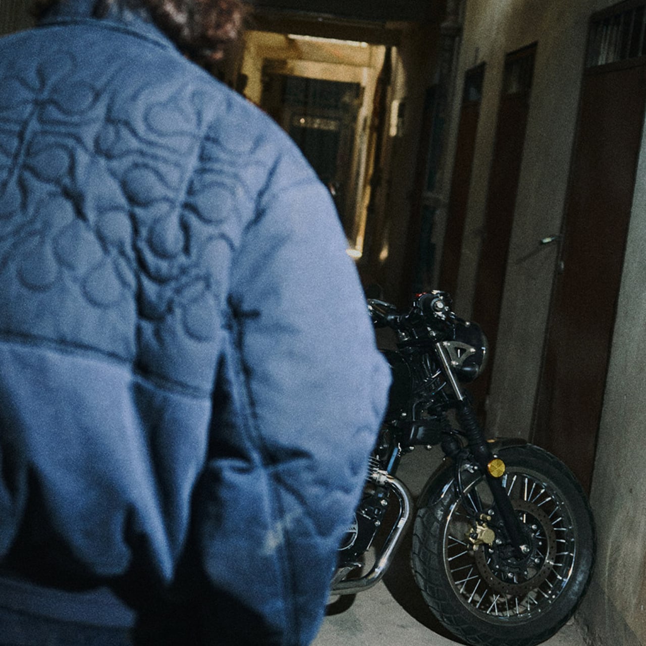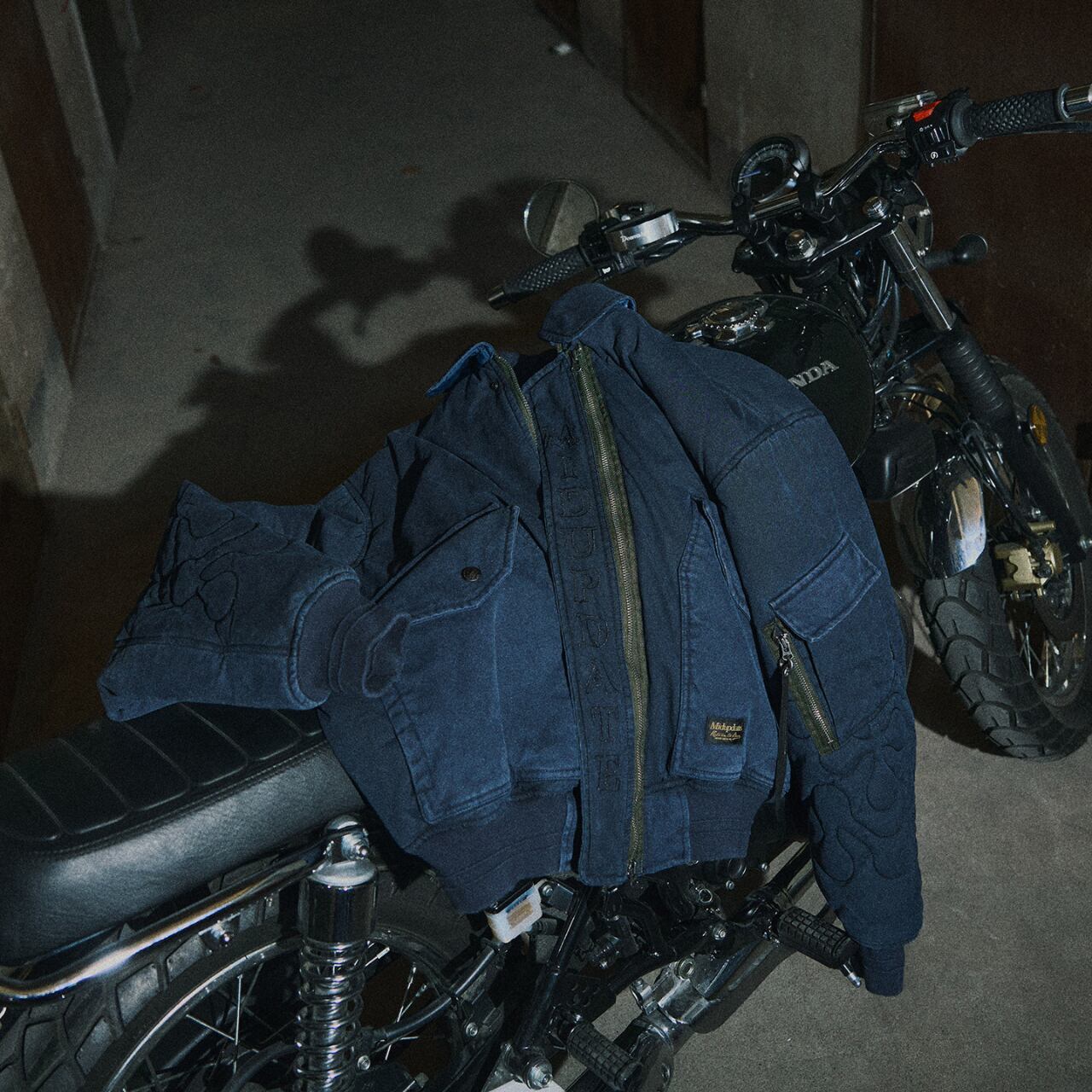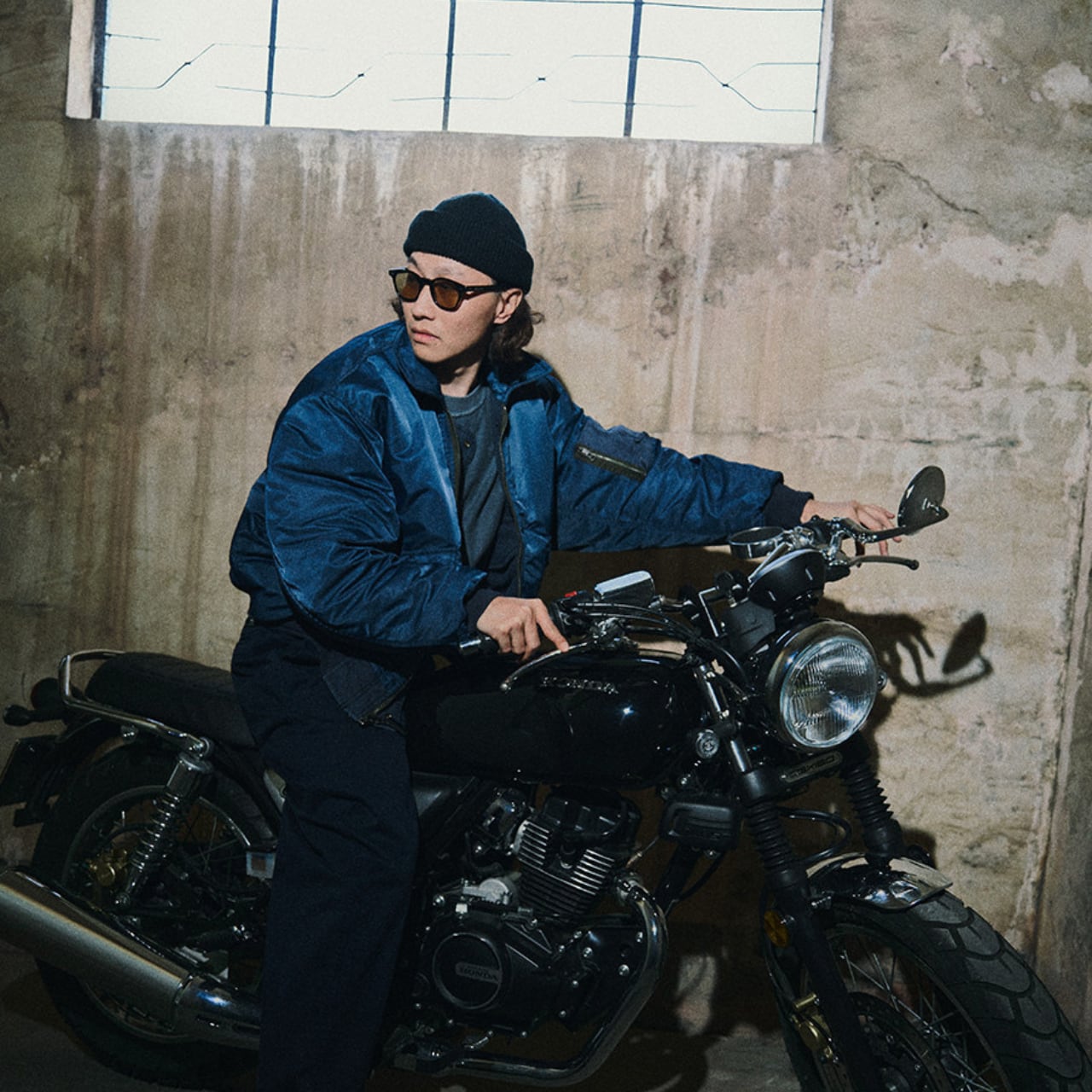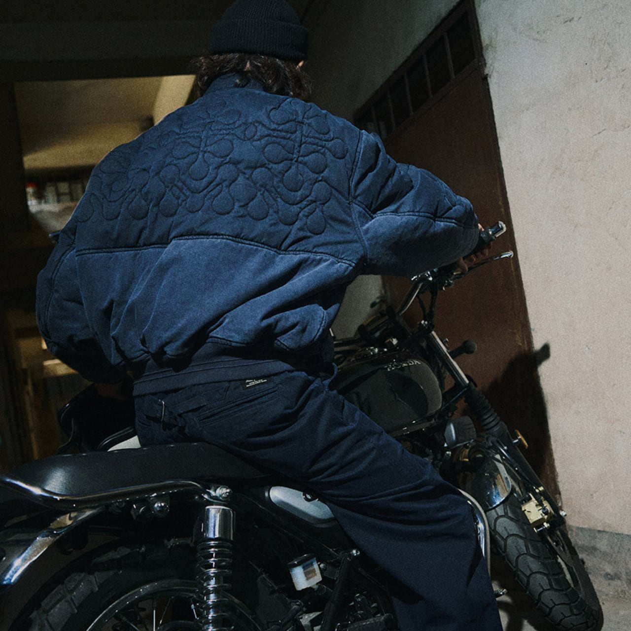 米軍CWU-45Pフライトジャケットを原型に、再解釈を加えたリバーシブル仕様の一着。A面はフェード加工を施したコットン素材に高密度刺繍を配し、無骨で奥行きのあるヴィンテージミリタリースタイルを表現。B面はナイロン素材を用いた軽快な表情で、都会的かつアウトドアにも対応する機能美を備えています。中綿には3Mシンサレートを使用し、防寒性と軽さを両立。デニムやワークパンツ、ブーツとの相性も抜群で、街からフィールドまで活躍するジャケットです。