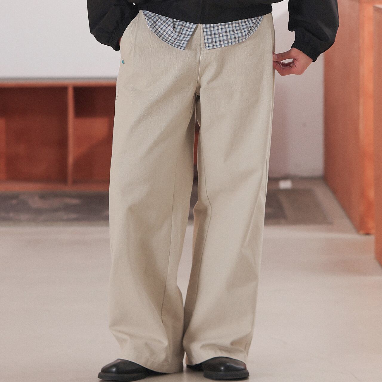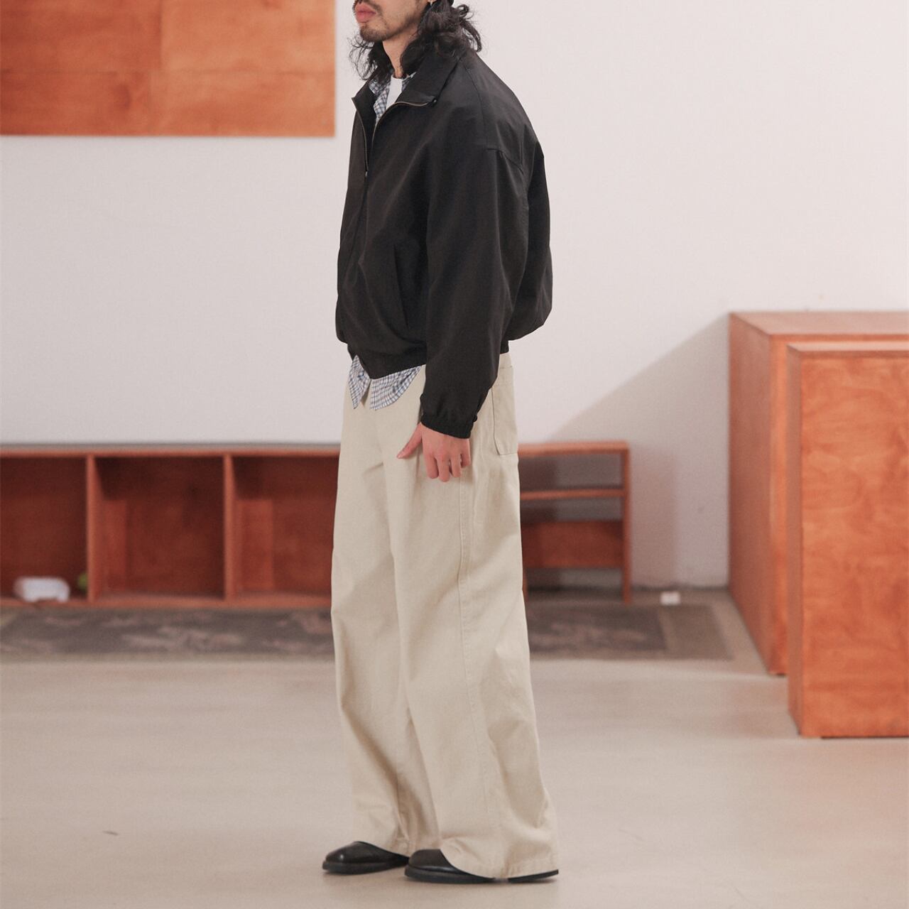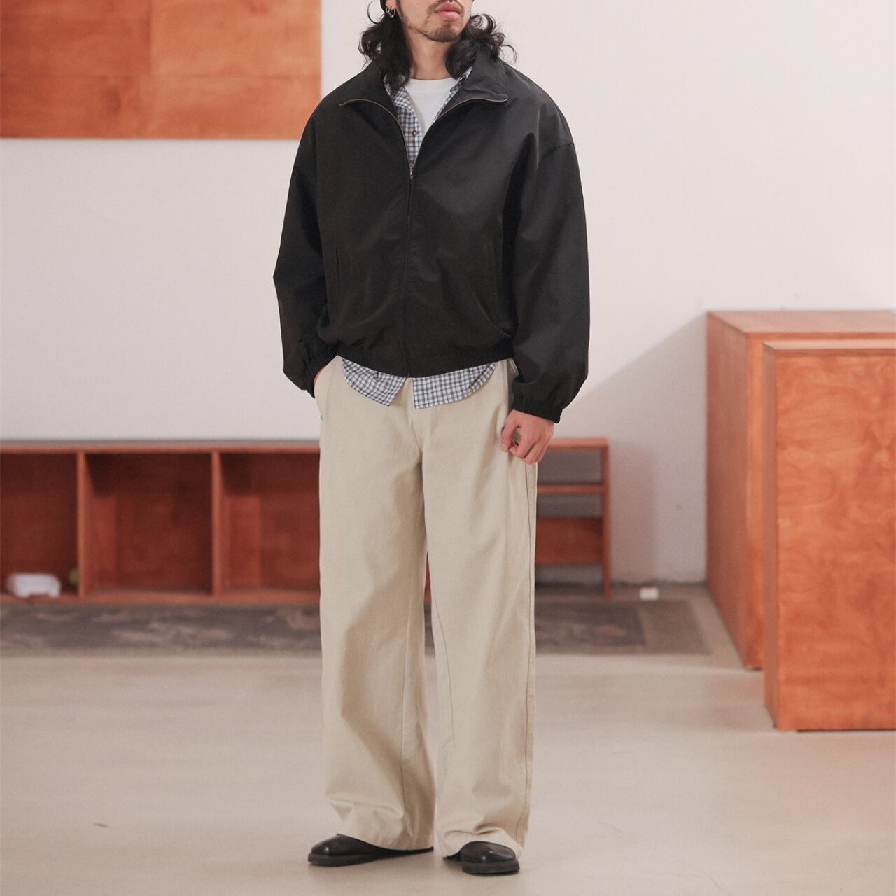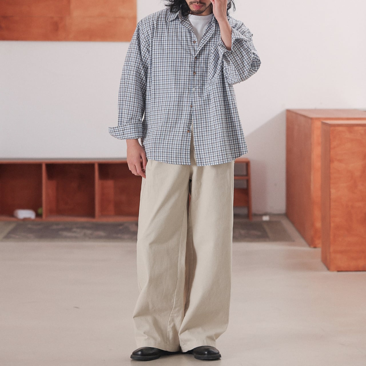 程よく力の抜けたストレートシルエットが魅力のコットンパンツ。腰まわりから裾まで自然に落ちるラインで、ワイドながらも野暮ったさのないバランスに仕上げています。柔らかなコットン100%素材を使用し、穿き心地は軽やか。チェックシャツやスウェット、ブルゾンなど、合わせるトップスを選ばず、日常のスタイリングにすっと馴染みます。シンプルだからこそ長く使える、ベーシックボトムです。