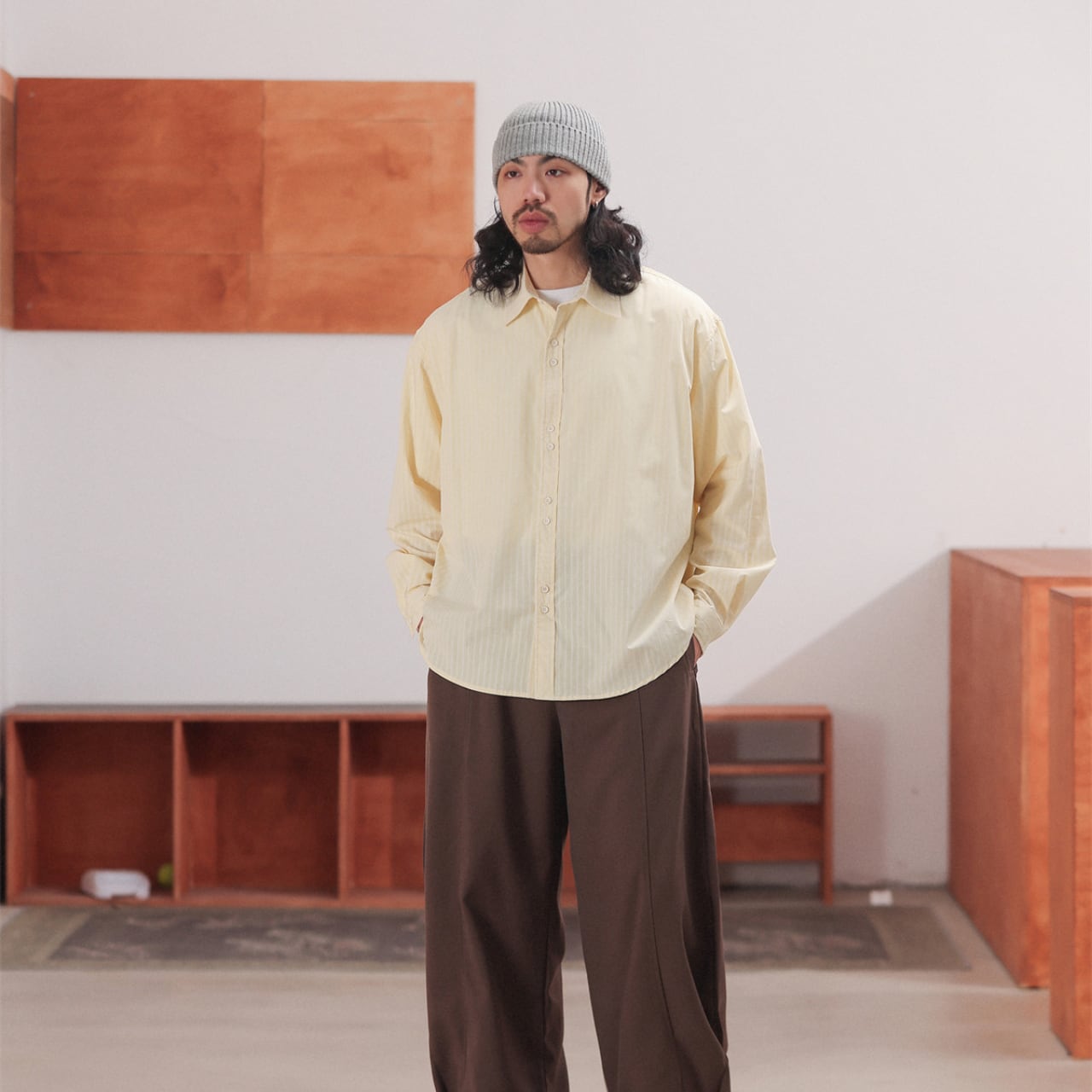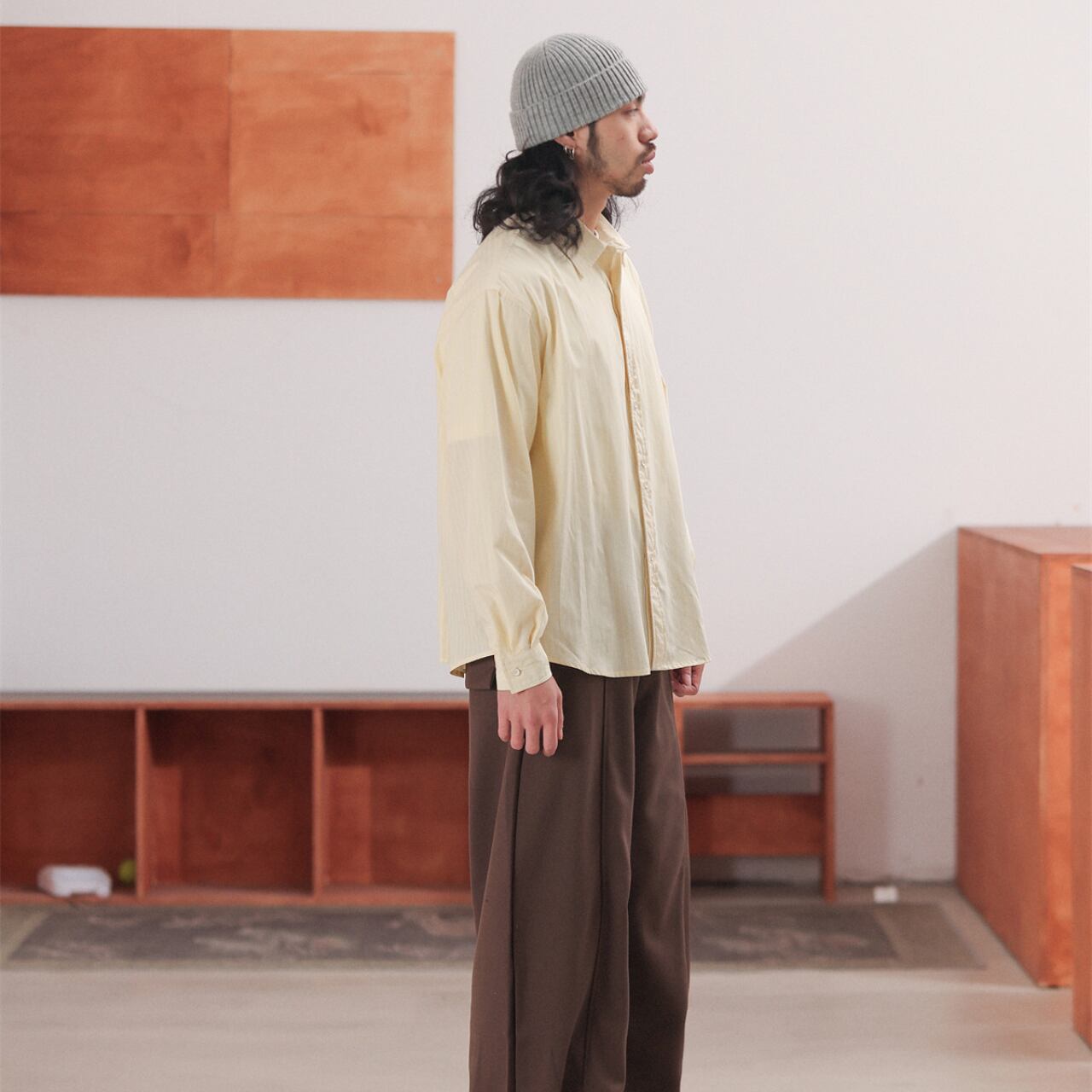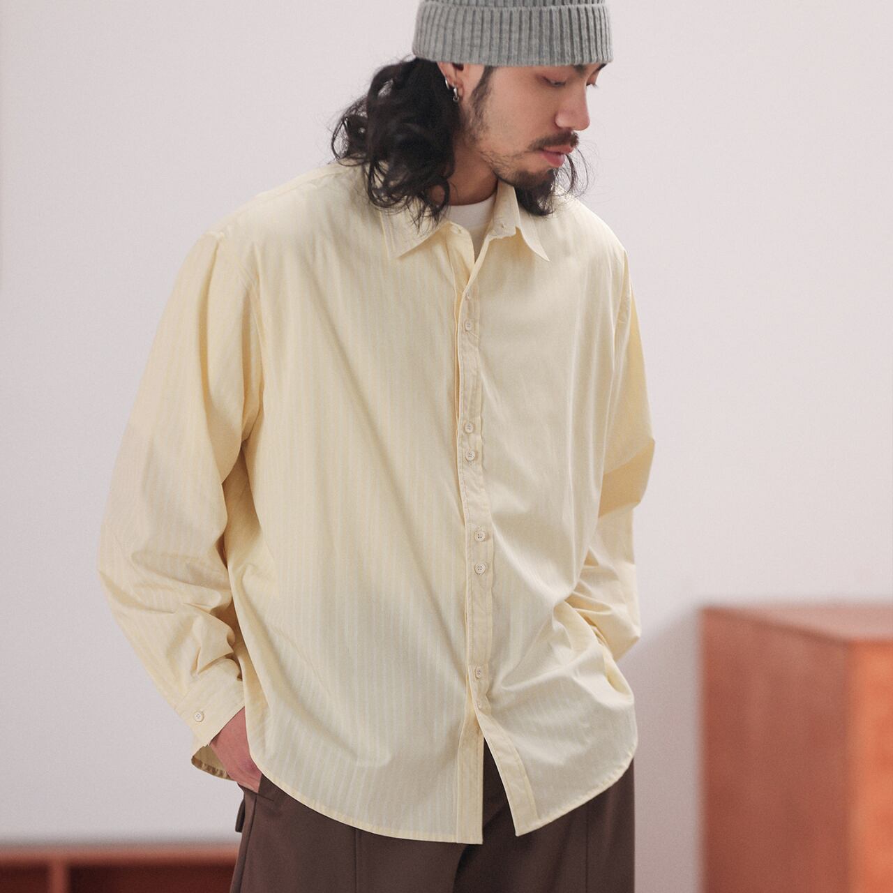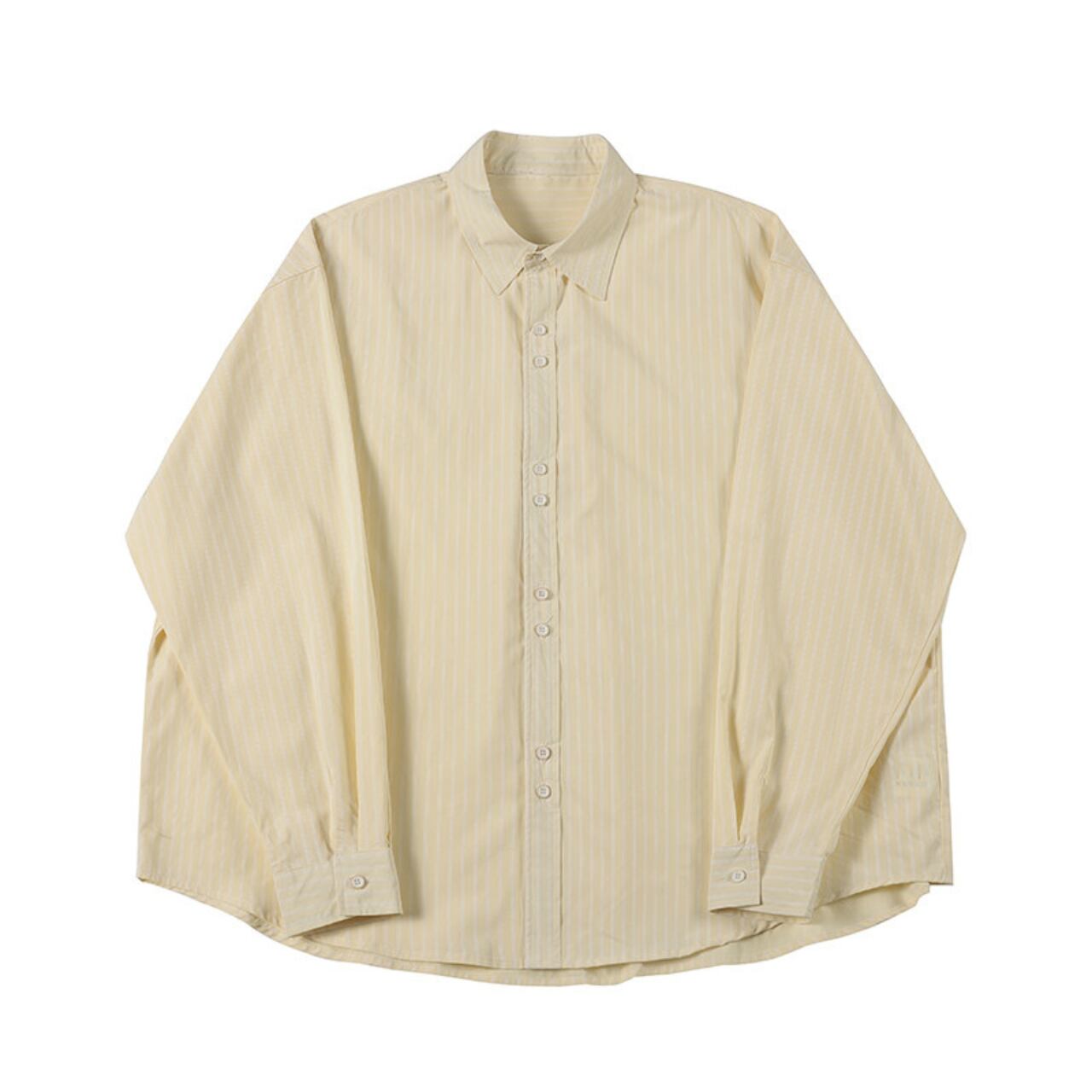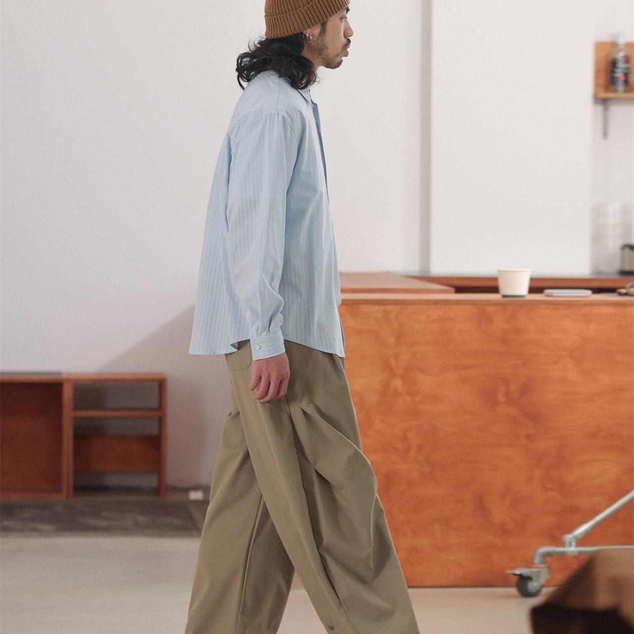 空気を含んだような軽やかな素材感が魅力のストライプシャツ。コットンとリヨセルをブレンドした生地は、なめらかな肌触りと自然な落ち感が特徴です。身幅にゆとりを持たせたルーズフィットで、一枚で着ても雰囲気が出る仕上がり。淡いカラーと繊細なストライプ柄が、スタイリングに柔らかさをプラスし、ワイドパンツやスラックスと合わせたリラックススタイルにおすすめです。