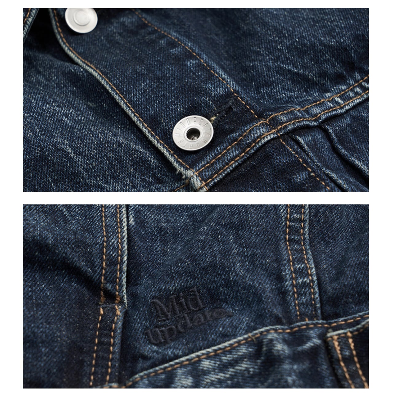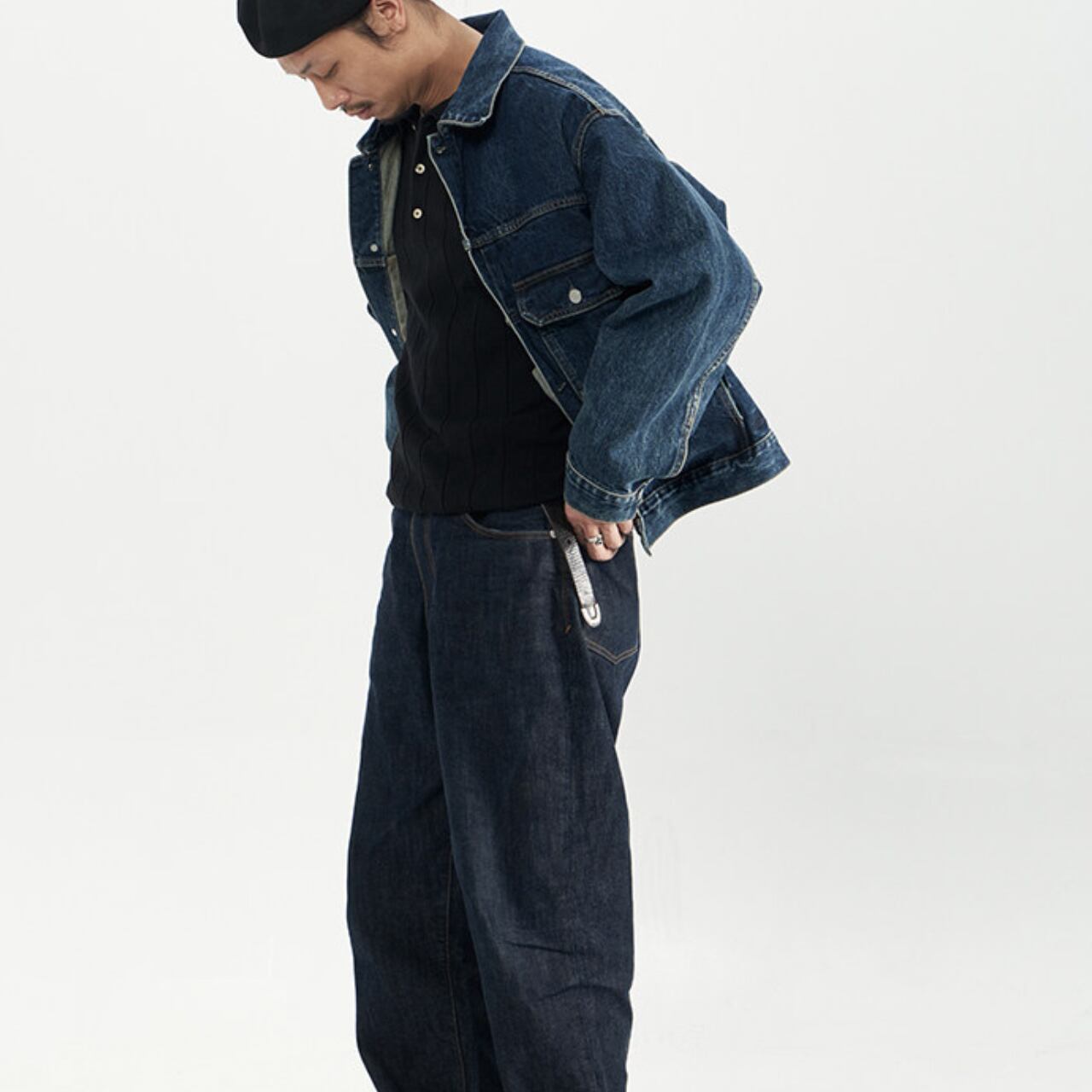 ヴィンテージデニムを思わせる色落ちとアタリ加工が、最初から“着込んだ表情”を演出します。