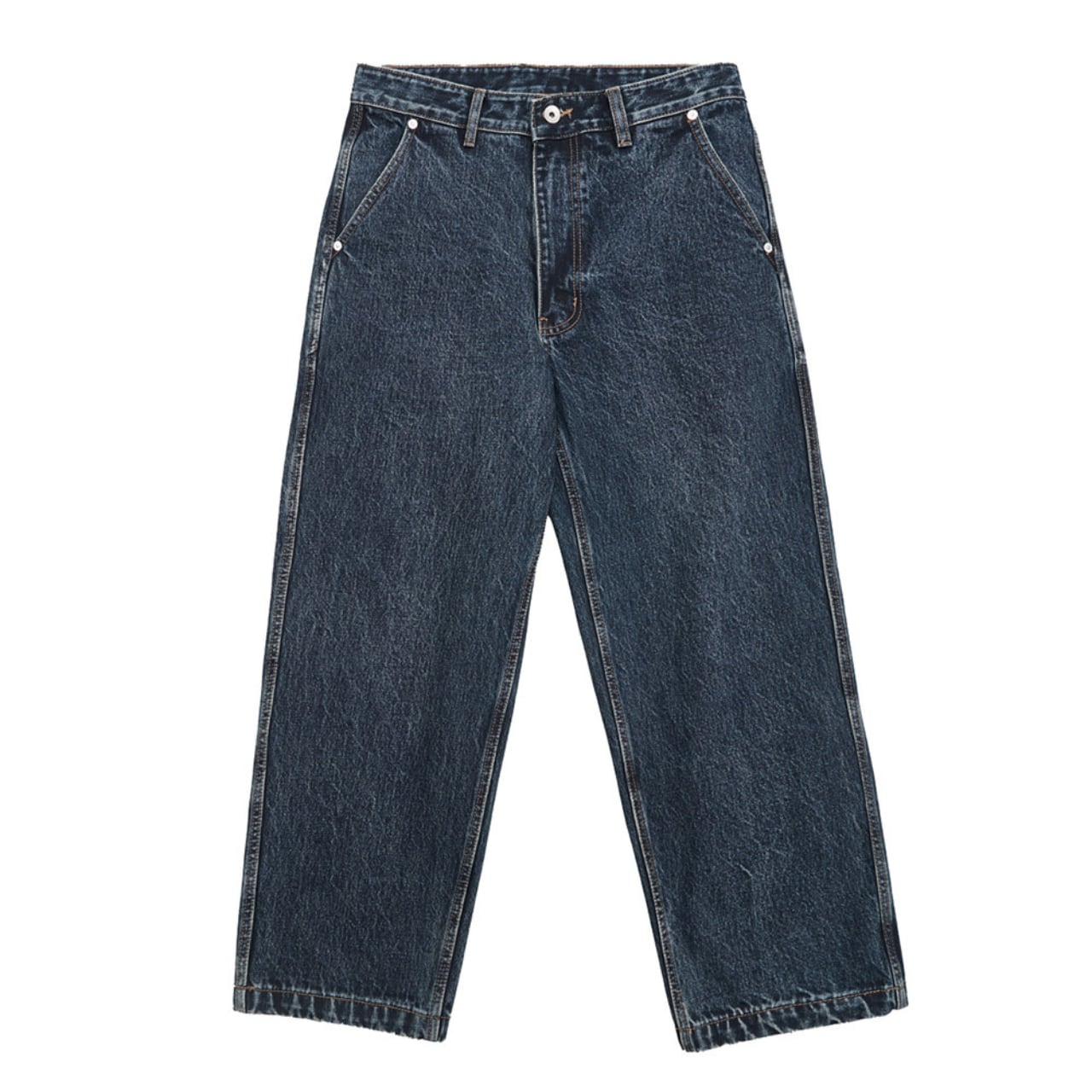 クラシックなワークウェアの雰囲気を残しながら、現代のストリートにフィットするワイドストレートシルエット。15.2ozの肉厚コットンデニムを使用し、製品洗い&手作業による色落ち加工でリアルなヴィンテージ感を演出。バックポケットに施された刺繍ロゴや“M”型ベルトループなど、細部に遊び心とこだわりが詰まった一本。デニムジャケットとのセットアップもおすすめです。ユーズド感と現代的シルエットをミックスした、「新定番」デニム。