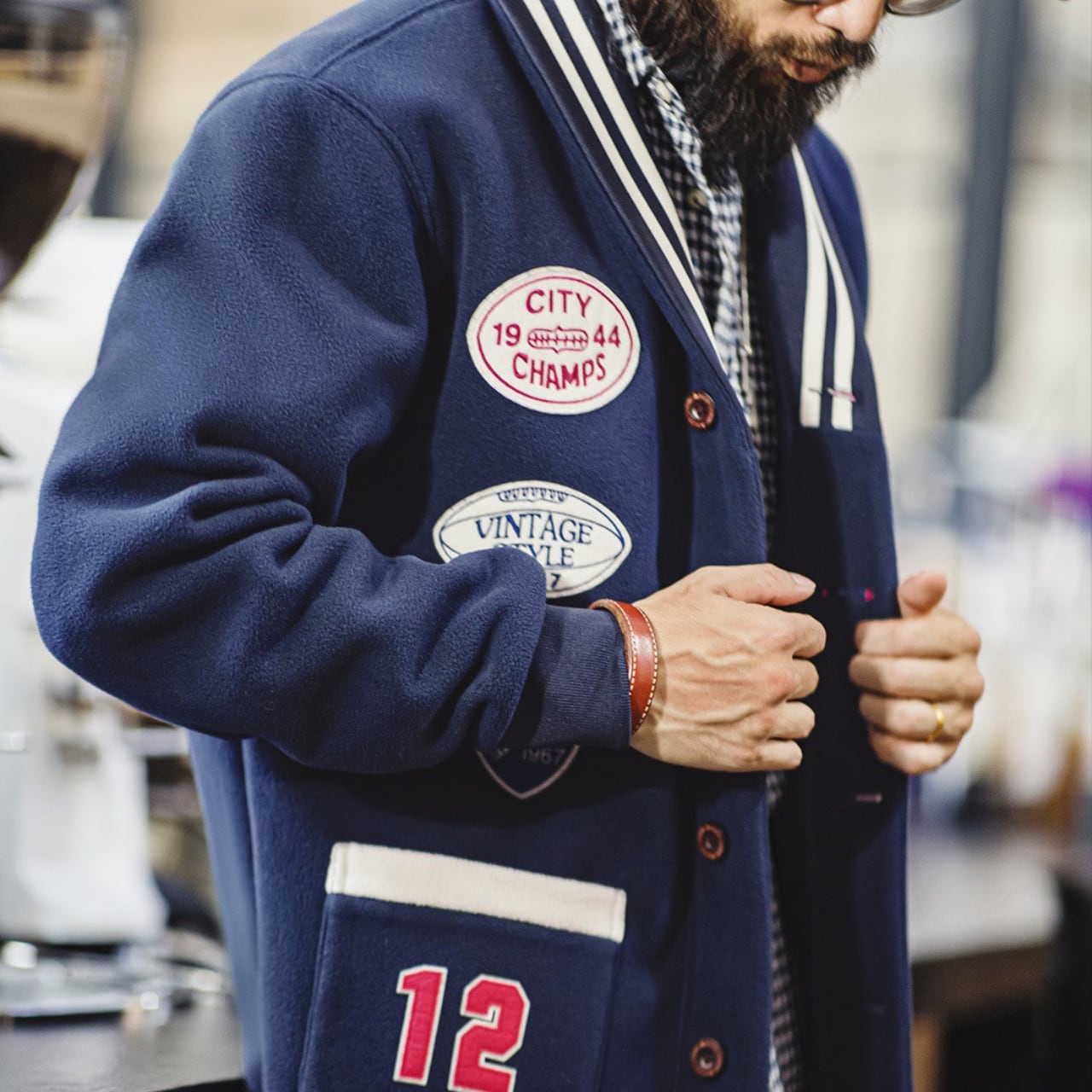 クラシックなアメリカン・ベースボールジャケットを、再構築した一着。存在感のあるワッペン配置とナンバリングが、着こなしの主役になるデザインです。