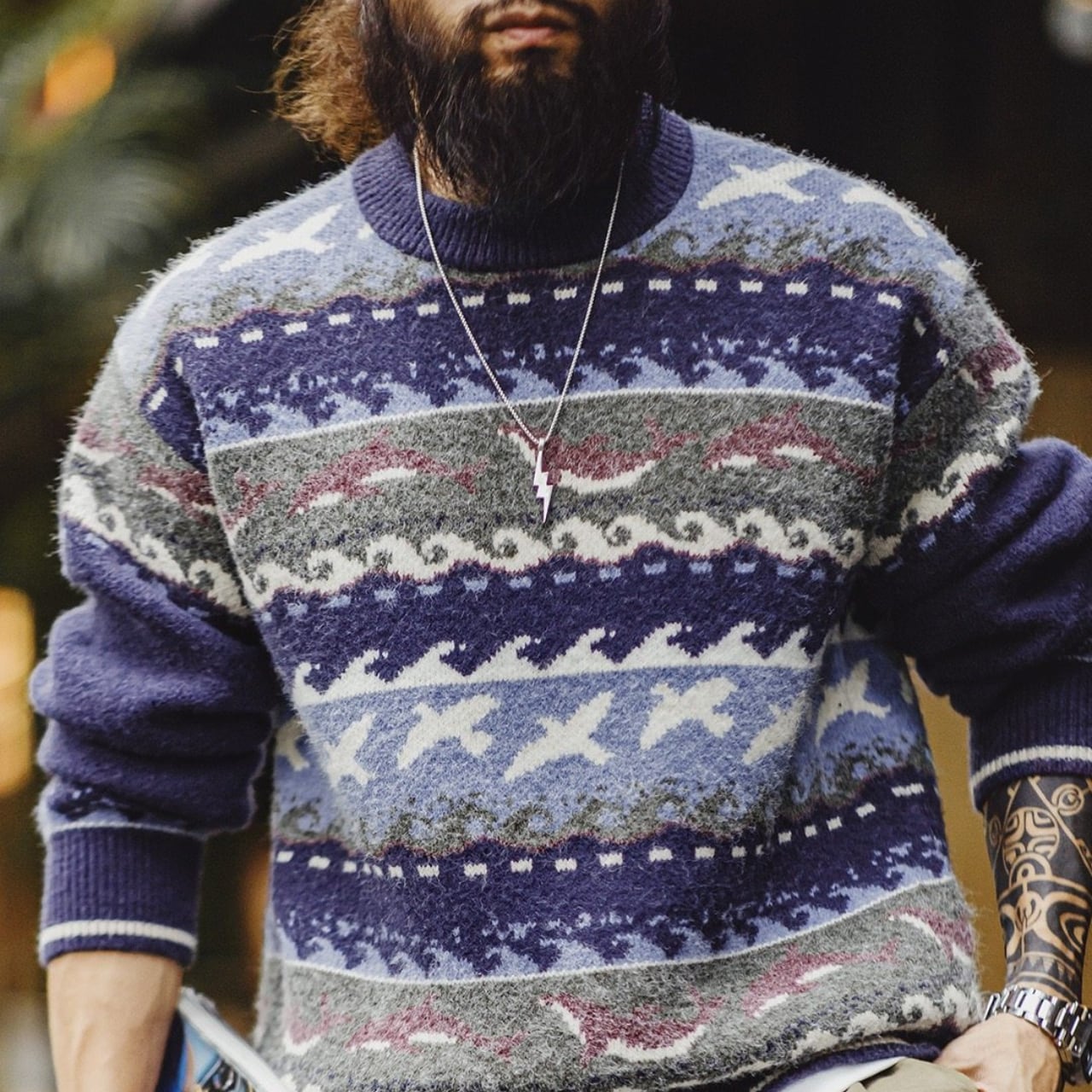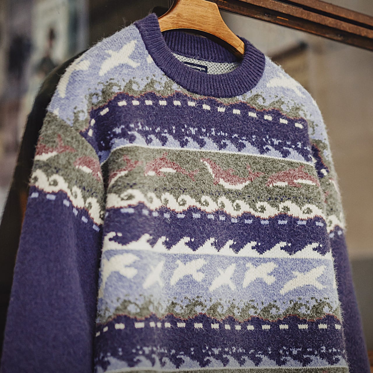 大西洋の海と航海の物語から着想を得た、フェアアイル柄ニットセーター。