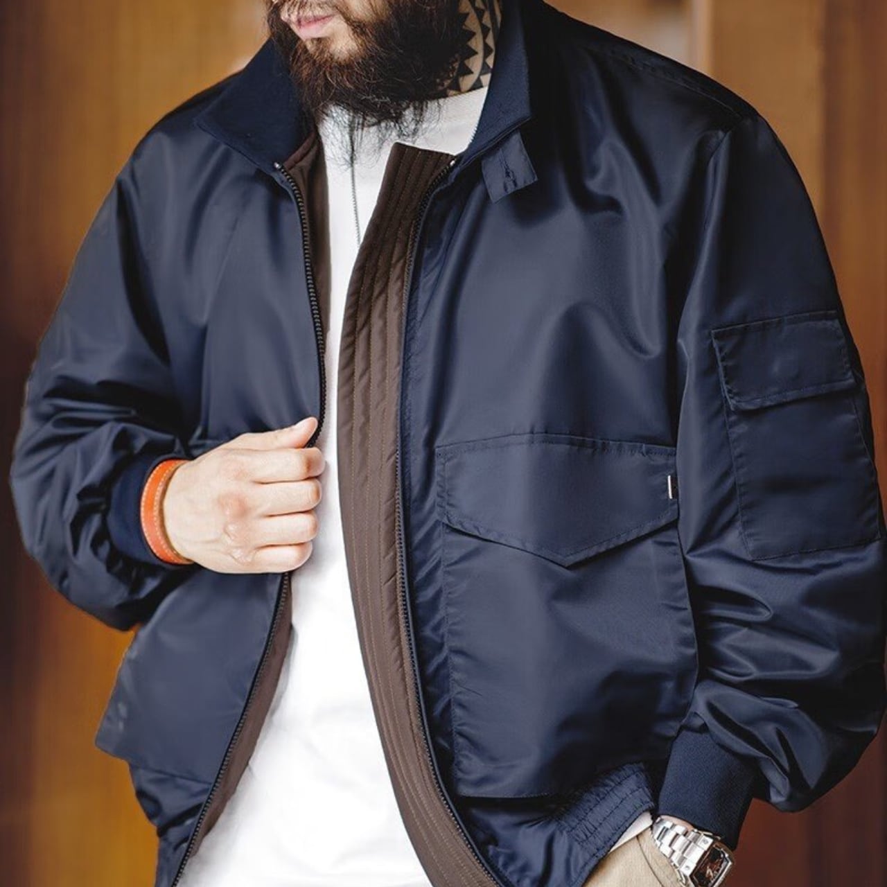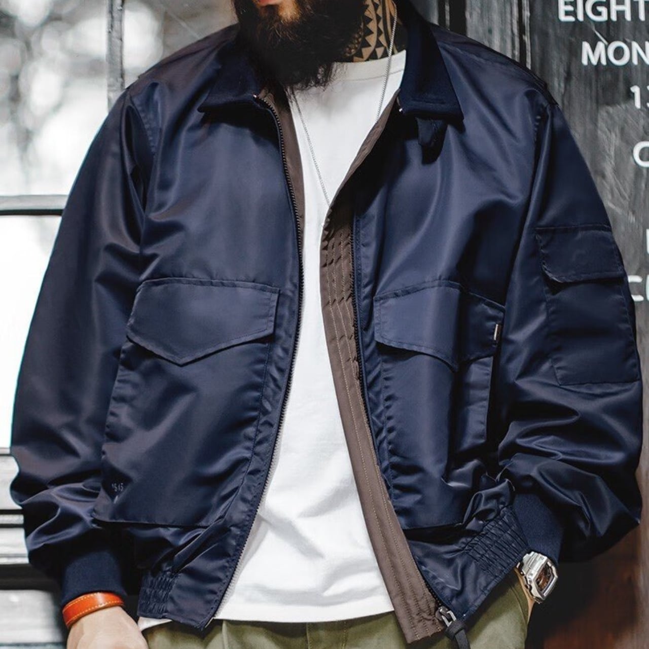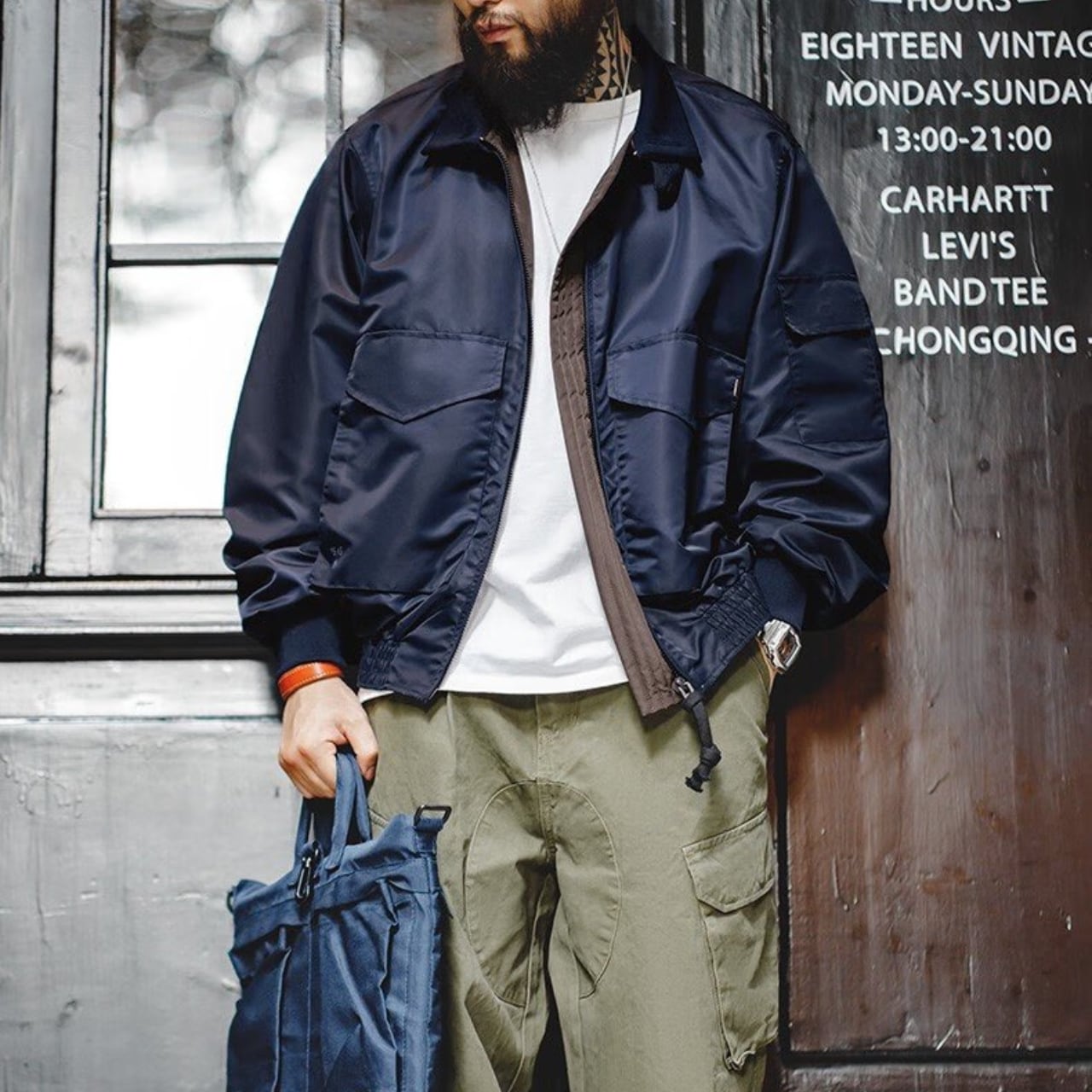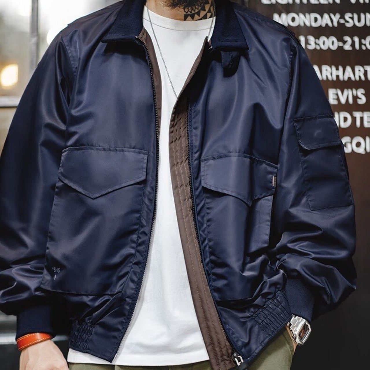 90年代のフライトジャケットをベースに、現代的なシルエットと素材感で再構築した一着。