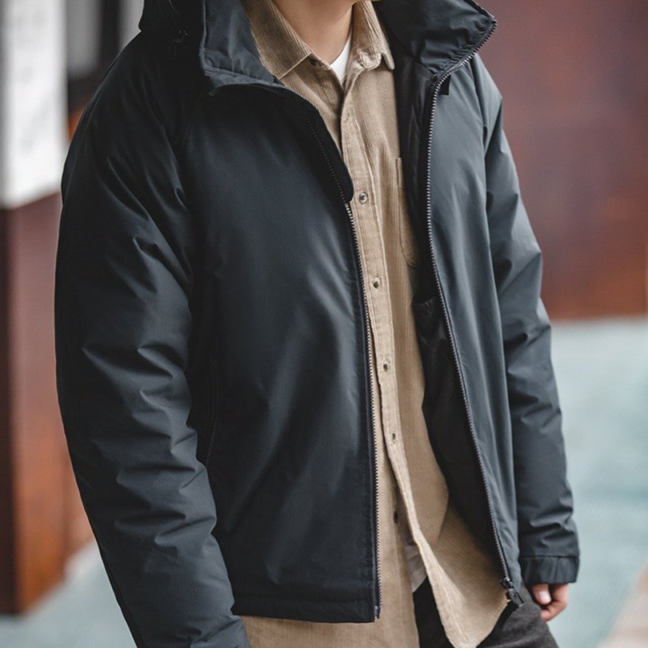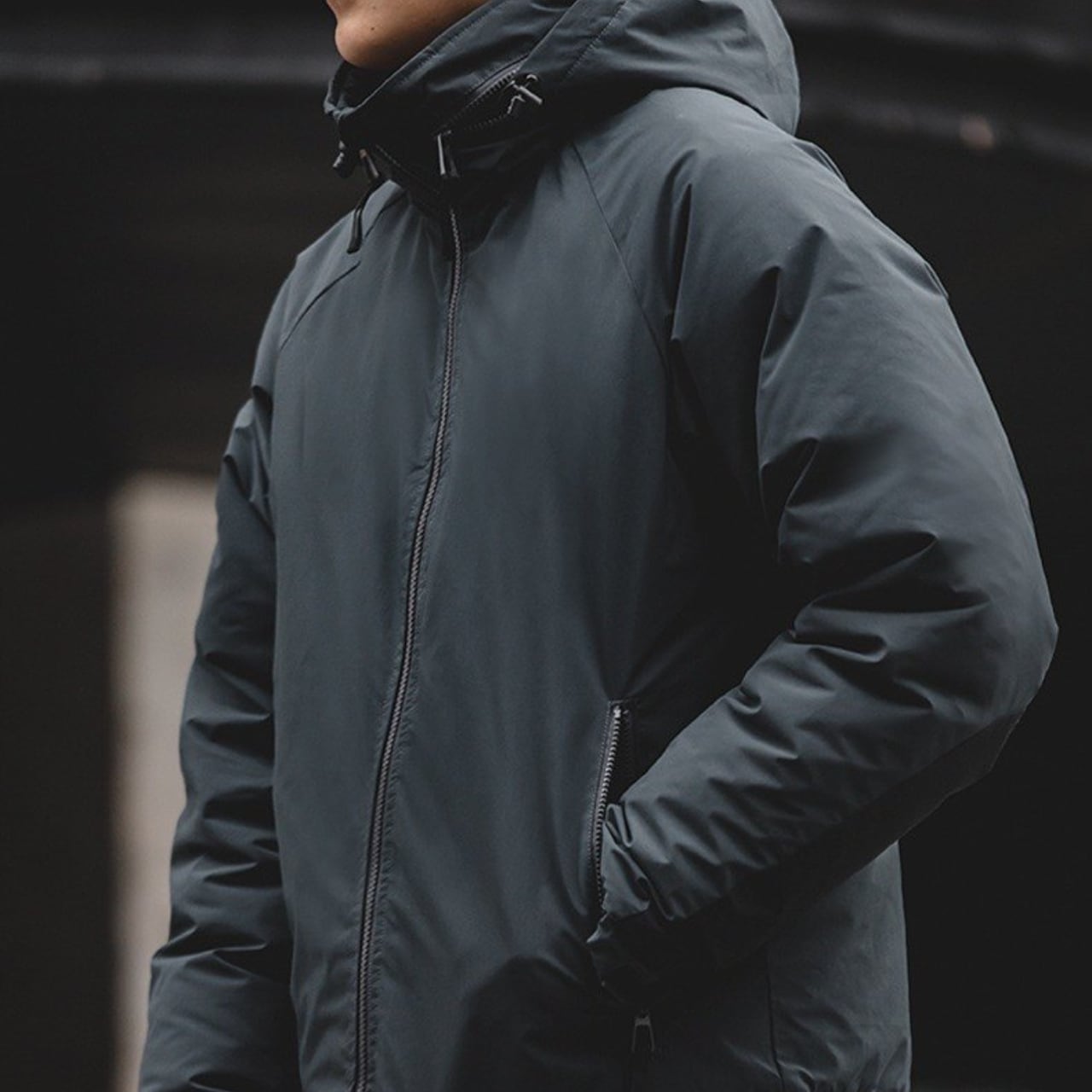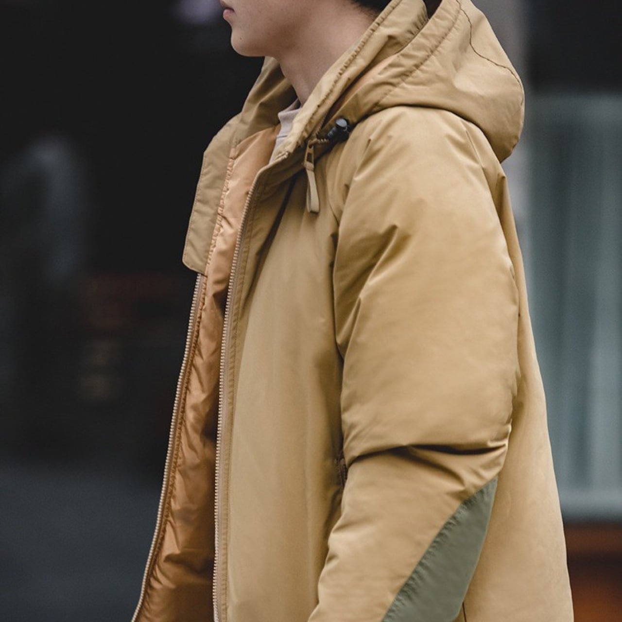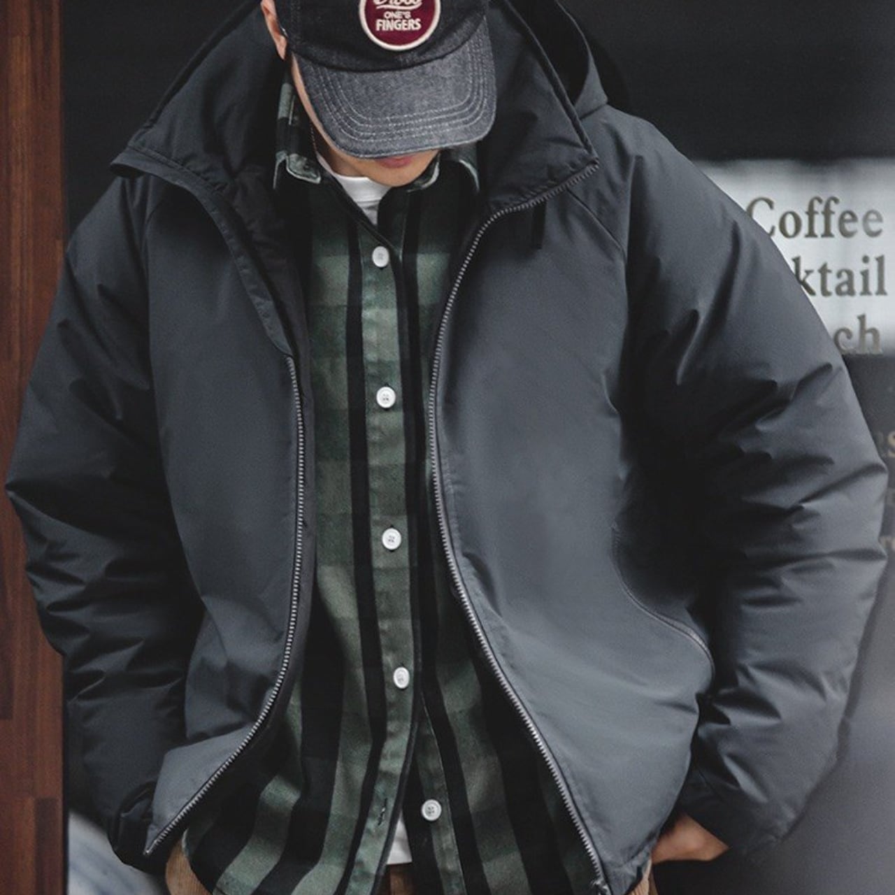 米軍のレイヤリングシステム「ECWCS(Extended Cold Weather Clothing System)」をベースにデザインされた軽量ダウンジャケット。表地には程よい光沢を持つ高密度ナイロンを使用し、内側には80%ホワイトダックダウンを充填。5層構造による優れた防風性と保温性を実現しています。シンプルで都会的なシルエットながら、フードやドローコード、止風フラップなど機能性ディテールも充実。アウトドアライクなデザインで、デニムやチノ、スウェットパンツとの相性も抜群。デイリーにも週末の外出にもぴったりの一着です。