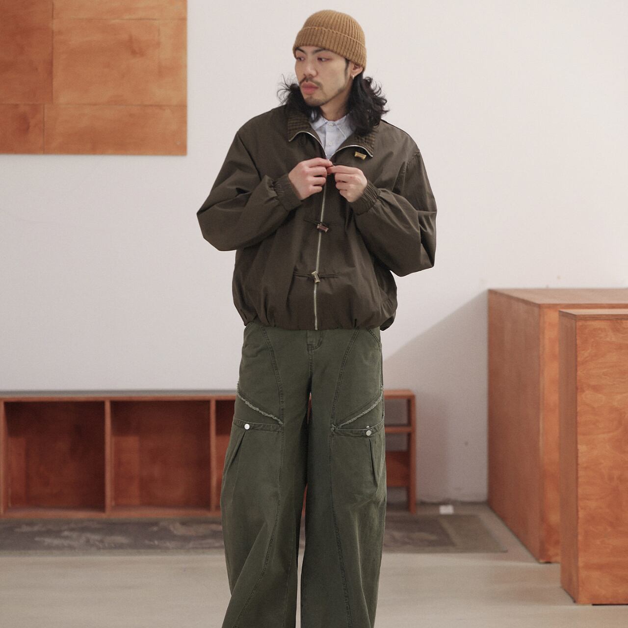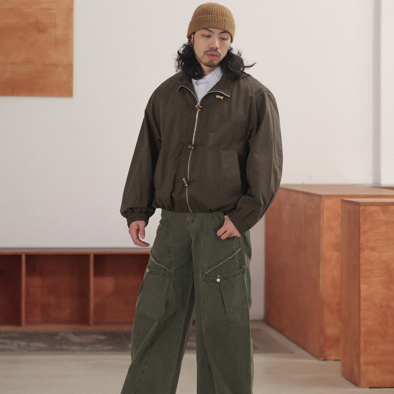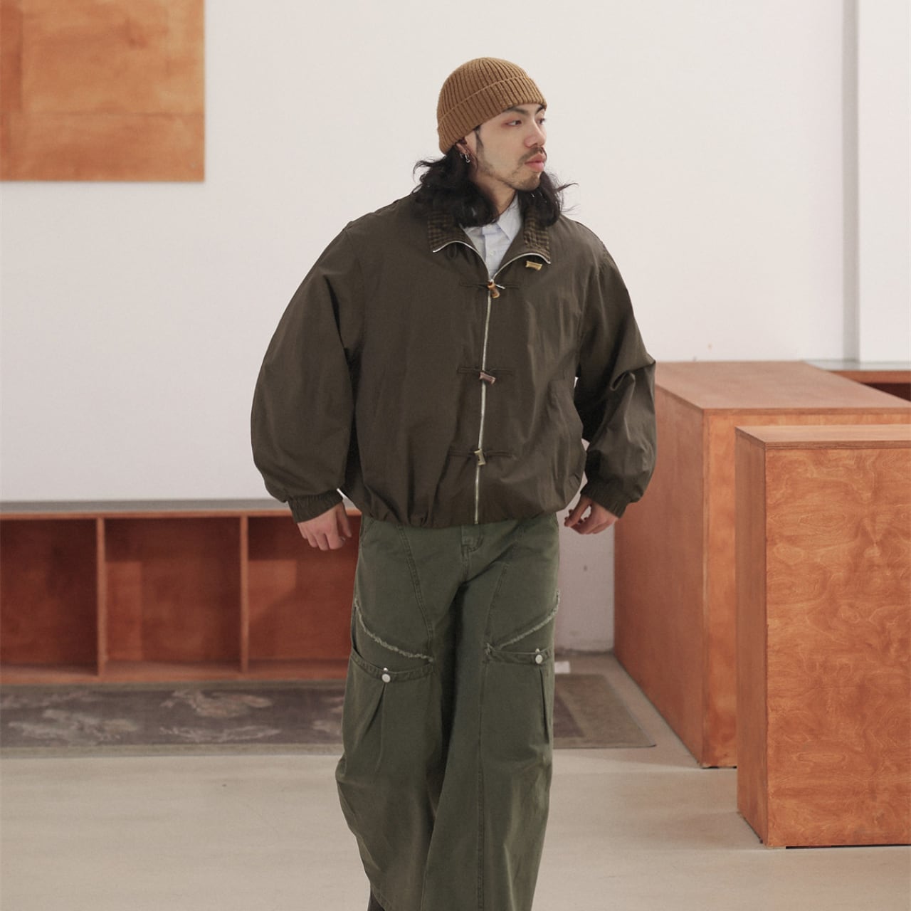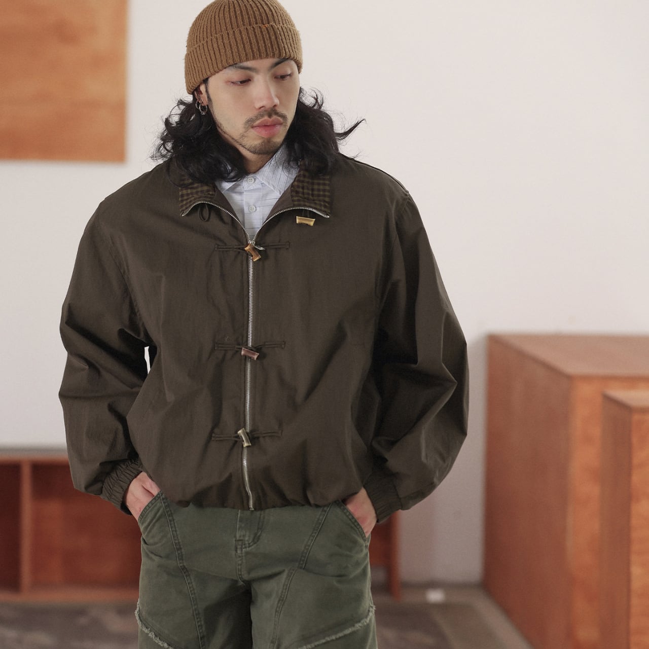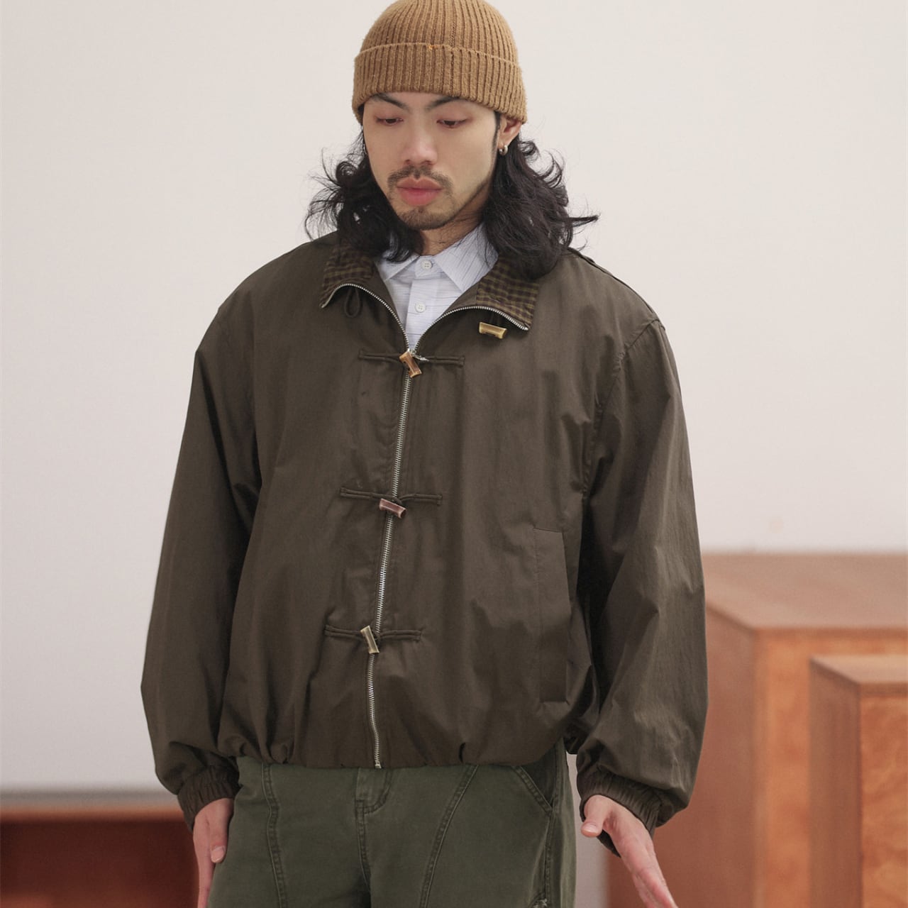 #トグルジャケット #ナイロンブルゾン #クラシックミリタリー #チェック襟 #ゆったりアウター #cityboyootd #gate #minimalvintage