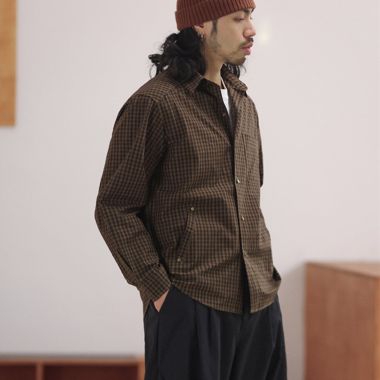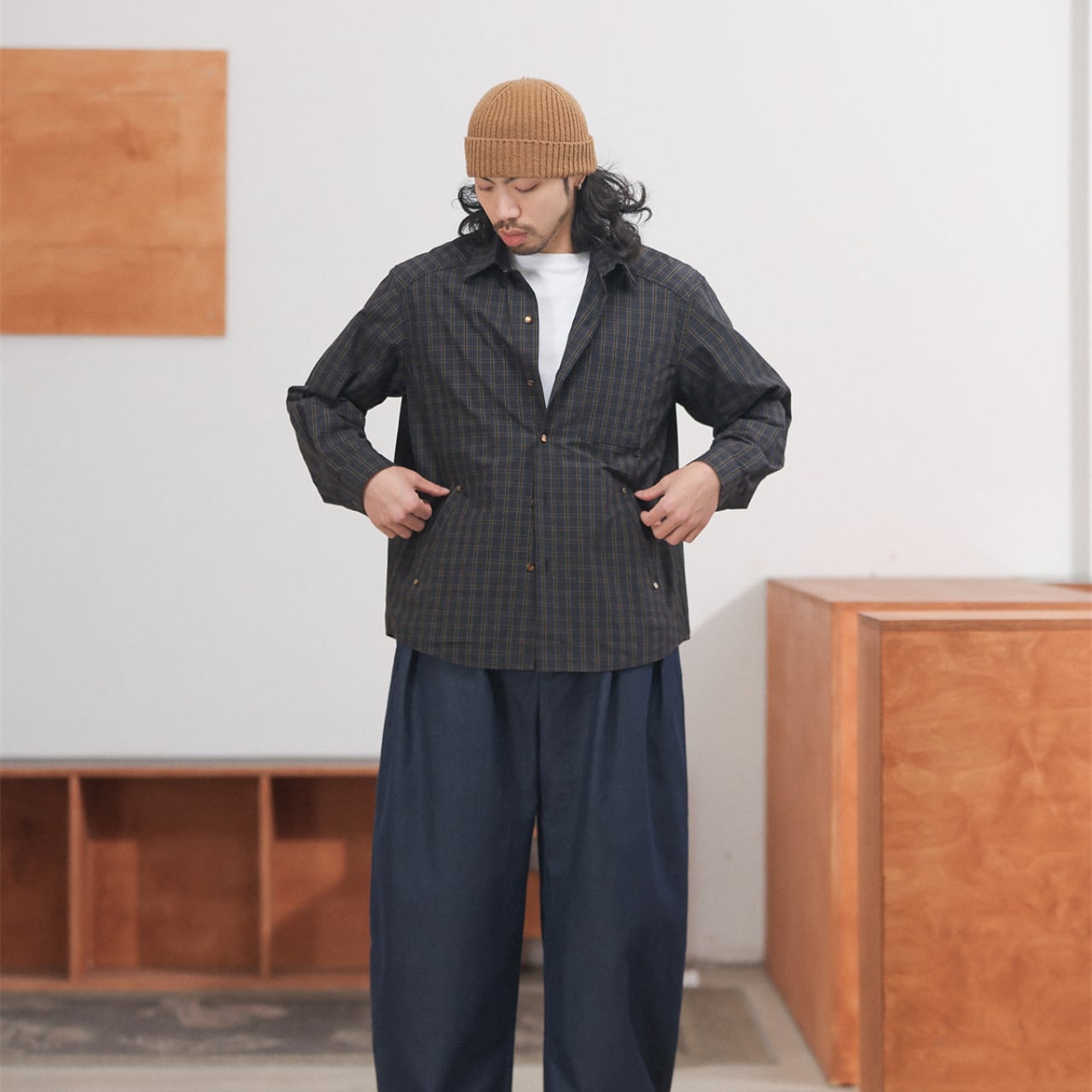 #チェックシャツ #スナップボタン #cityboystyle #minimalutility #ワークディテール #ライトアウター #春アウター #レイヤード上手 #gate
