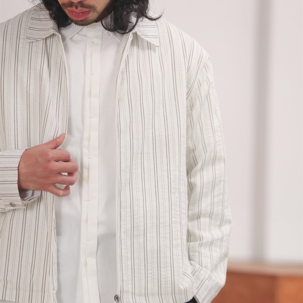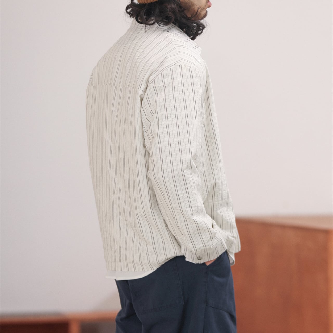 生成りベースに繊細なストライプをあしらったコットン100%のシャツ。