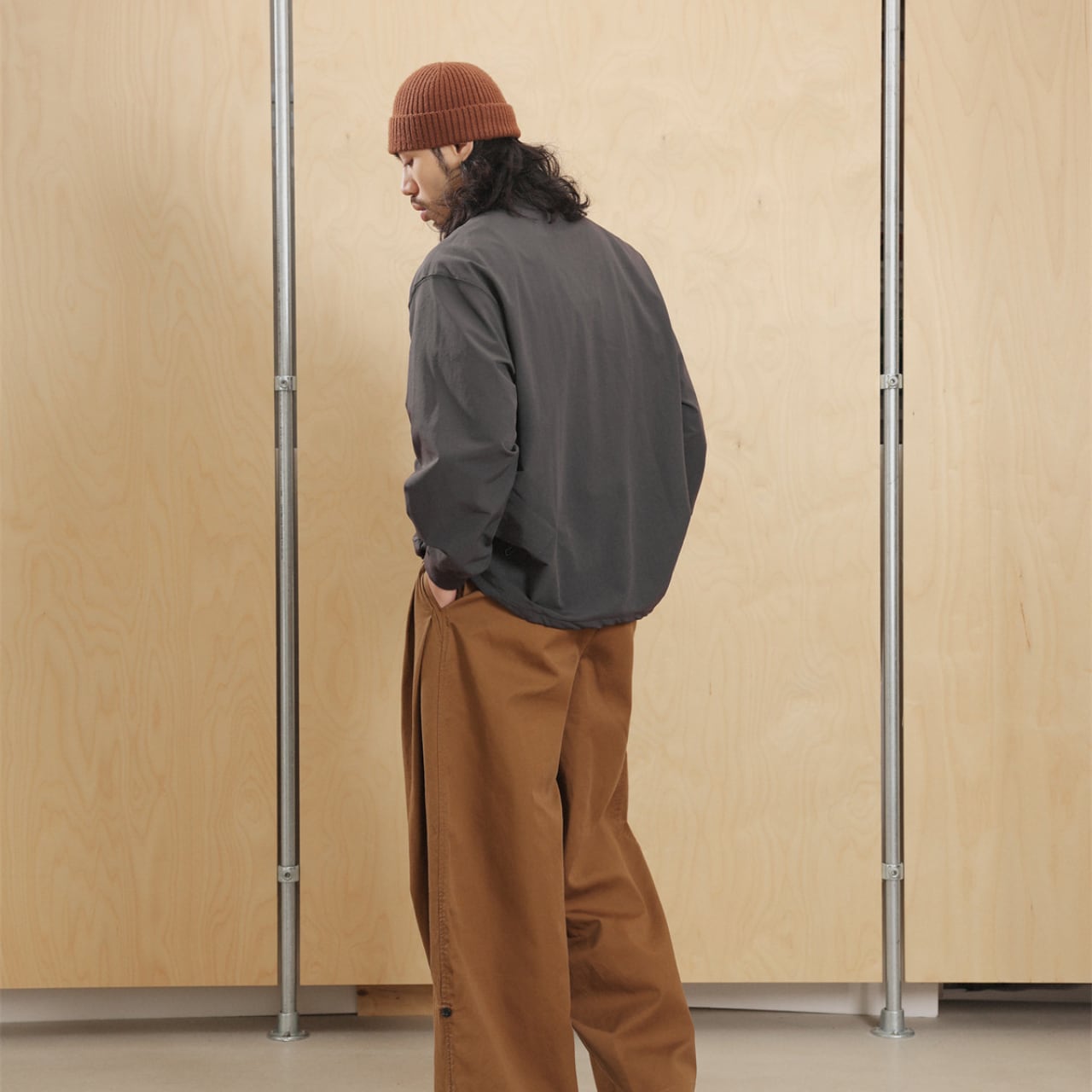 立体感ある胸ポケットと、斜めに入ったカッティングラインがアクセントに。裾にはドローコードを内蔵しており、シルエット調整も自在。