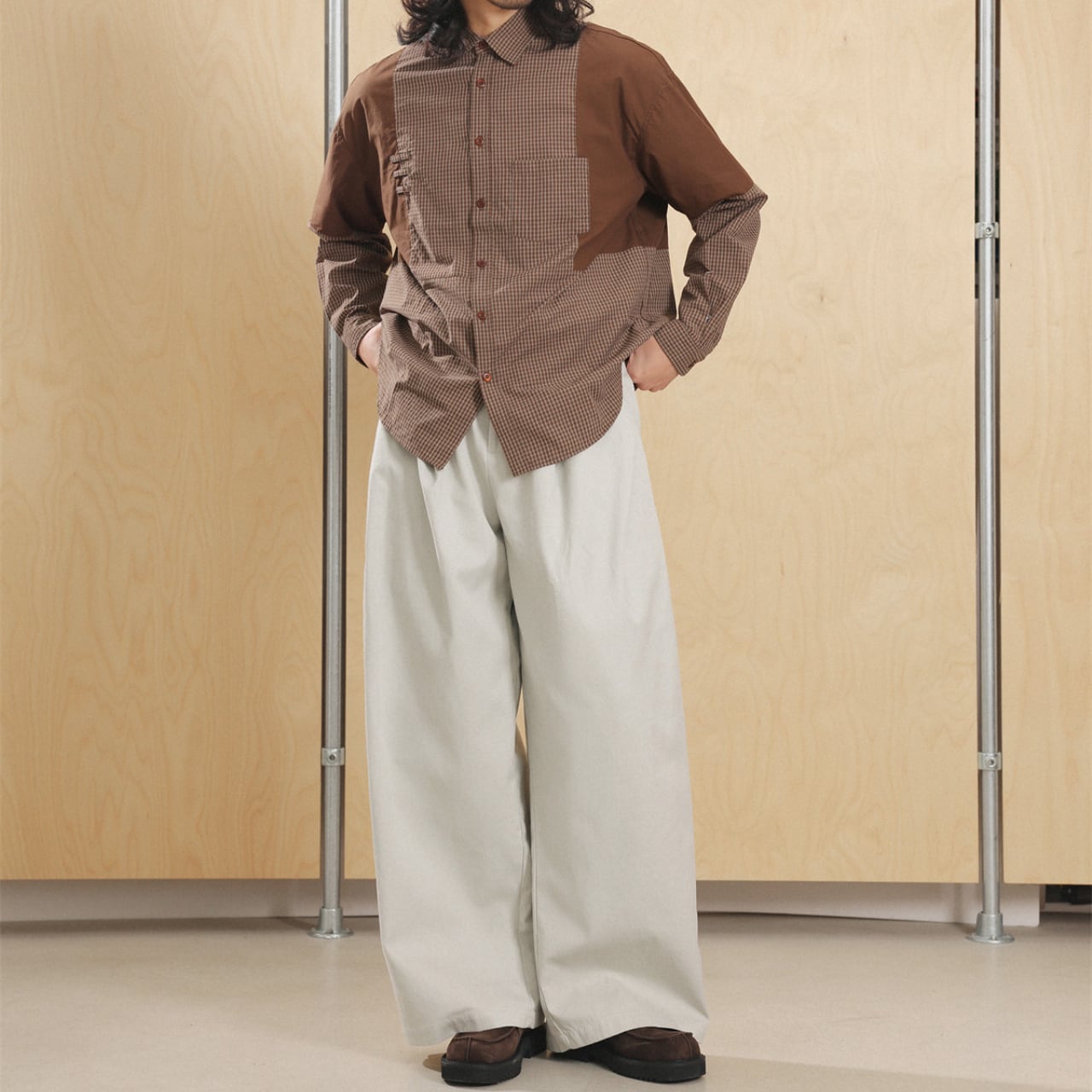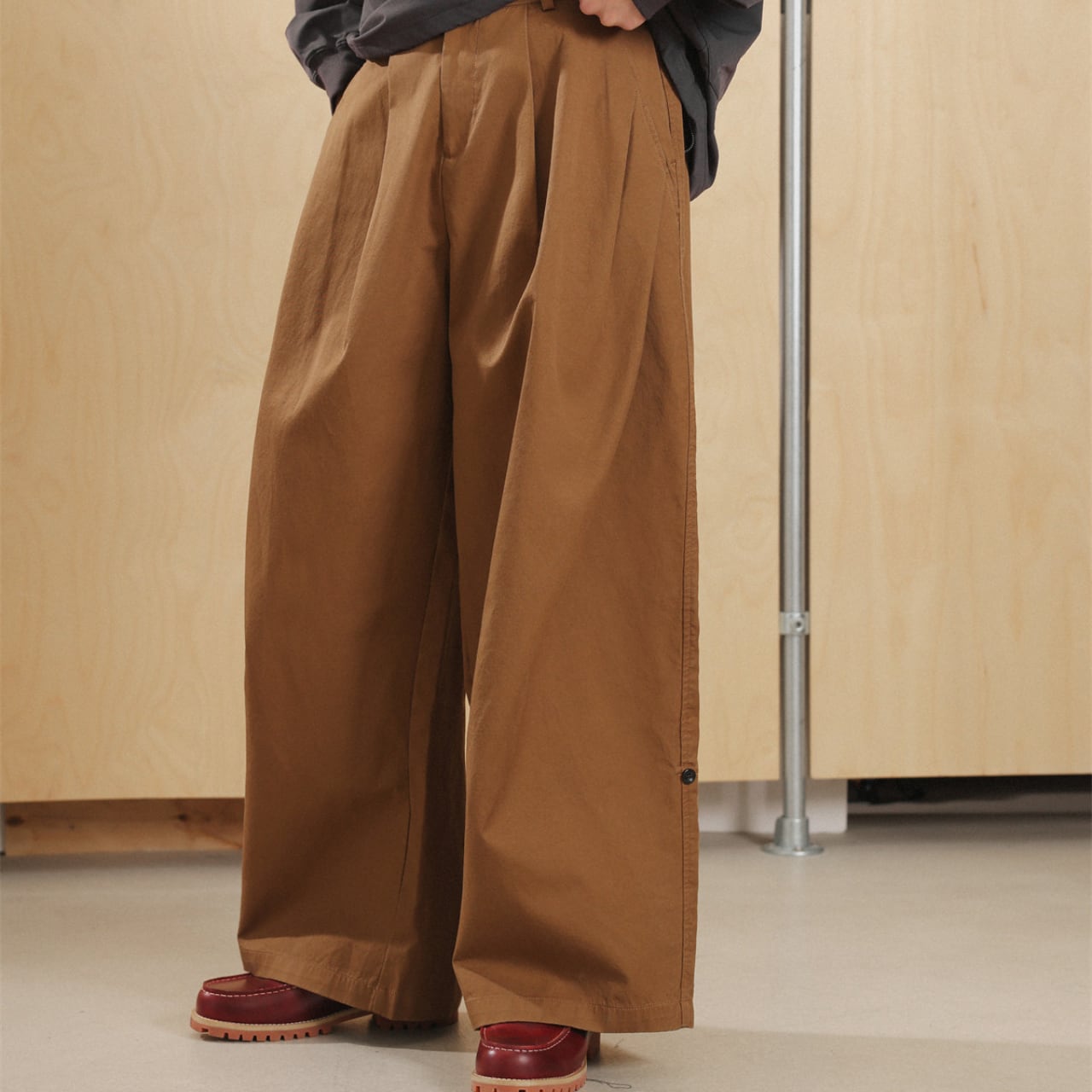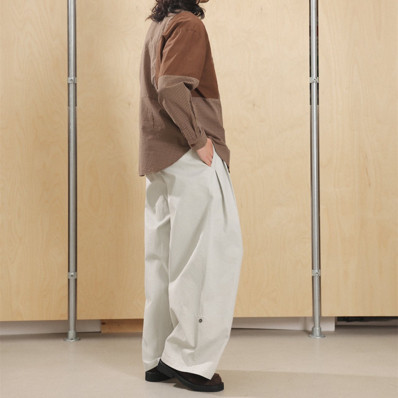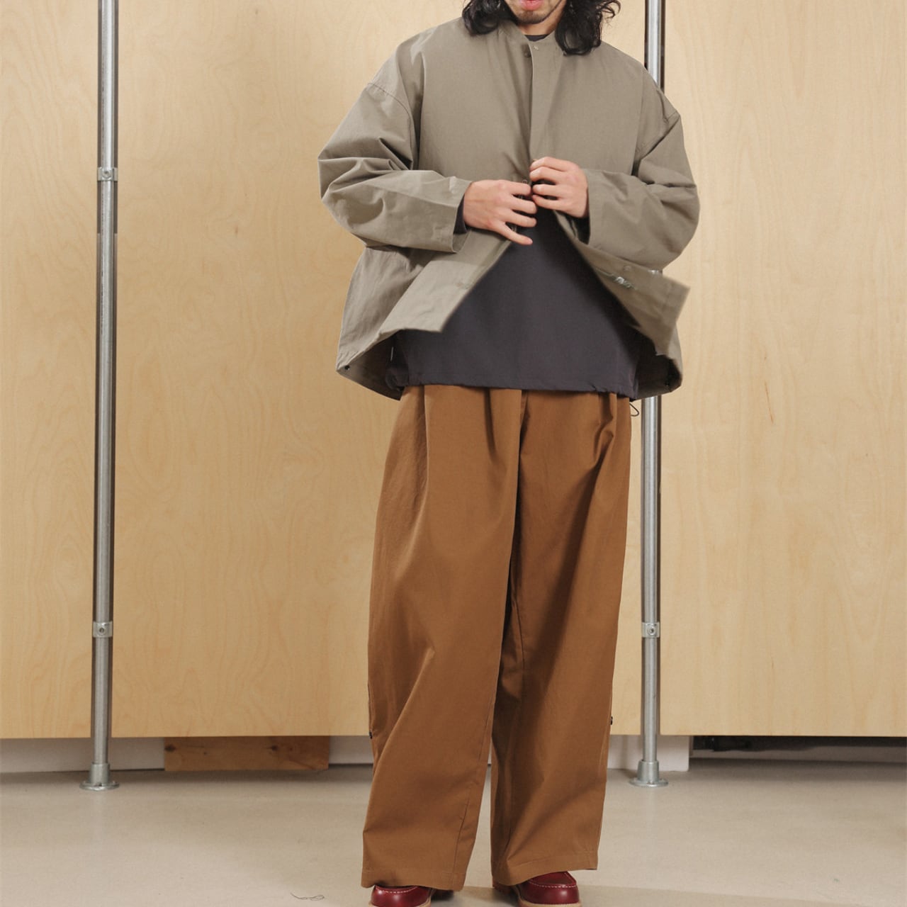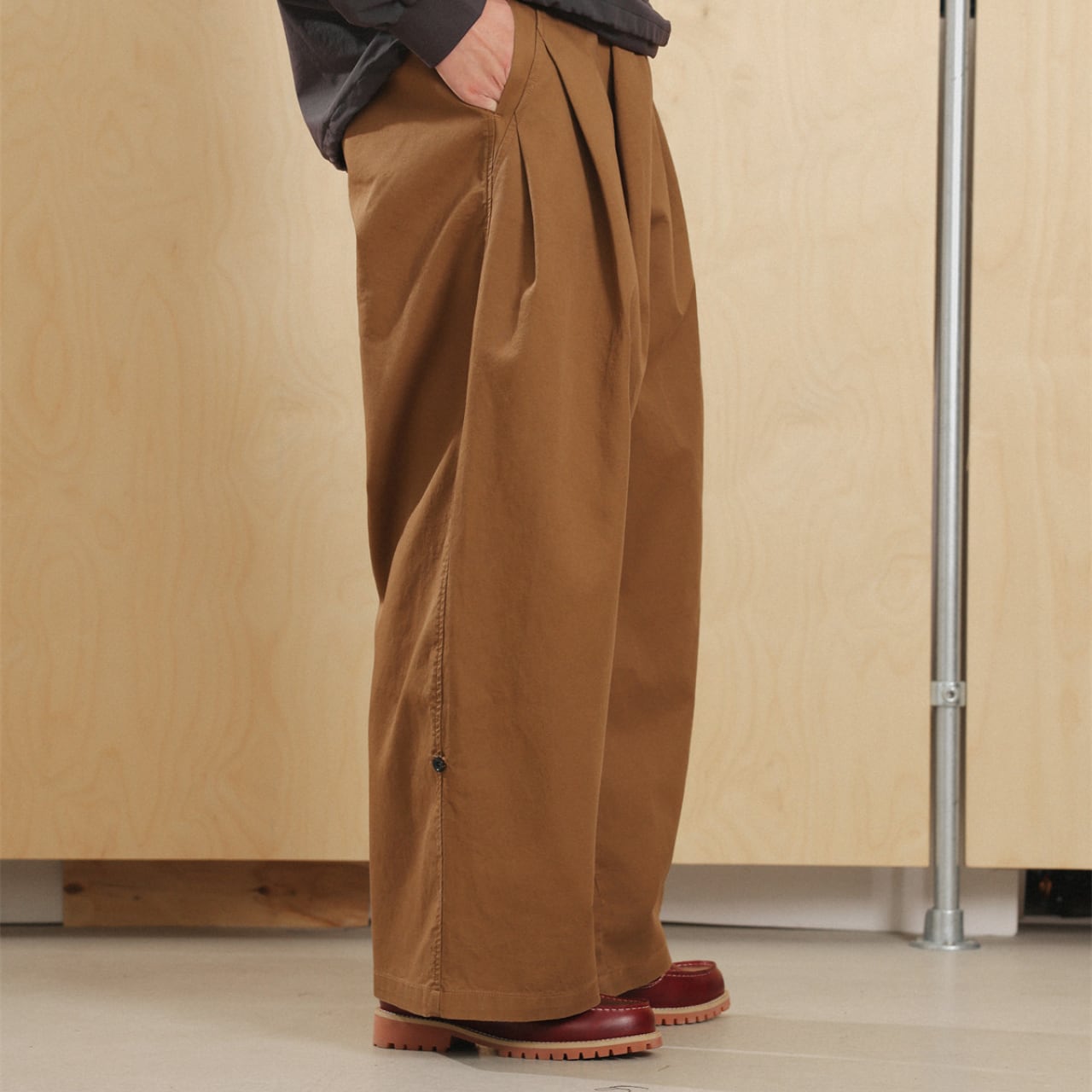 シャツやスウェットとの相性も抜群で、ミニマルにもレトロにも振れる万能パンツです。
