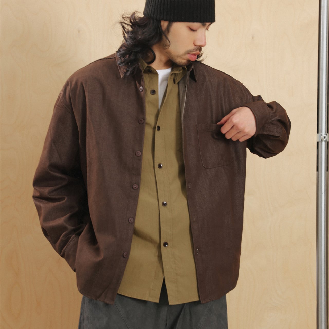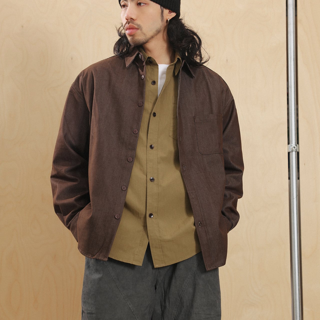 #cityboyootd #minimalstyle #シェルジャケット #春アウター #twillexpression #outerlayers #gate #earthtone #ゆるコーデ #テックミックス