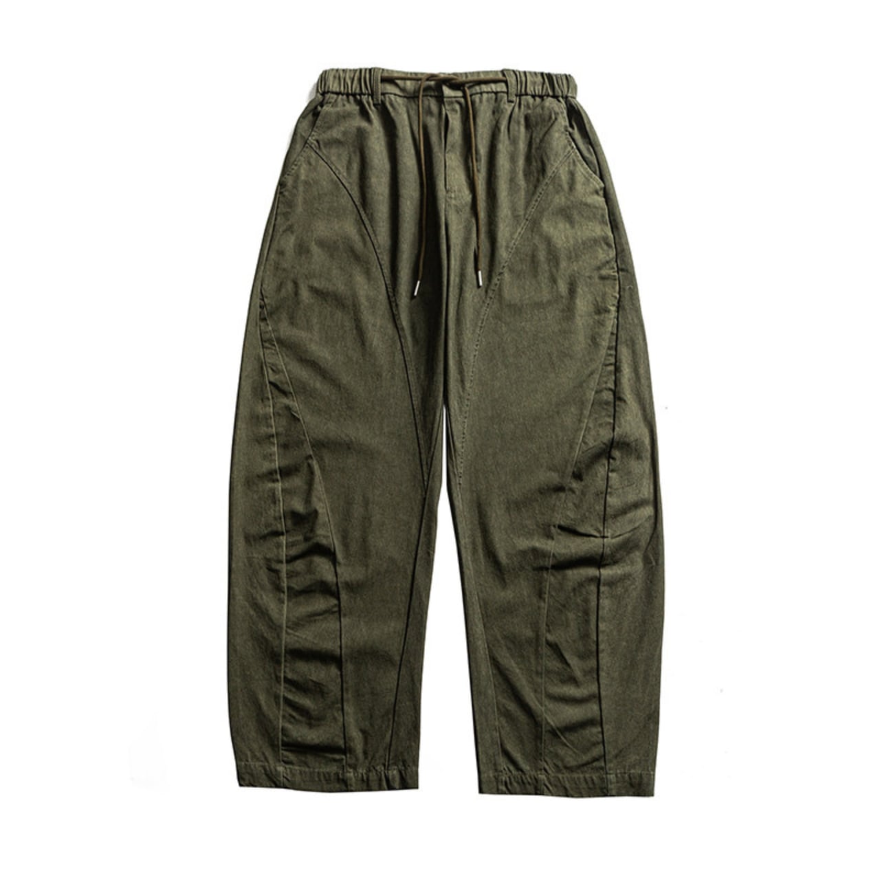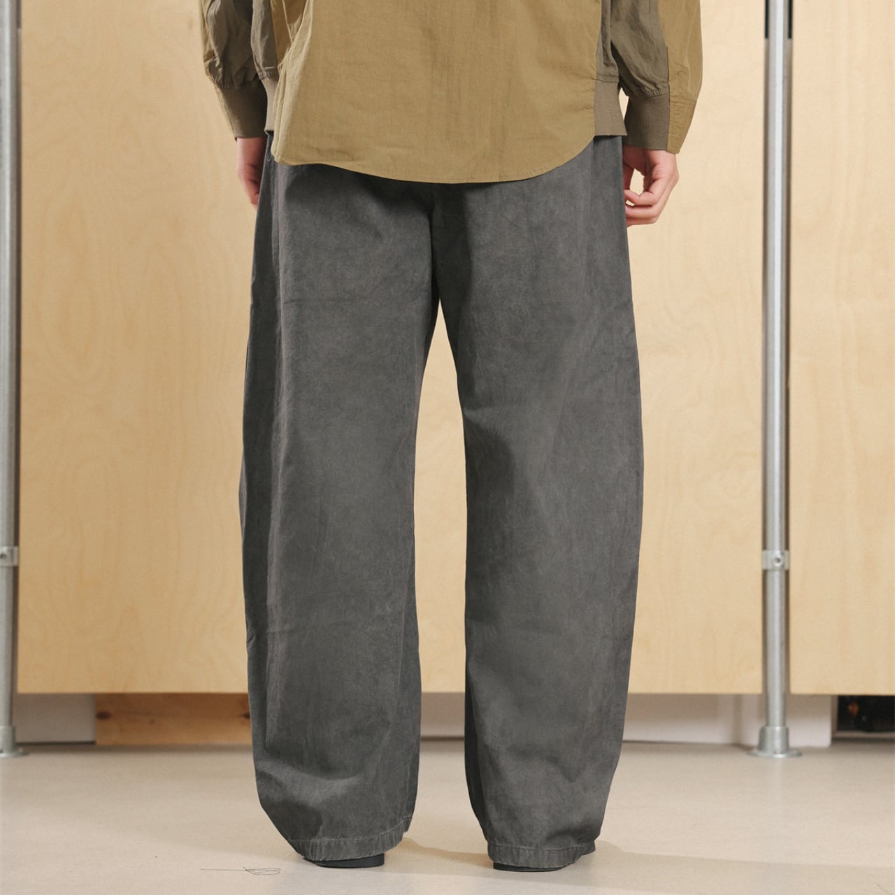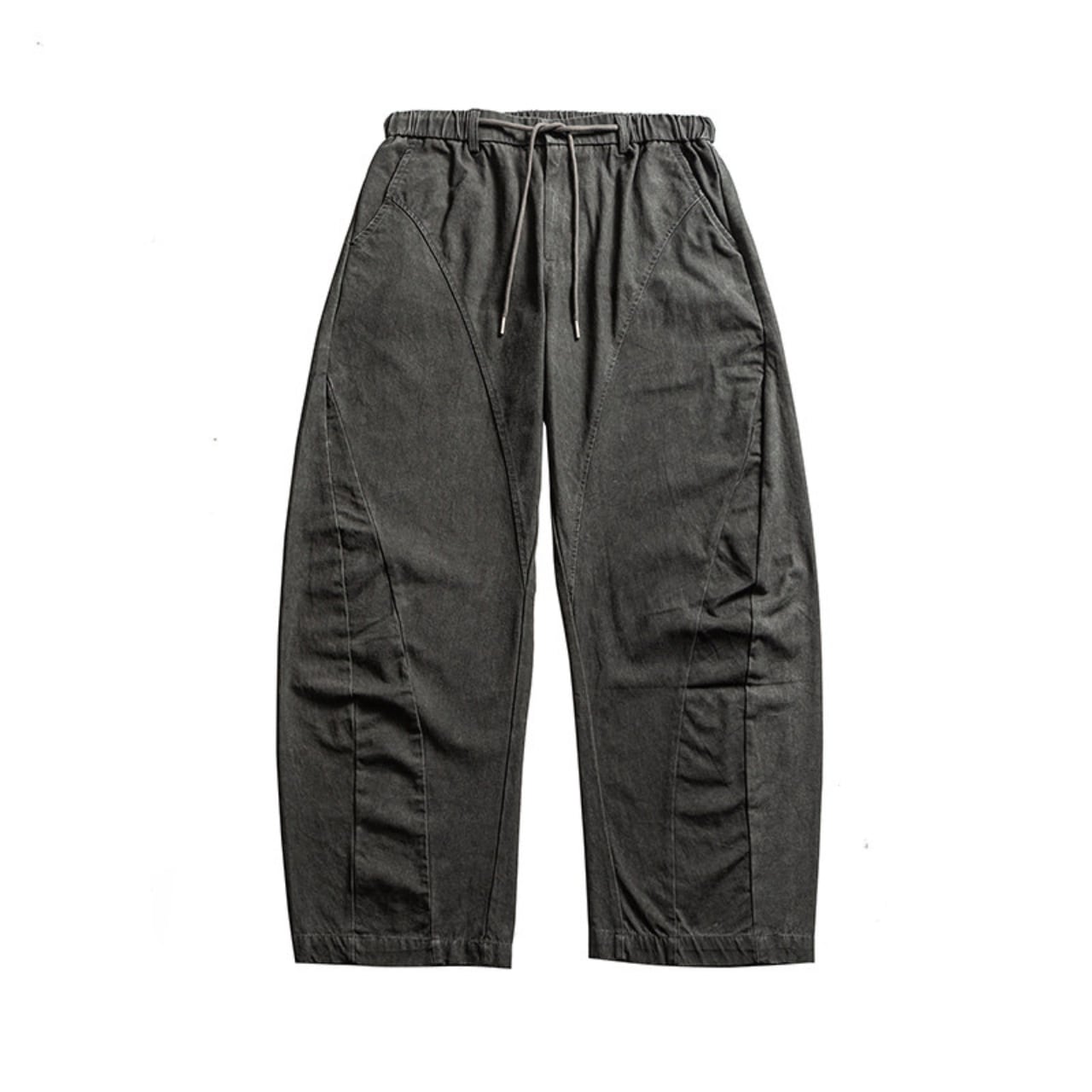 立体感のある曲線的なパネル切替が特徴的なワイドシルエットパンツ。タテ落ち感のあるピグメント染めコットン生地は、穿き込むほどに味が出る風合いに。程よい厚みと柔らかさがあり、オールシーズン活躍できる一本。