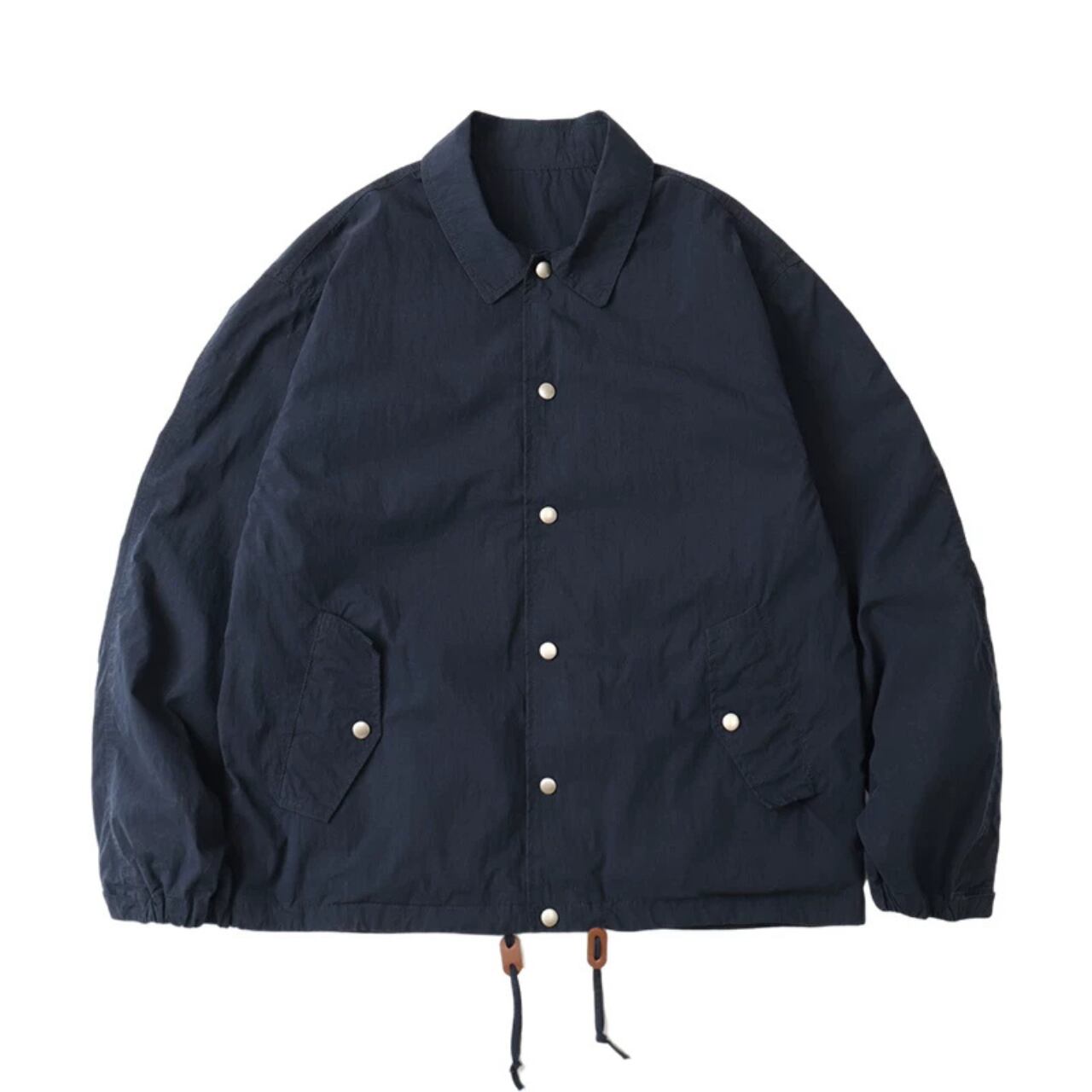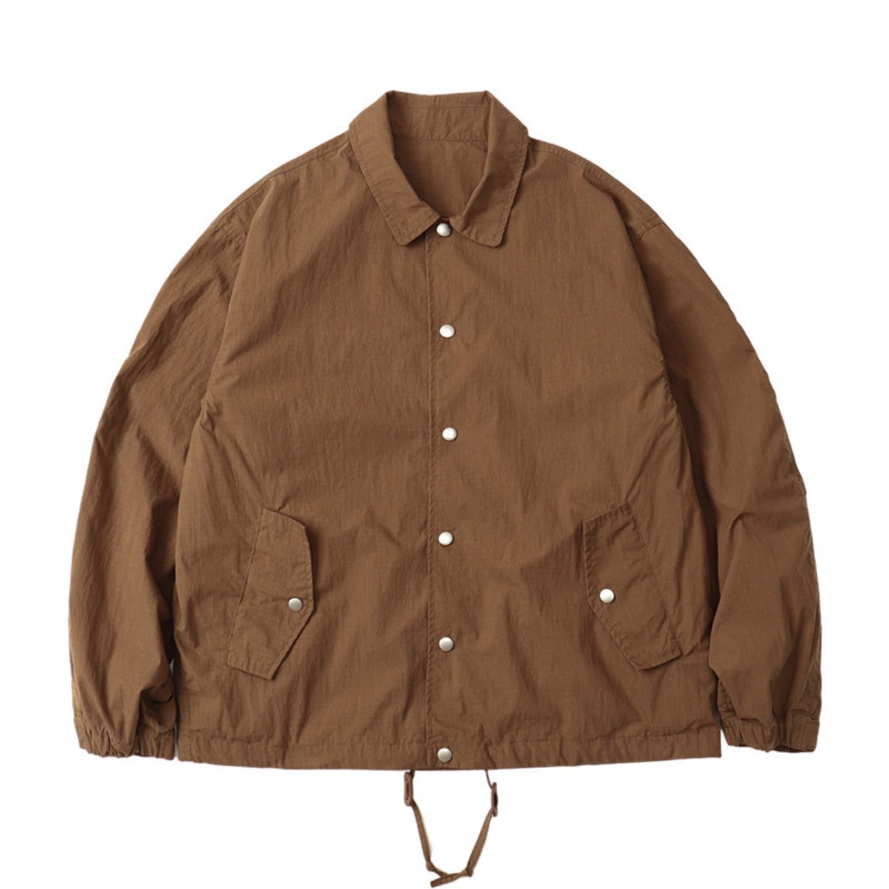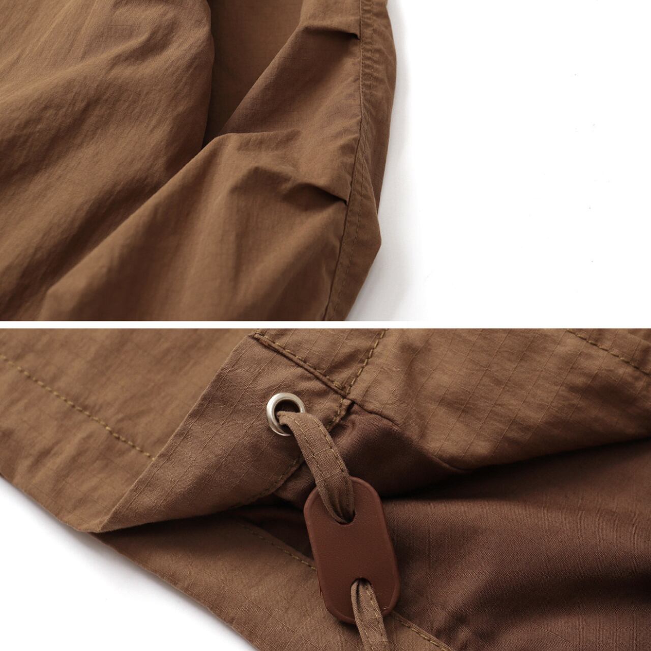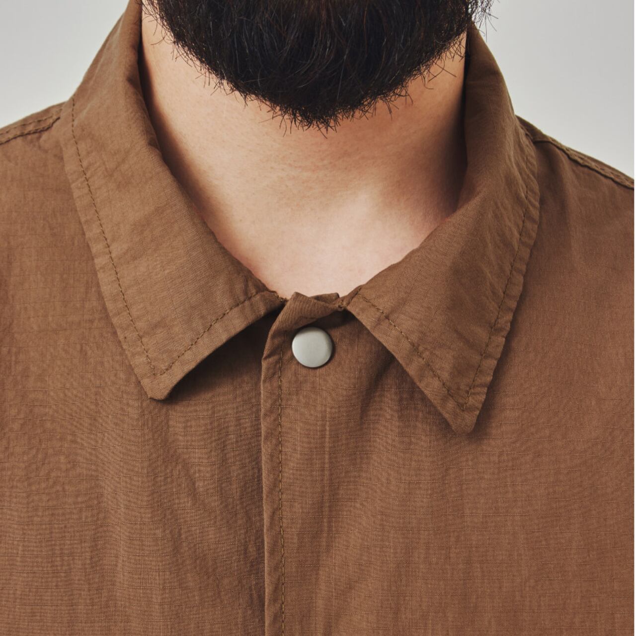 ハリのあるリップストップ生地を使用し、ワークとアウトドアの機能性を掛け合わせたシャツジャケット。胸元のステッチや大きめのポケット、裾のドローコード、スナップボタンなど、細部に実用的ディテールが満載。ワイドカーゴパンツとのセットアップ風コーデもおすすめ。ラフに羽織れて気取らない、街とフィールドをつなぐ1枚です。