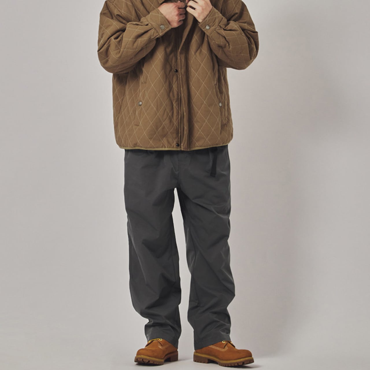 ウエストはゴム+ドローコード仕様でリラックスした穿き心地ながら、落ち感のある生地により野暮ったさを感じさせません。
