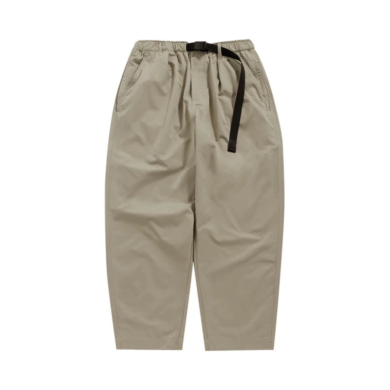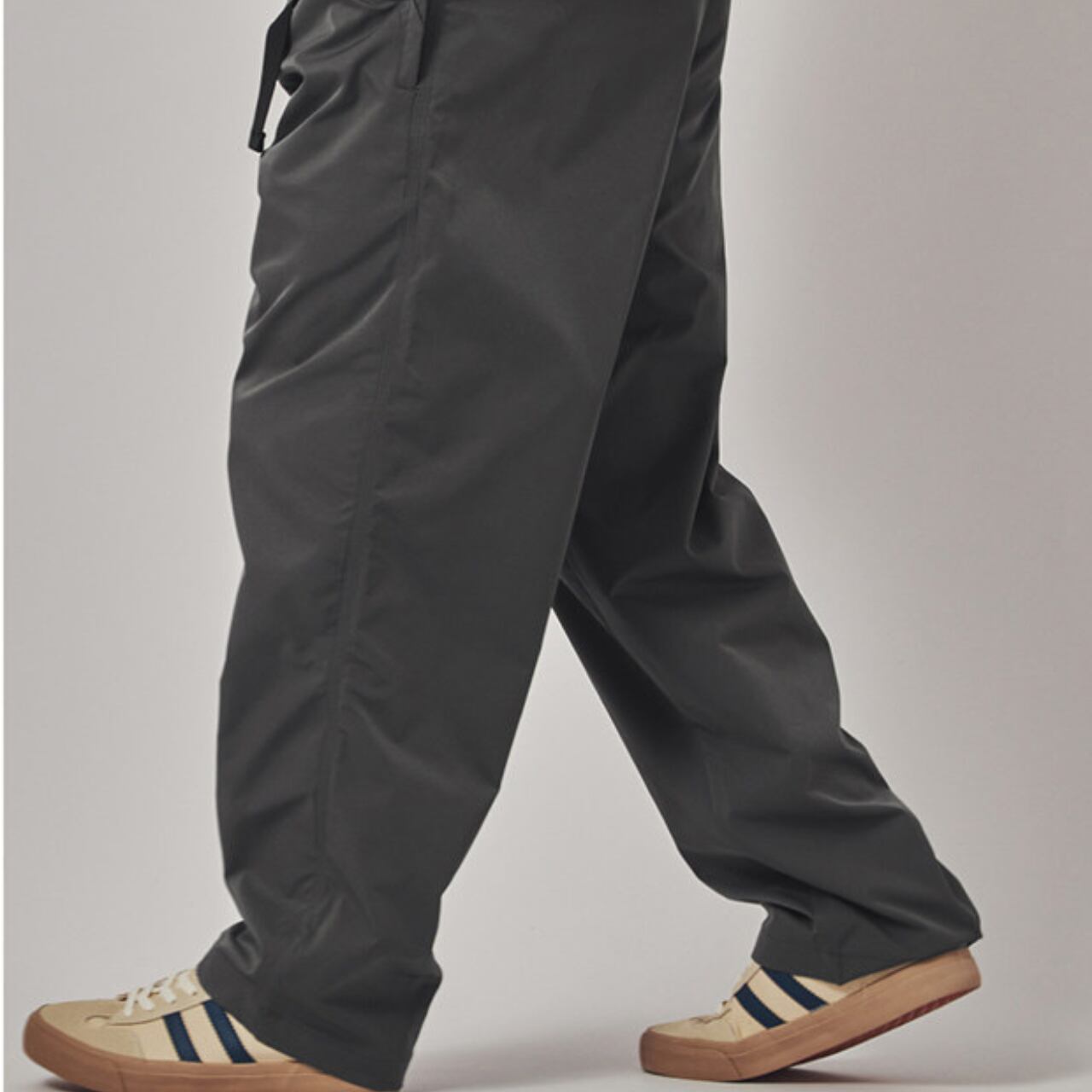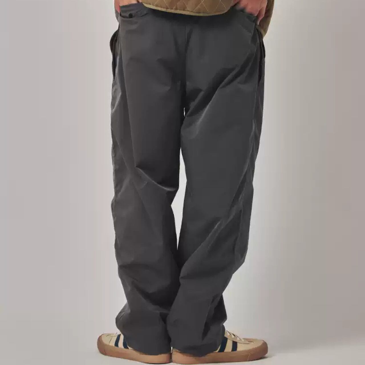 程よくボリュームのあるワイドシルエットに、軽やかなテック素材を掛け合わせたイージーパンツ。