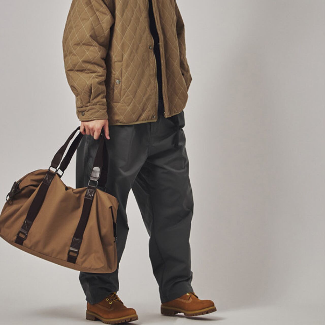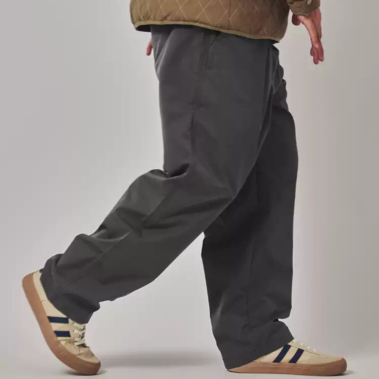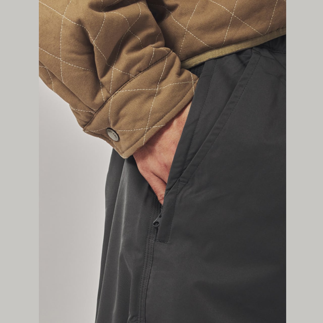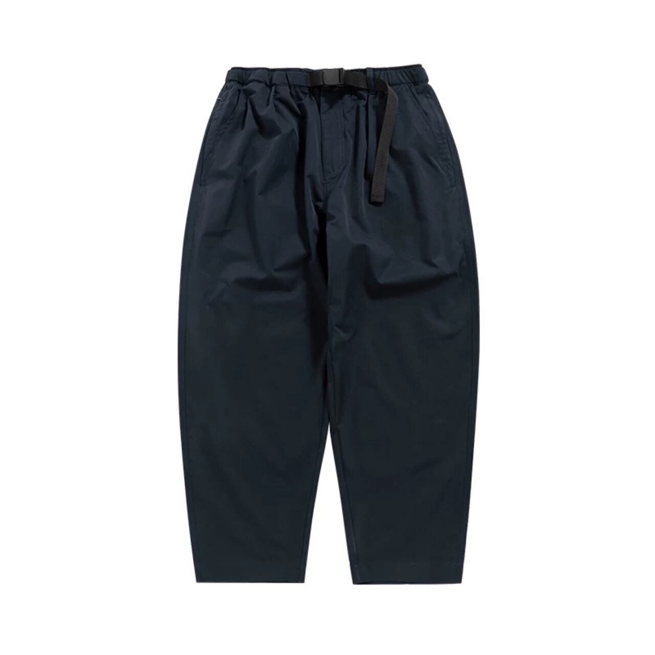 程よくボリュームのあるワイドシルエットに、軽やかなテック素材を掛け合わせたイージーパンツ。