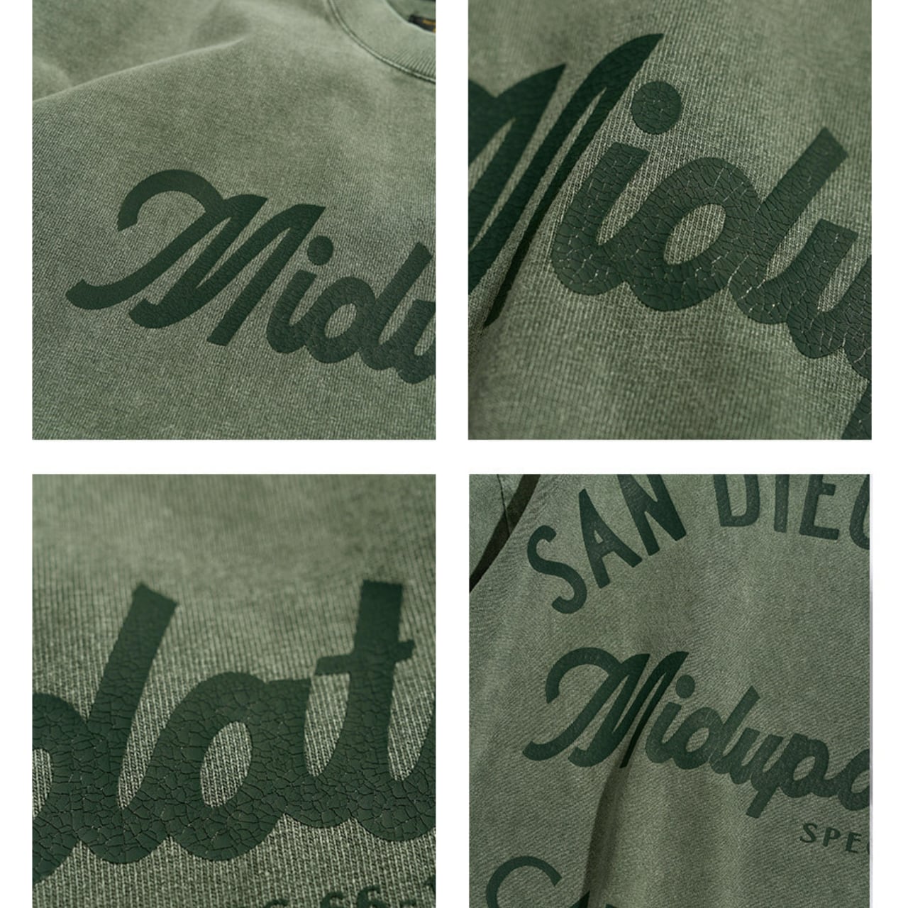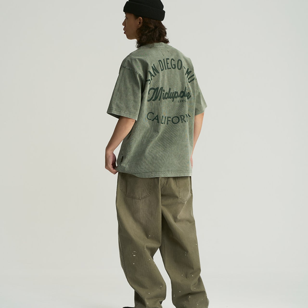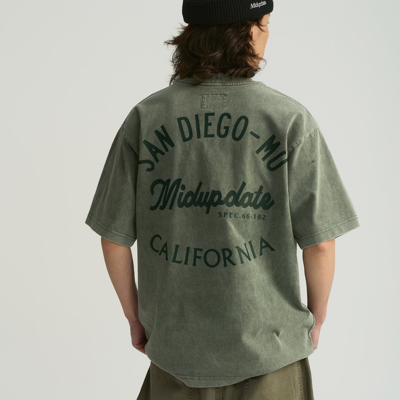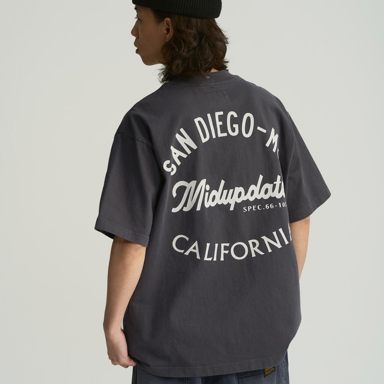 フロントは控えめなロゴ、バックには「SAN DIEGO – CALIFORNIA」のアーチロゴを大胆に配置し、90年代アメリカンストリートのムードを再現。