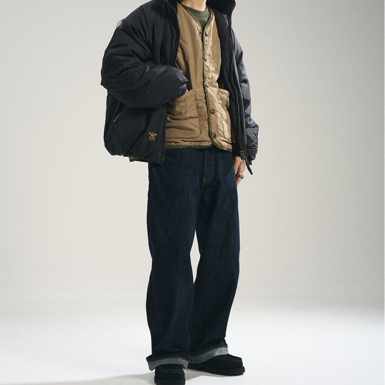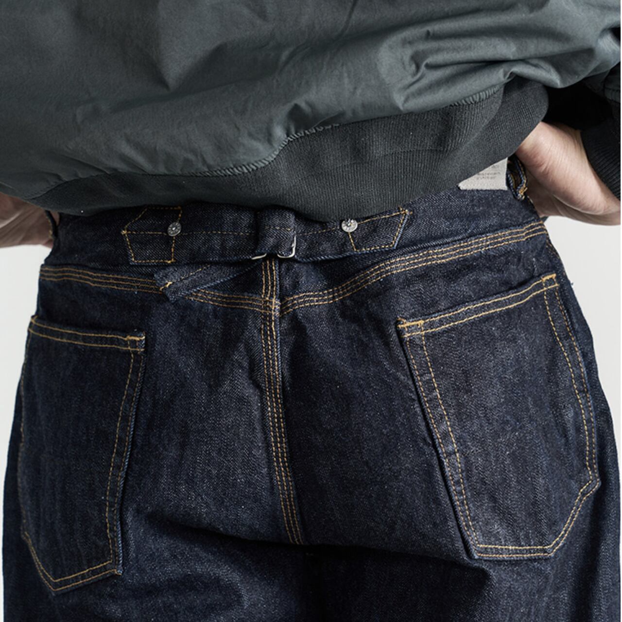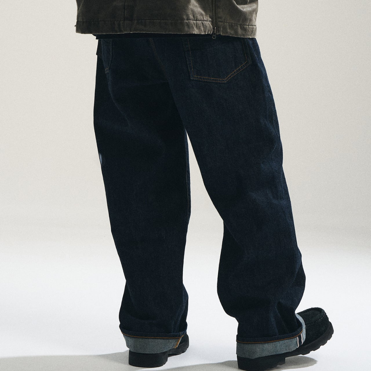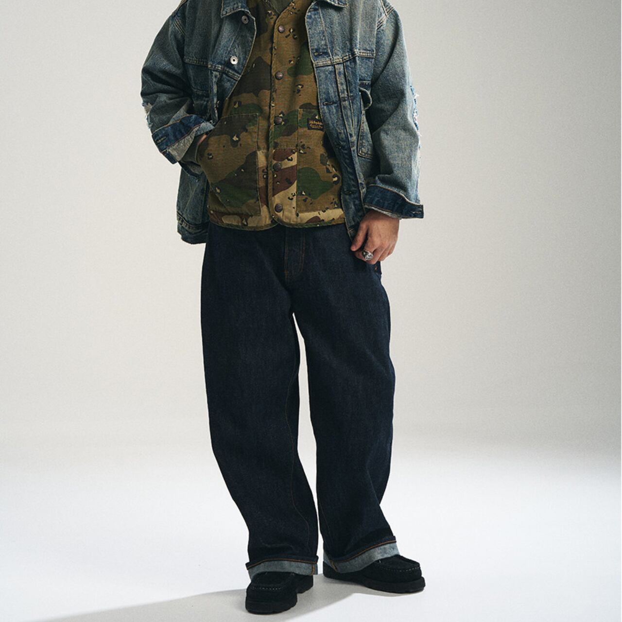 14.2ozの本格セルヴィッジデニムを使用した、クラシックな佇まいのワイドストレートジーンズ。