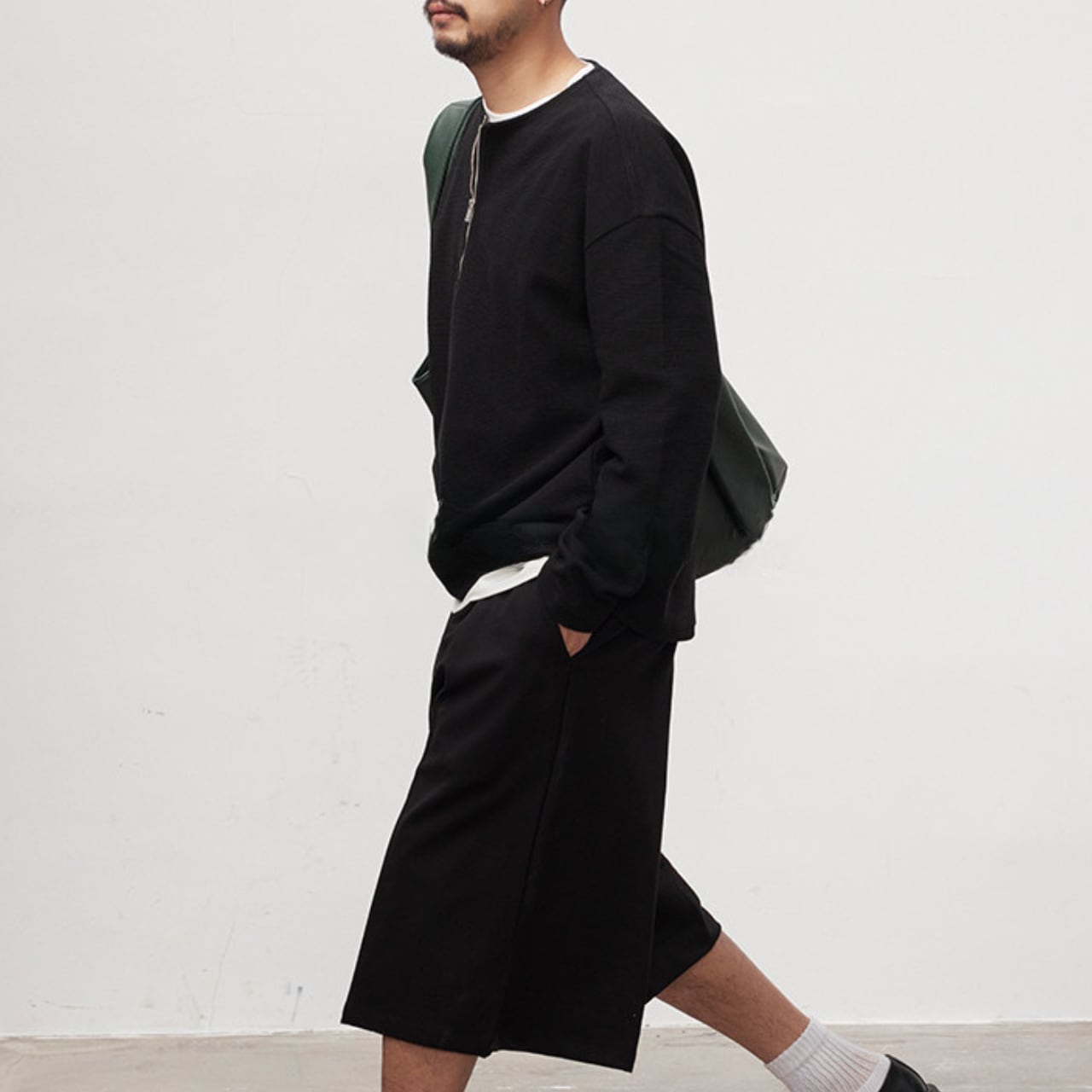 程よくゆとりのあるシルエットに、フロントのハーフジップがさりげないアクセント。