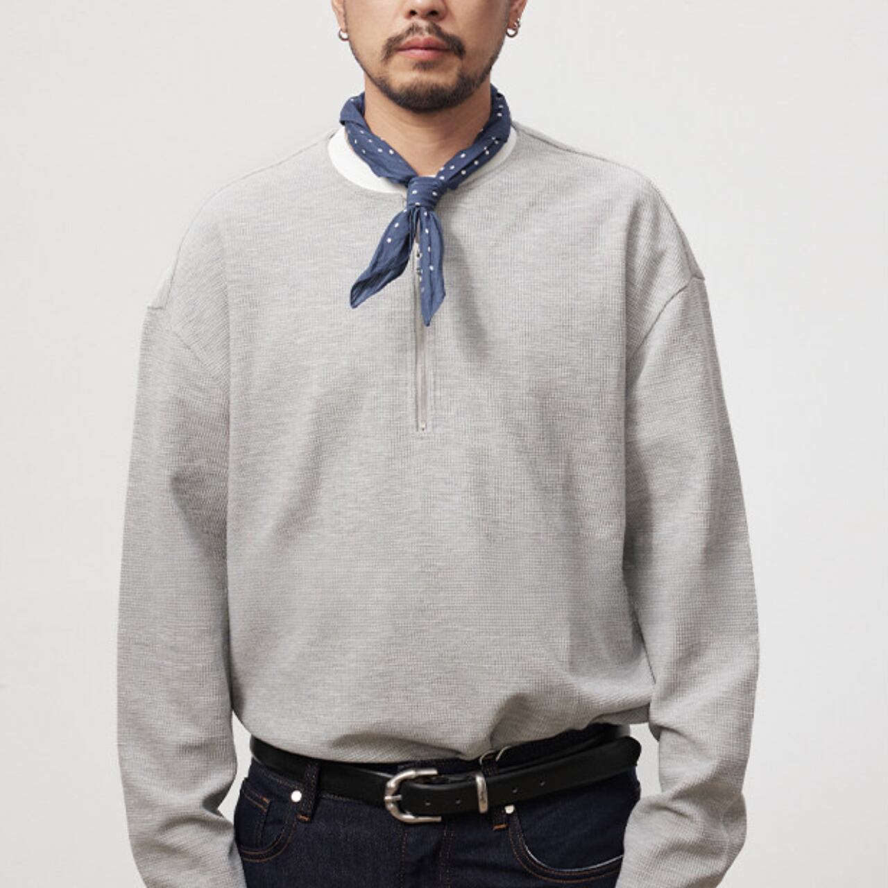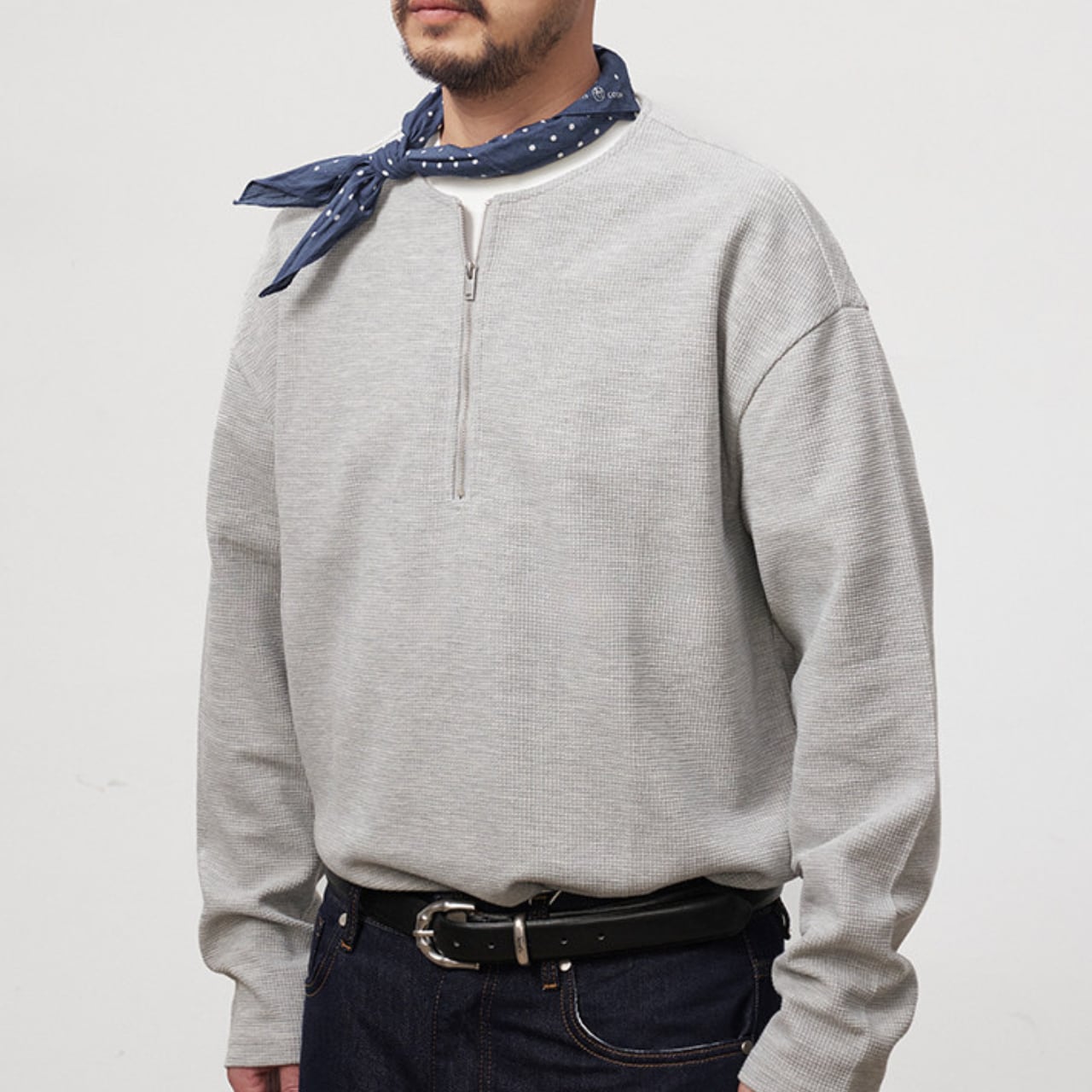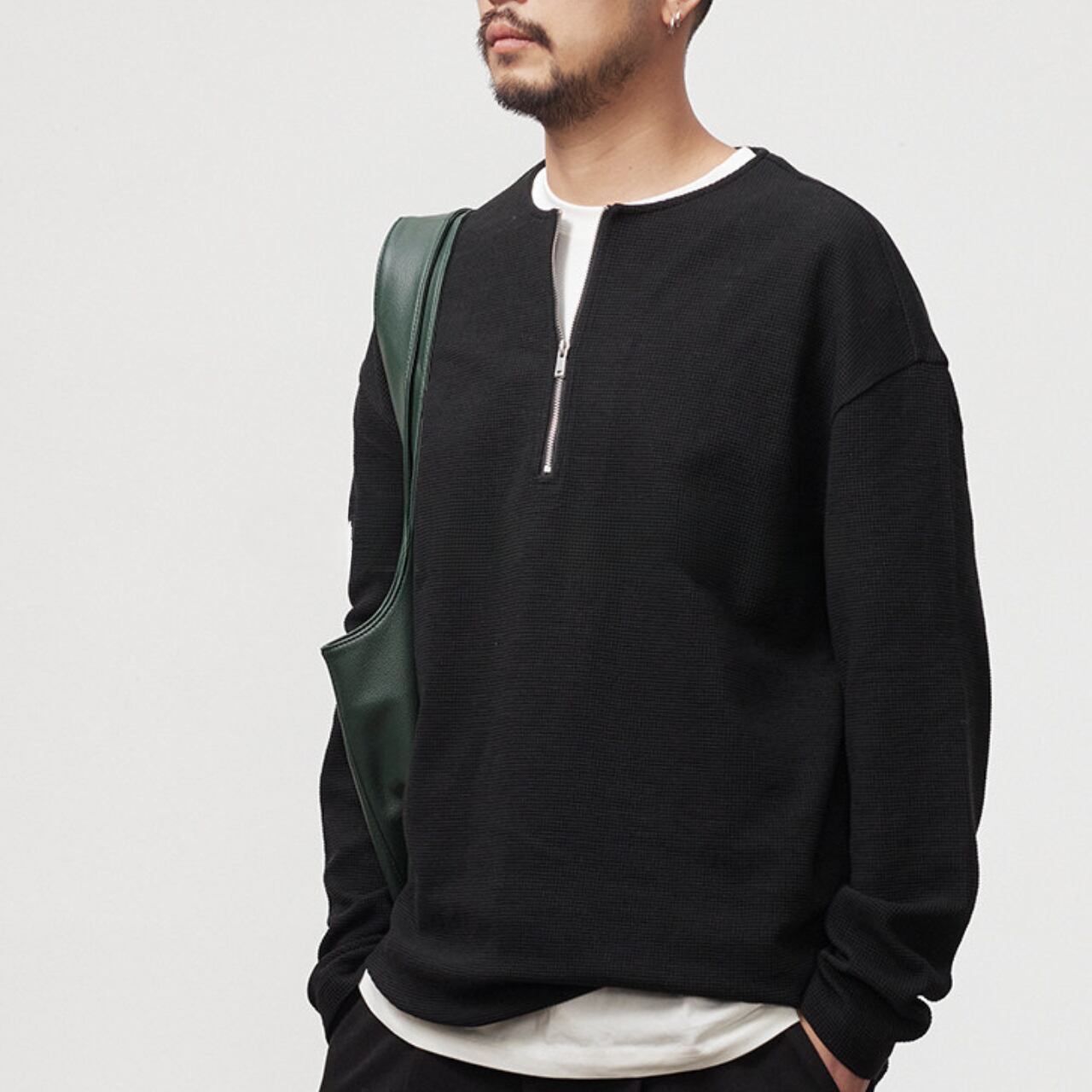 ヘンリーハーフジップ・ワッフルロングTEE A2107