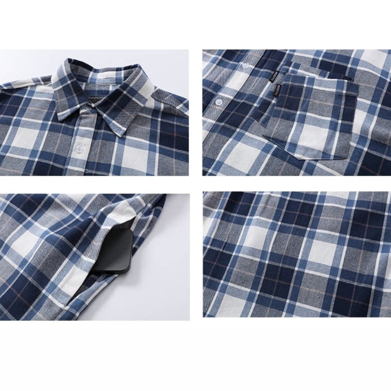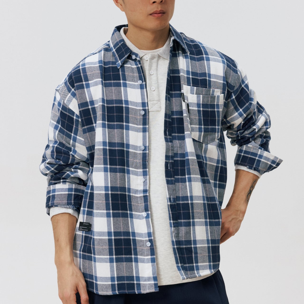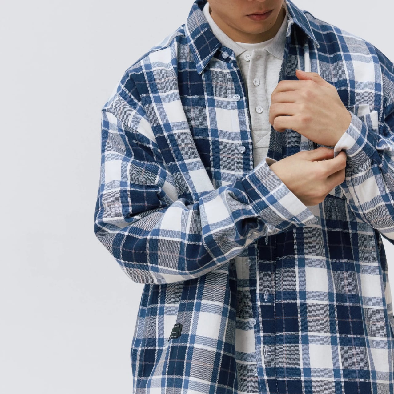 やわらかなコットン100%素材を使用した、ゆったりシルエットのチェックシャツ。