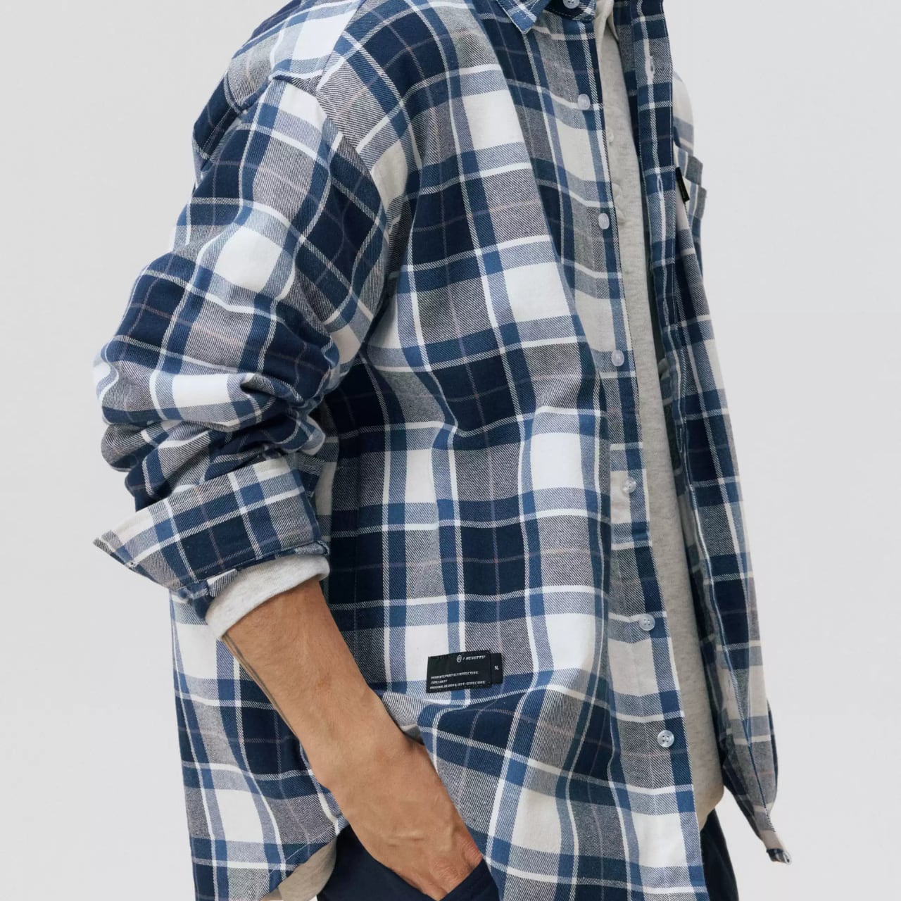 スモークブルーグリッド・エアリーオーバーシャツ A2108
